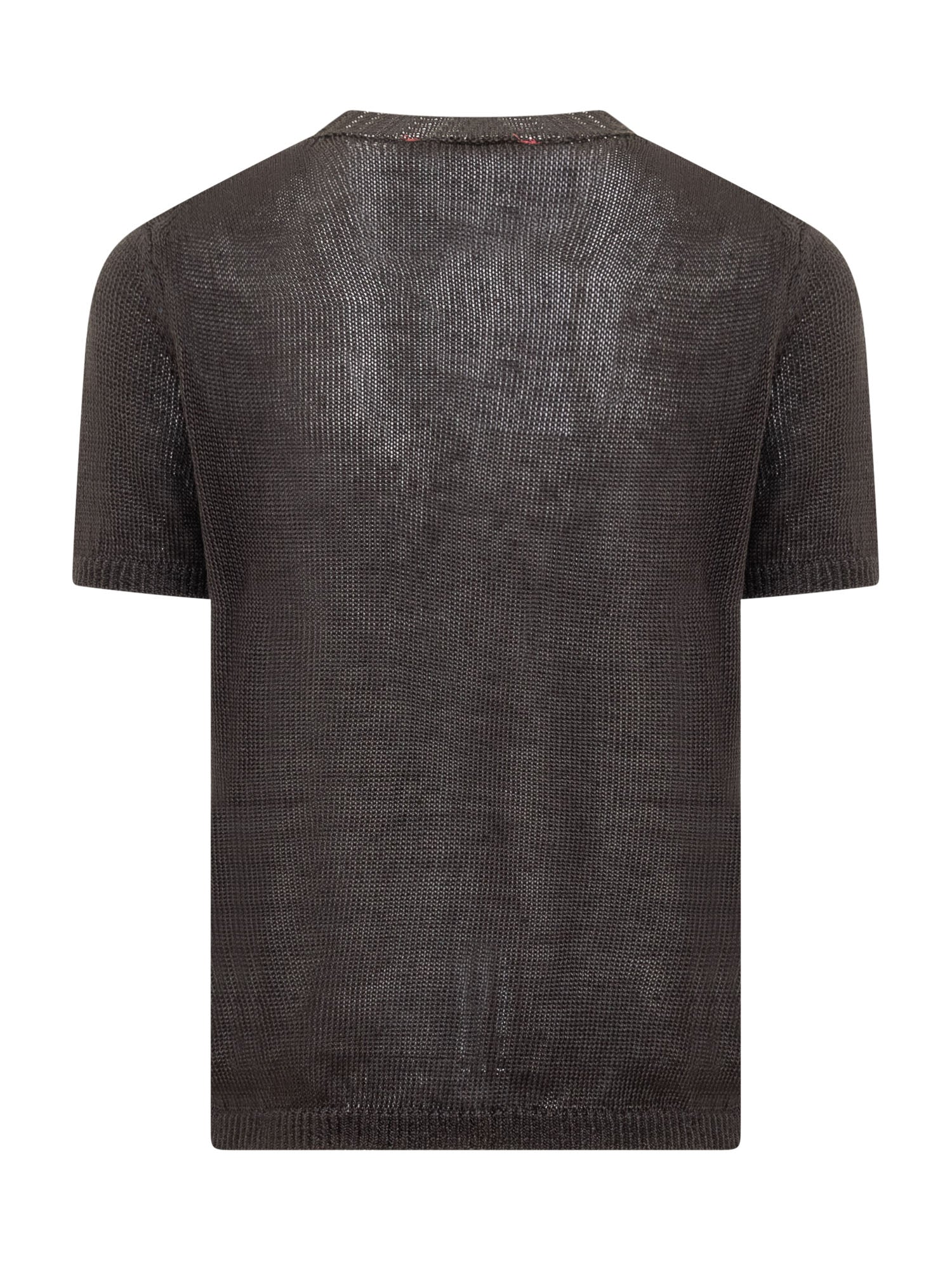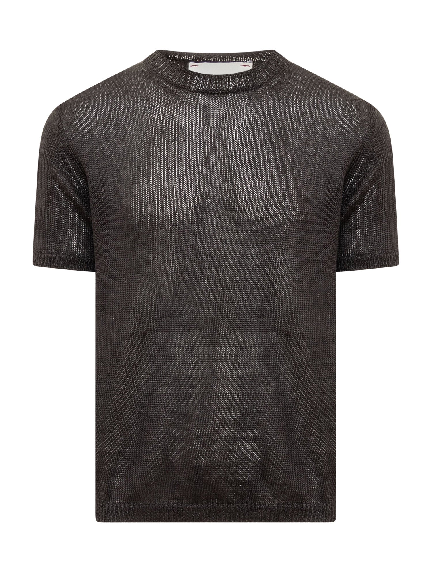 Knit t-shirt. Ribbed collar. Crew neck.
