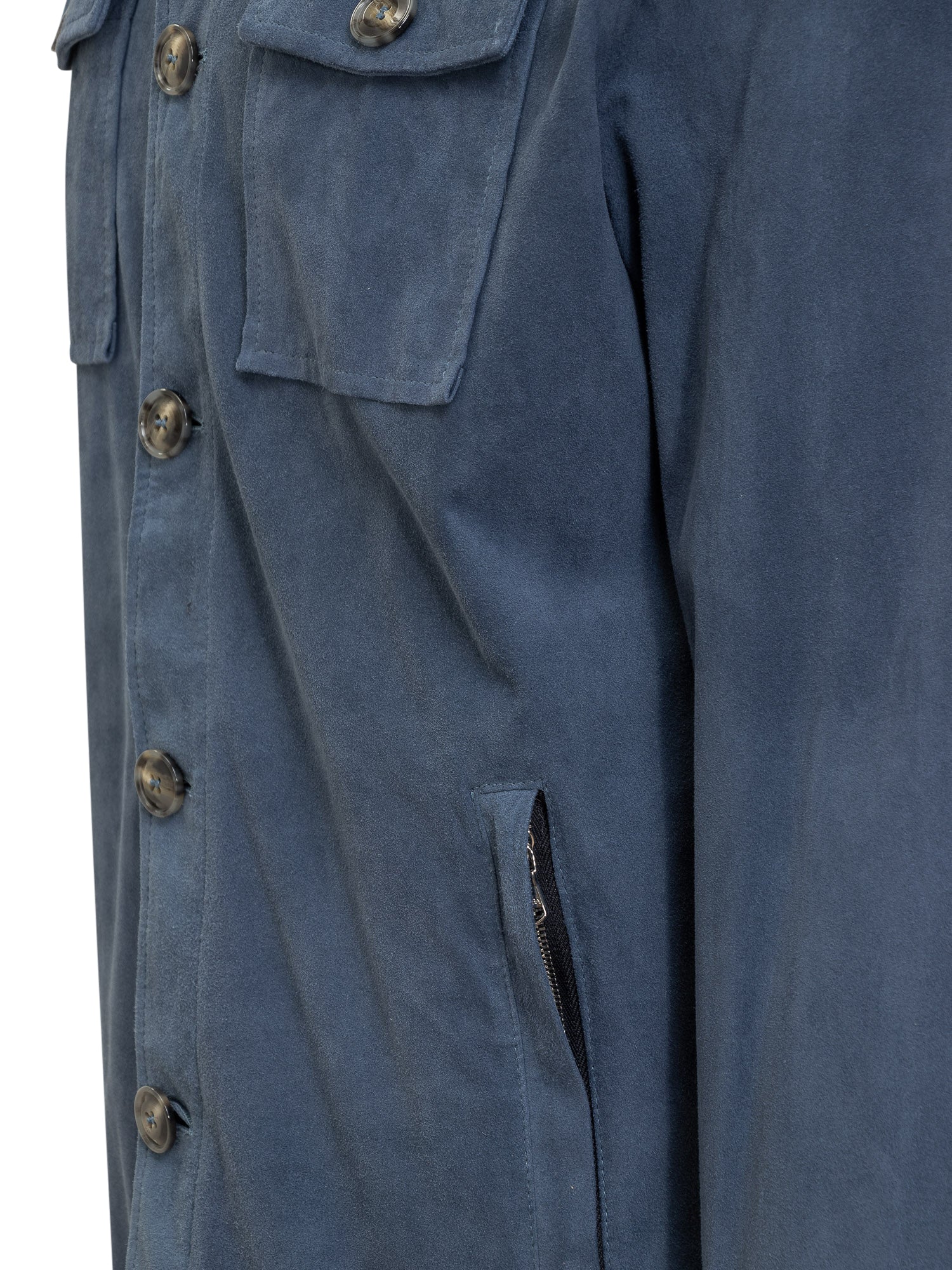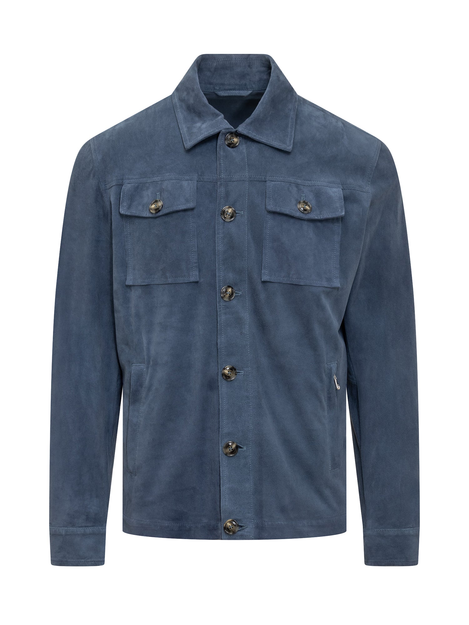 Leather shirt. Classic collar. Button closure. Cuffs with buttons. Four pockets.