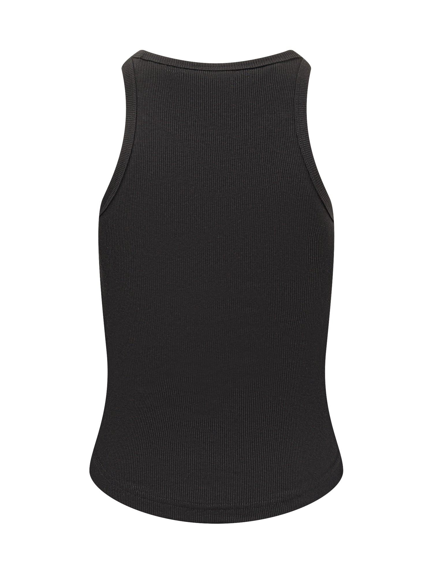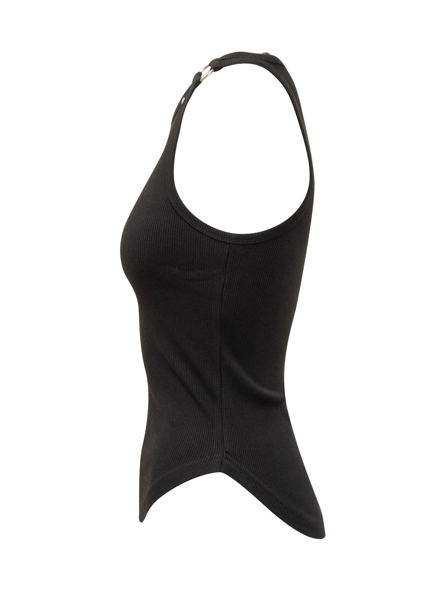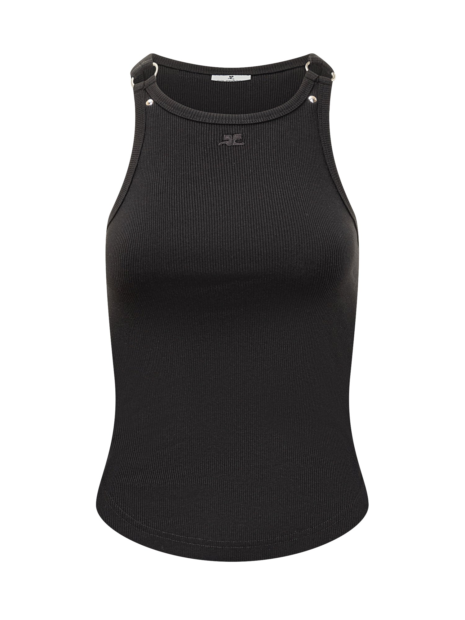 Courrèges Buckle 90's ribbed cotton top in black with signature metal buckles on the shoulders.