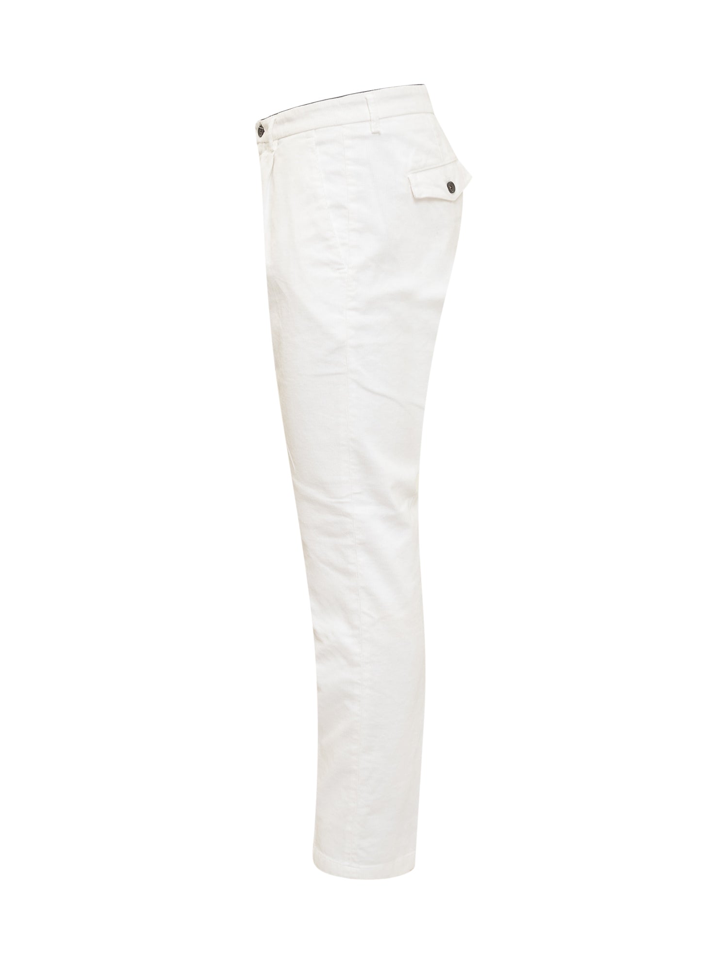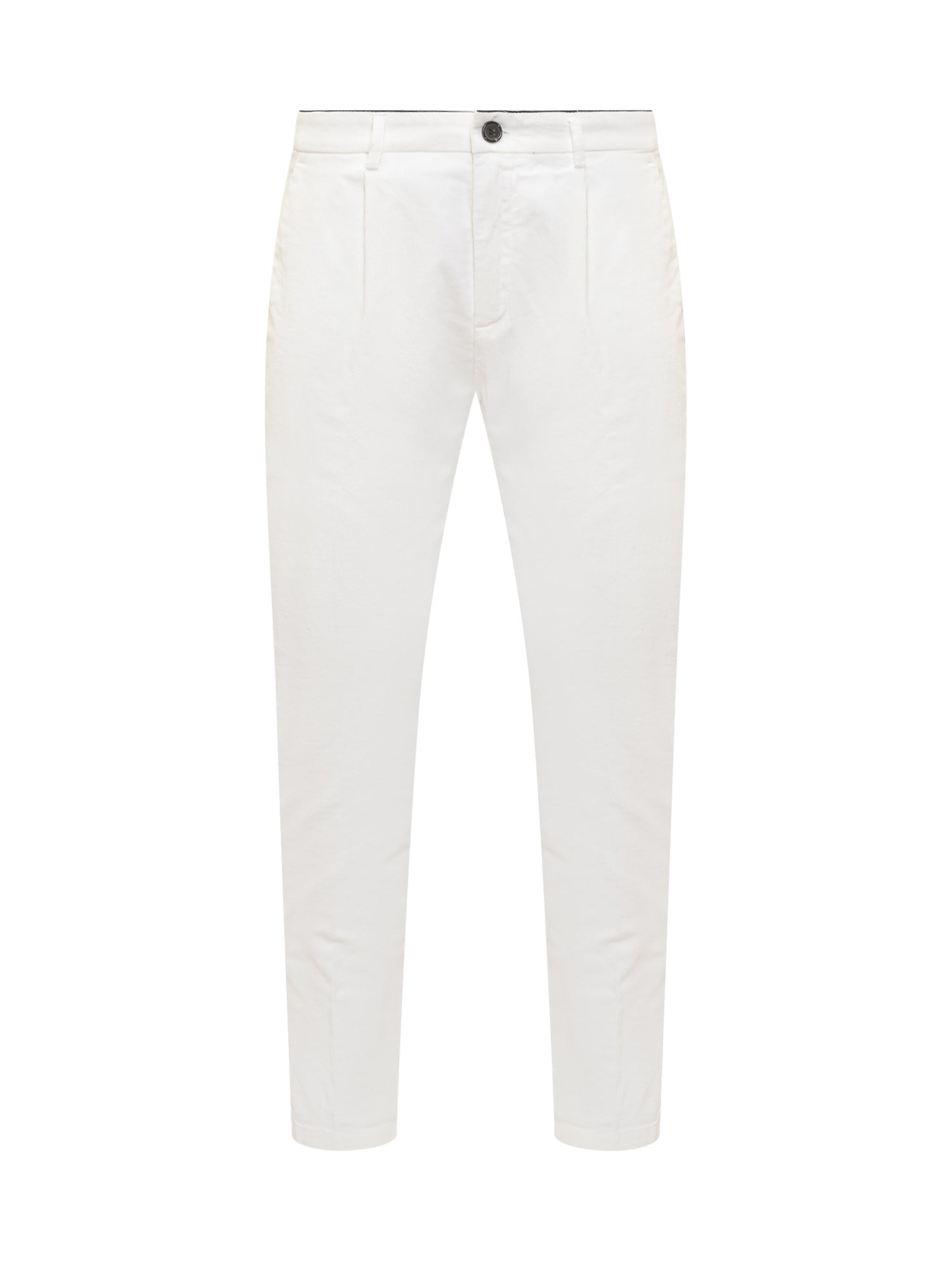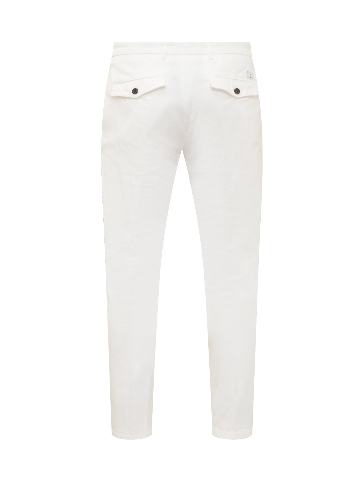 Long chino pants. Button and zipper closure. Pence on front. Belt loops. Four pockets. Logo patch on the back.