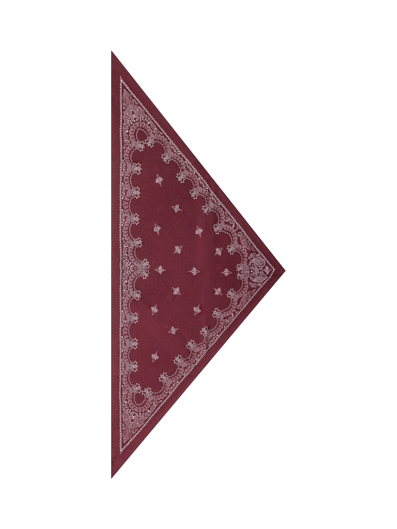 Destin triangular cotton bandana in burgundy with classic white paisley pattern. Lightweight and versatile, ideal to wear around the neck, as a headband or hair accessory for a chic casual touch.