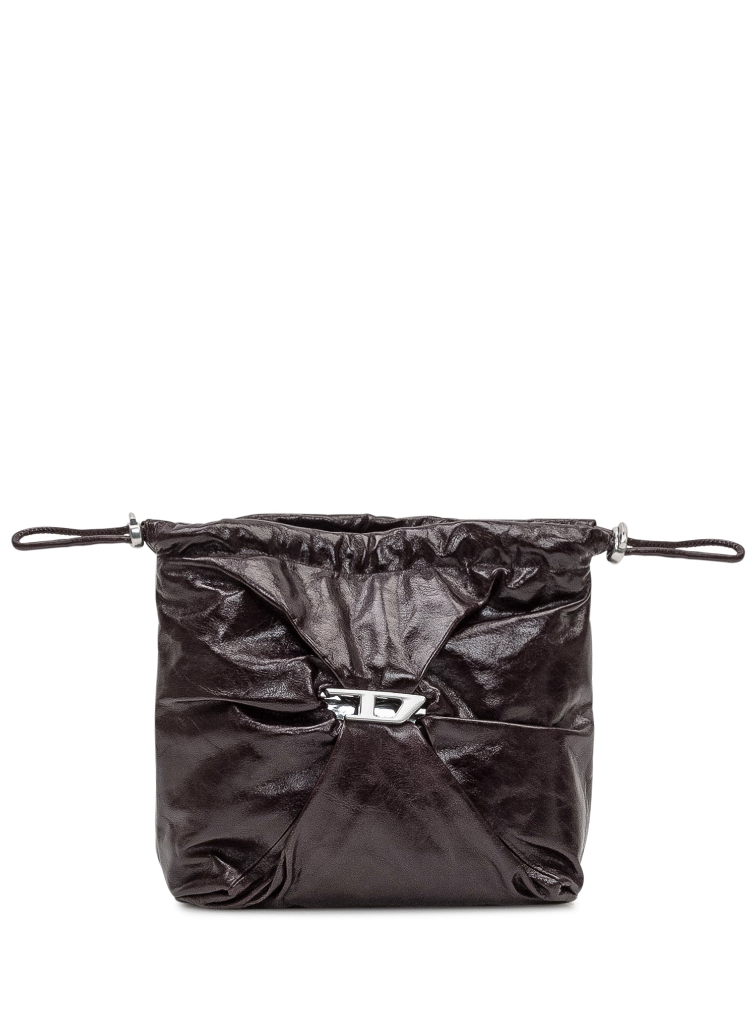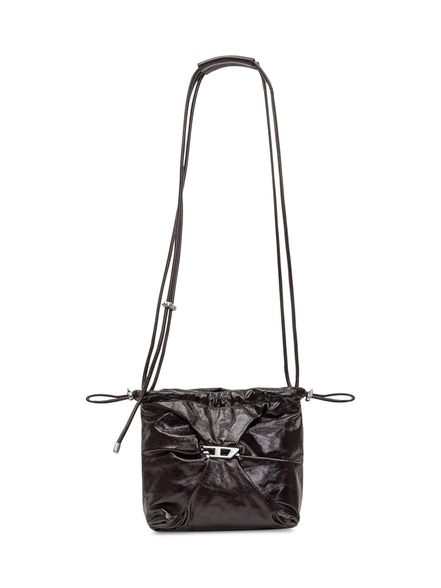 Diesel women's bag in crinkled-effect leather with metal logo. Adjustable and removable shoulder strap, zip closure. Interior features a zip pocket and flat pocket.