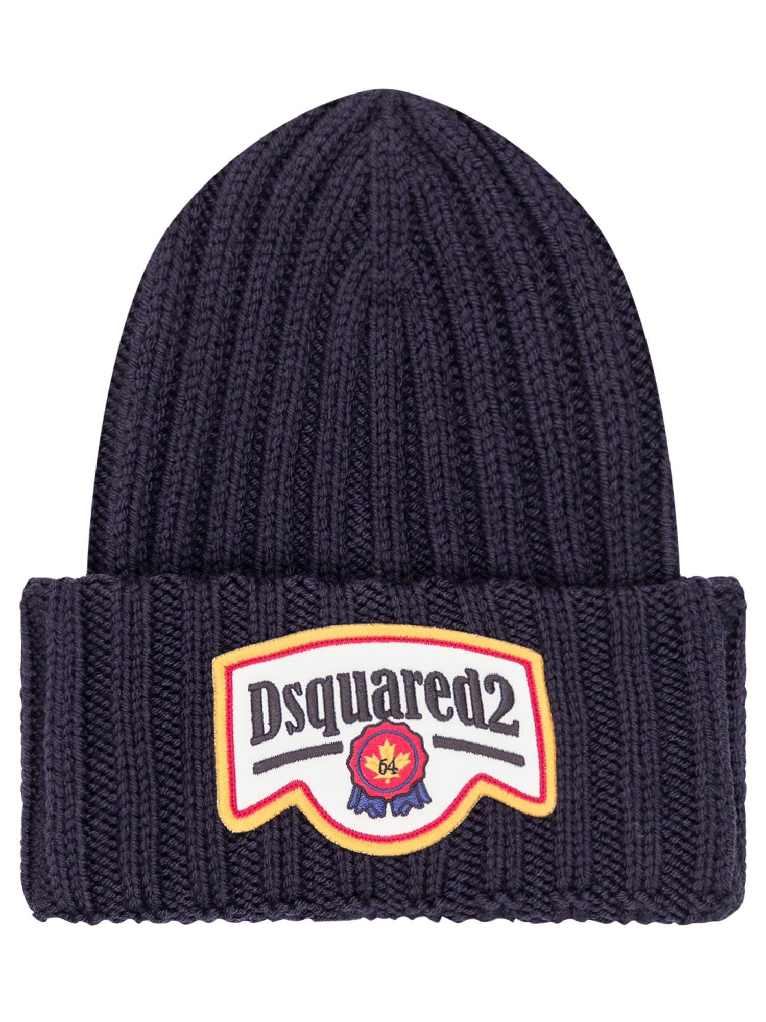 Blue wool cap. Woven design. Logo on the front.
