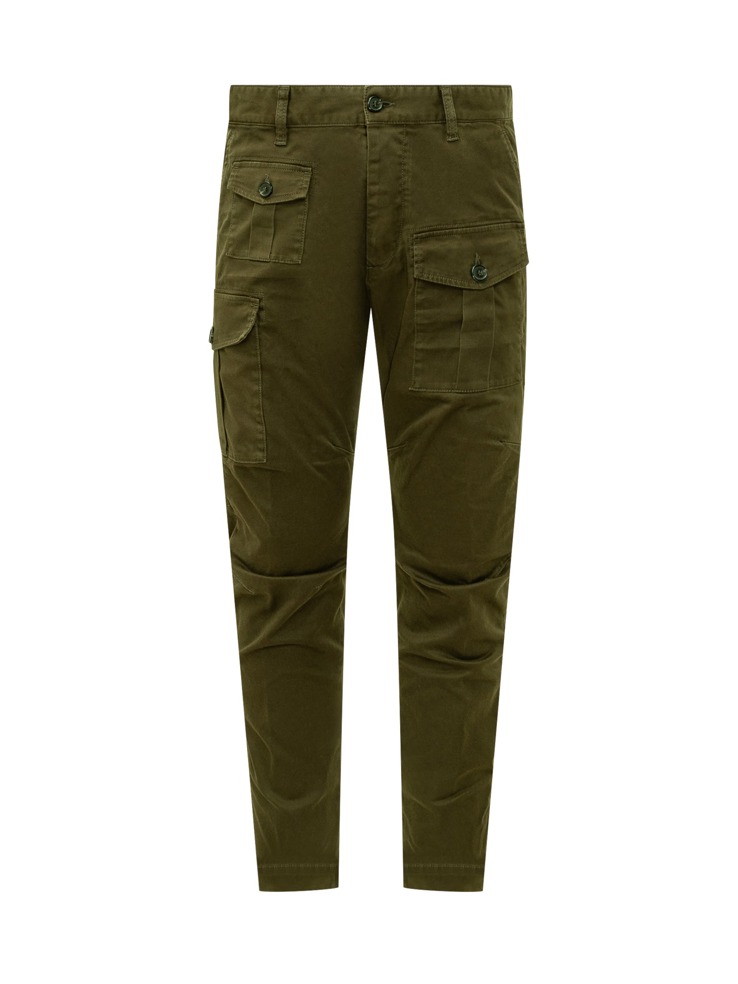 Dsquared2 cargo pants in military green cotton. Designed with multiple front and side pockets, button and zip closure, belt loops.