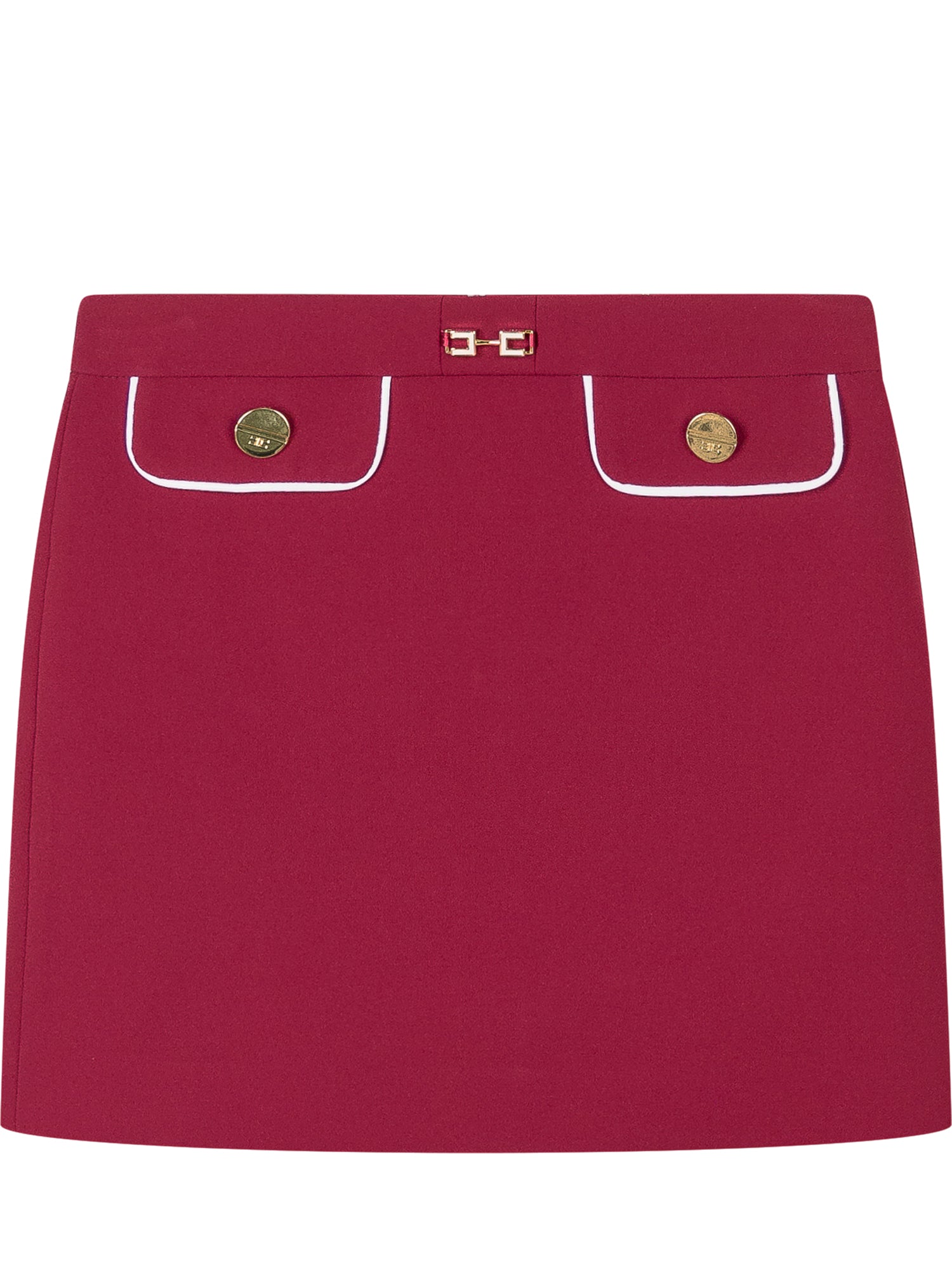 Elisabetta Franchi Kids skirt in vibrant red, featuring faux pockets with white piping and gold buttons.