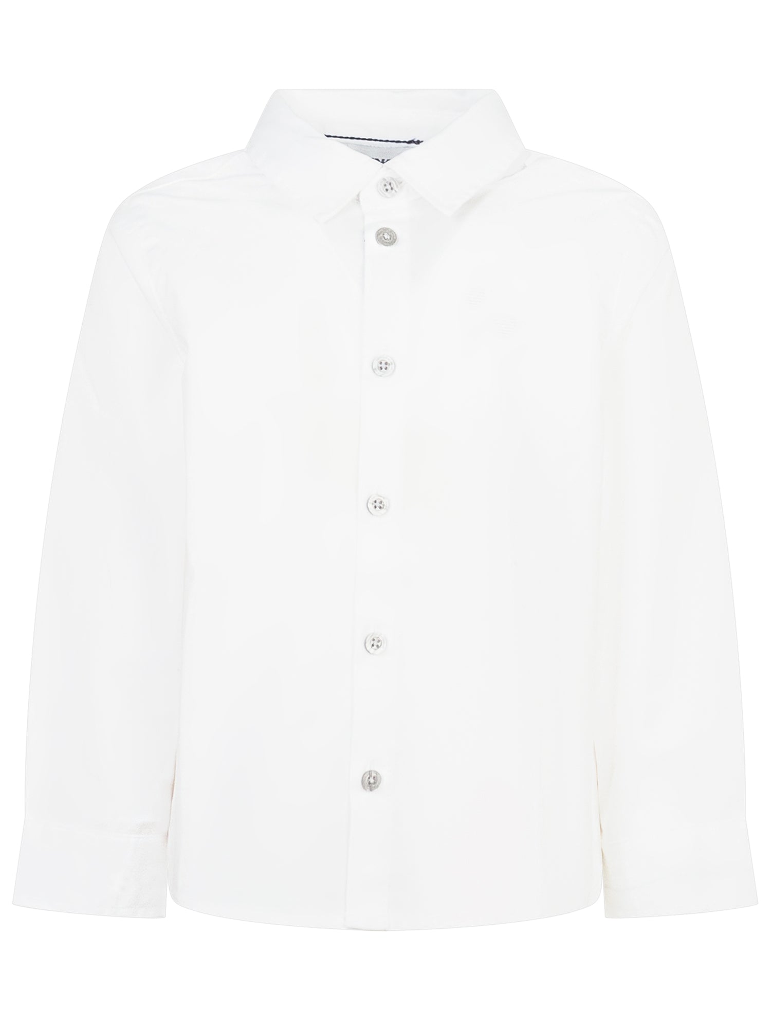 Emporio Armani boys white cotton shirt with classic collar and front buttons.