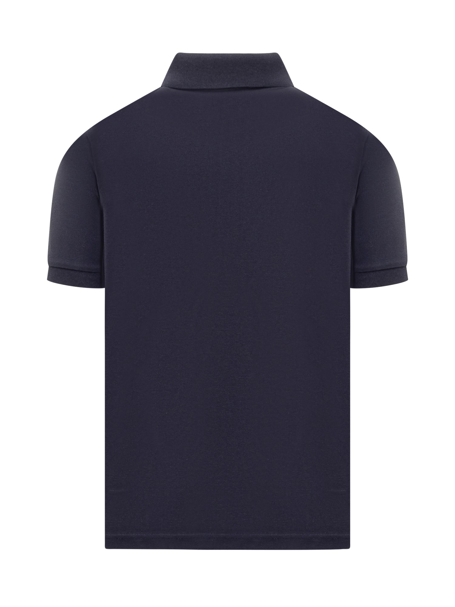 Short-sleeved cotton pique polo shirt. Classic collar. Button closure. Ribbed hems. Embroidered logo on front.