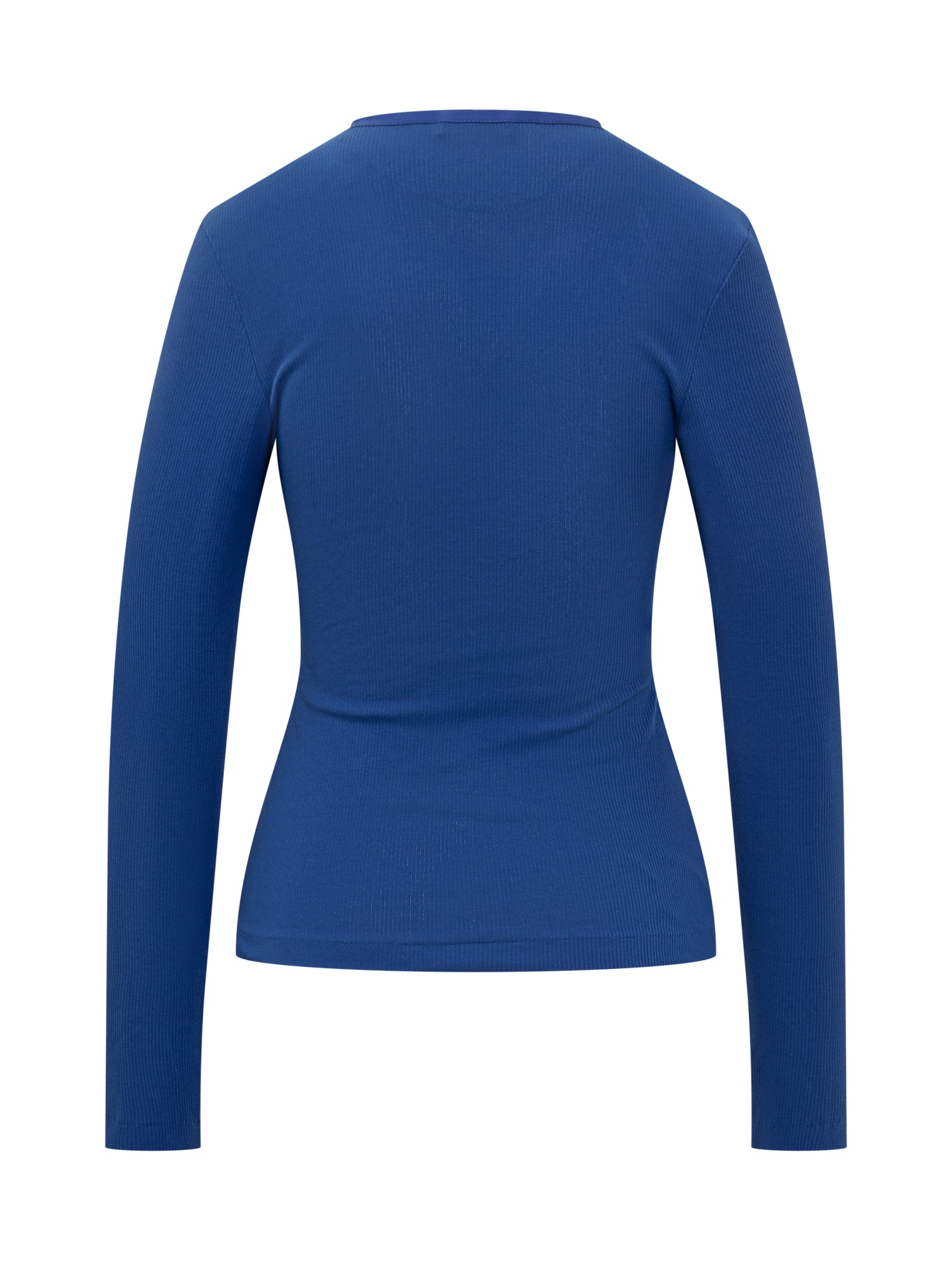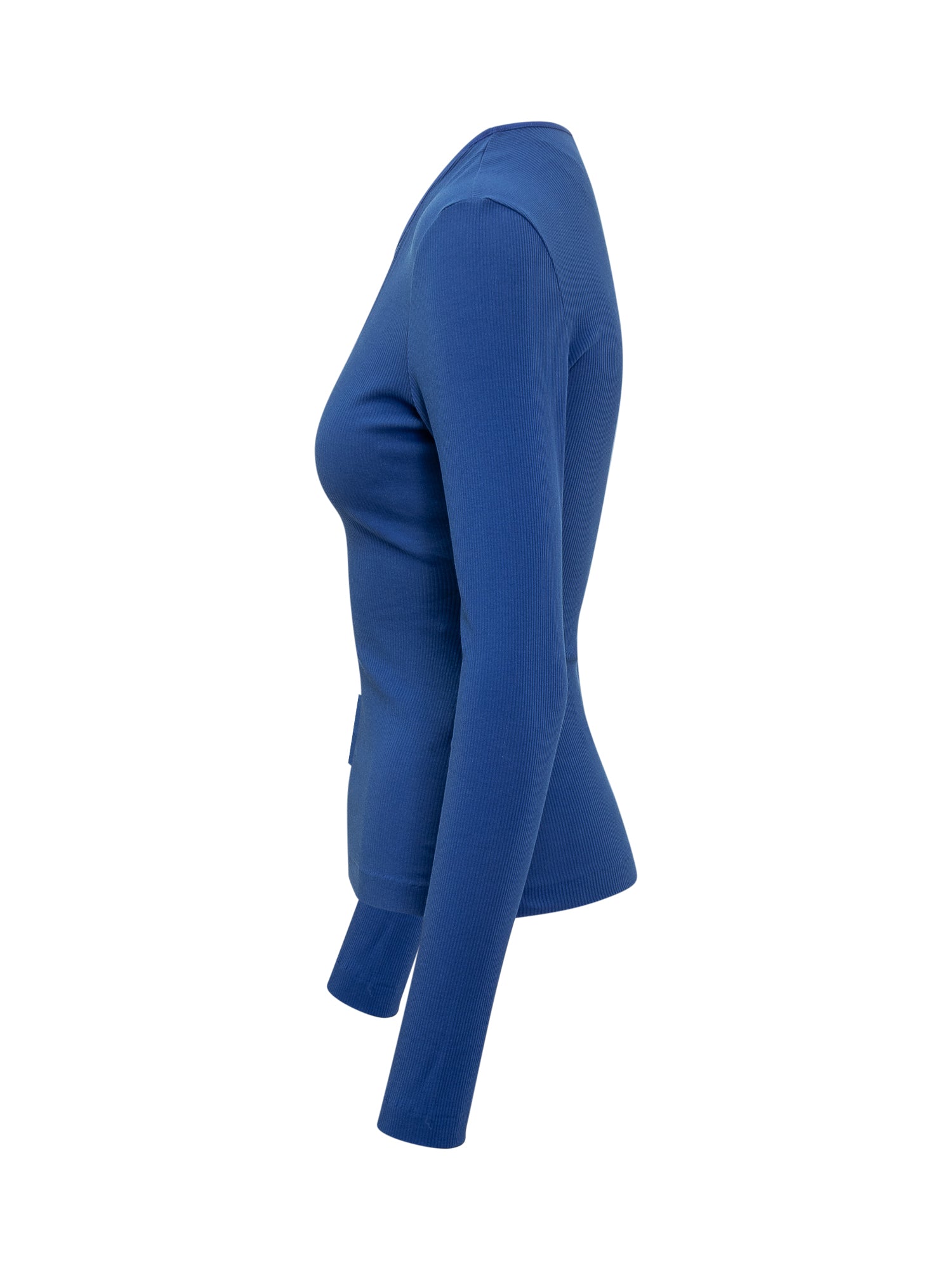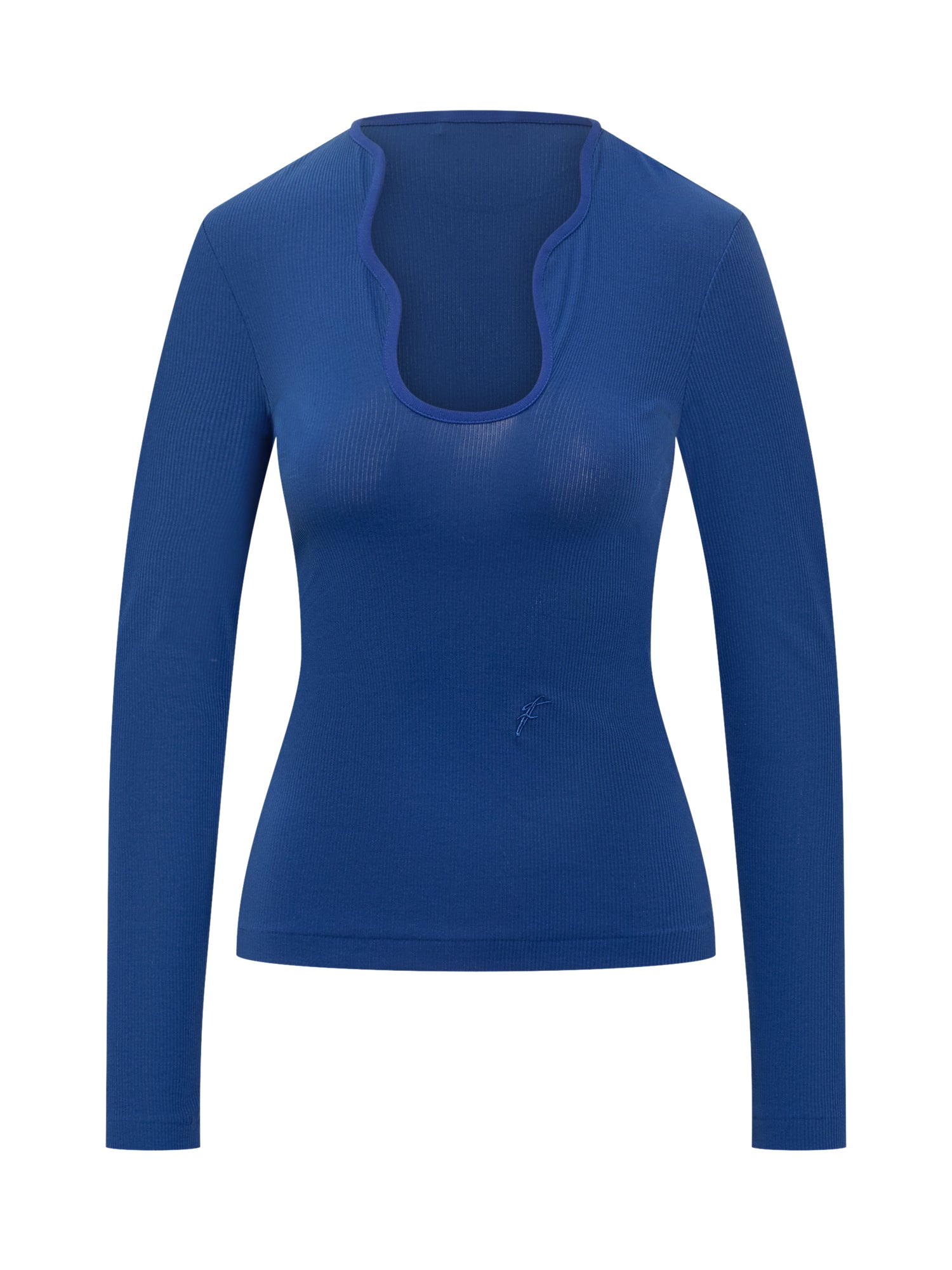 Blue cotton top. Contoured neckline. F embroidered.