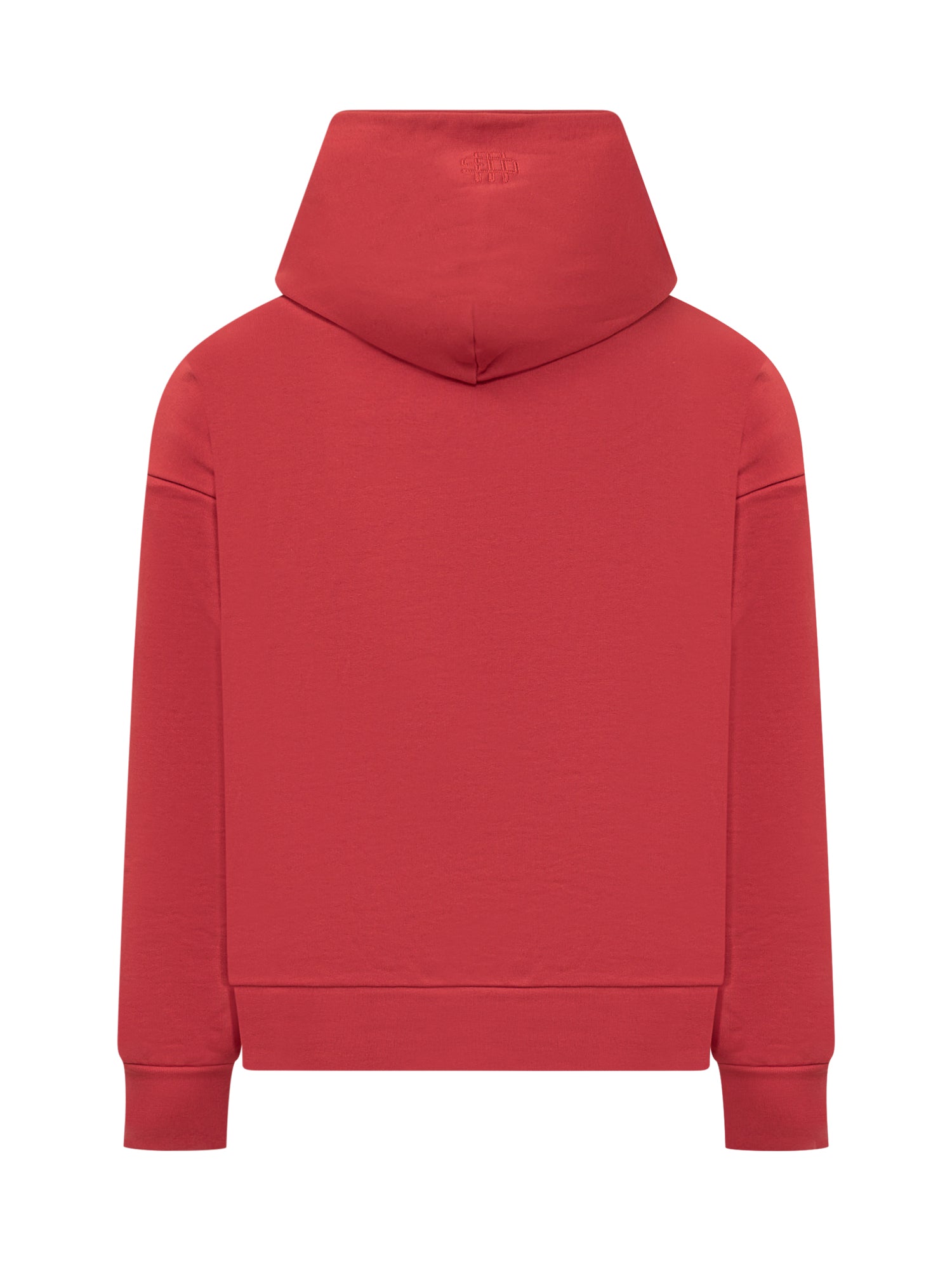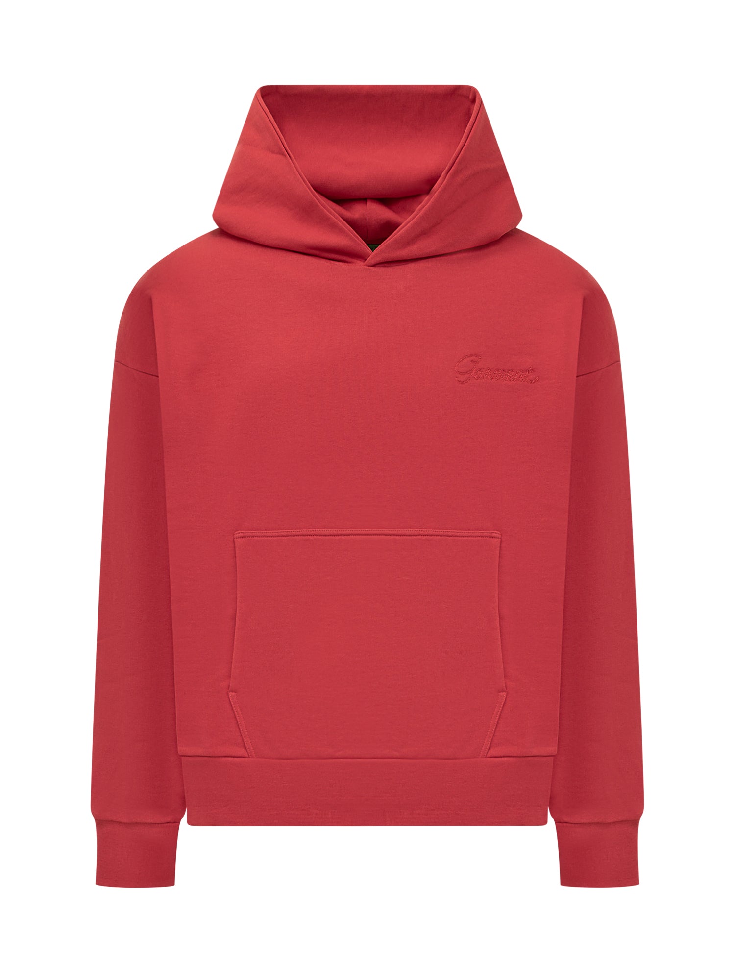 Long-sleeved hooded sweatshirt. Ribbed hems. Single pocket. Embroidered logo on front.