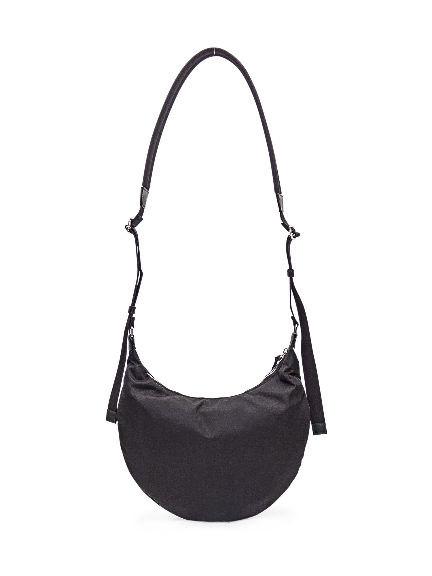 Black nylon shoulder bag. Adjustable shoulder strap with GIVENCHY logo. One compartment and one inside flat pocket. Zip closure. Signature GIVENCHY on the front.