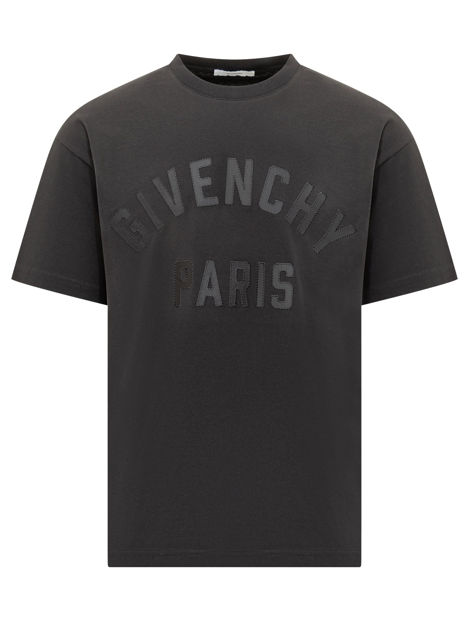 Black Givenchy cotton t-shirt with tonal Givenchy Paris embroidered on the chest.