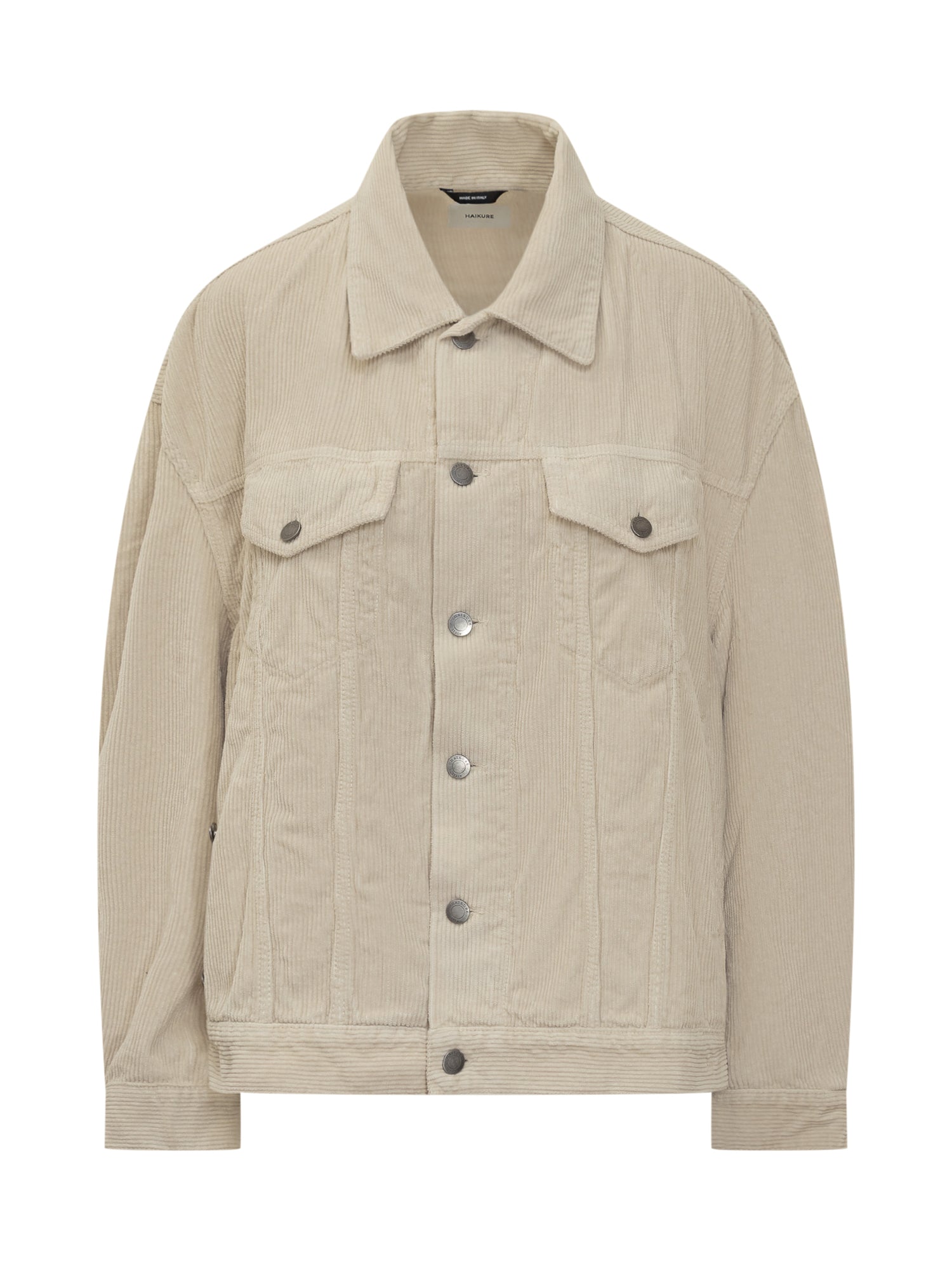 Haikure Janet Velvet jacket in beige corduroy. Oversized fit, flap pockets and snap buttons.