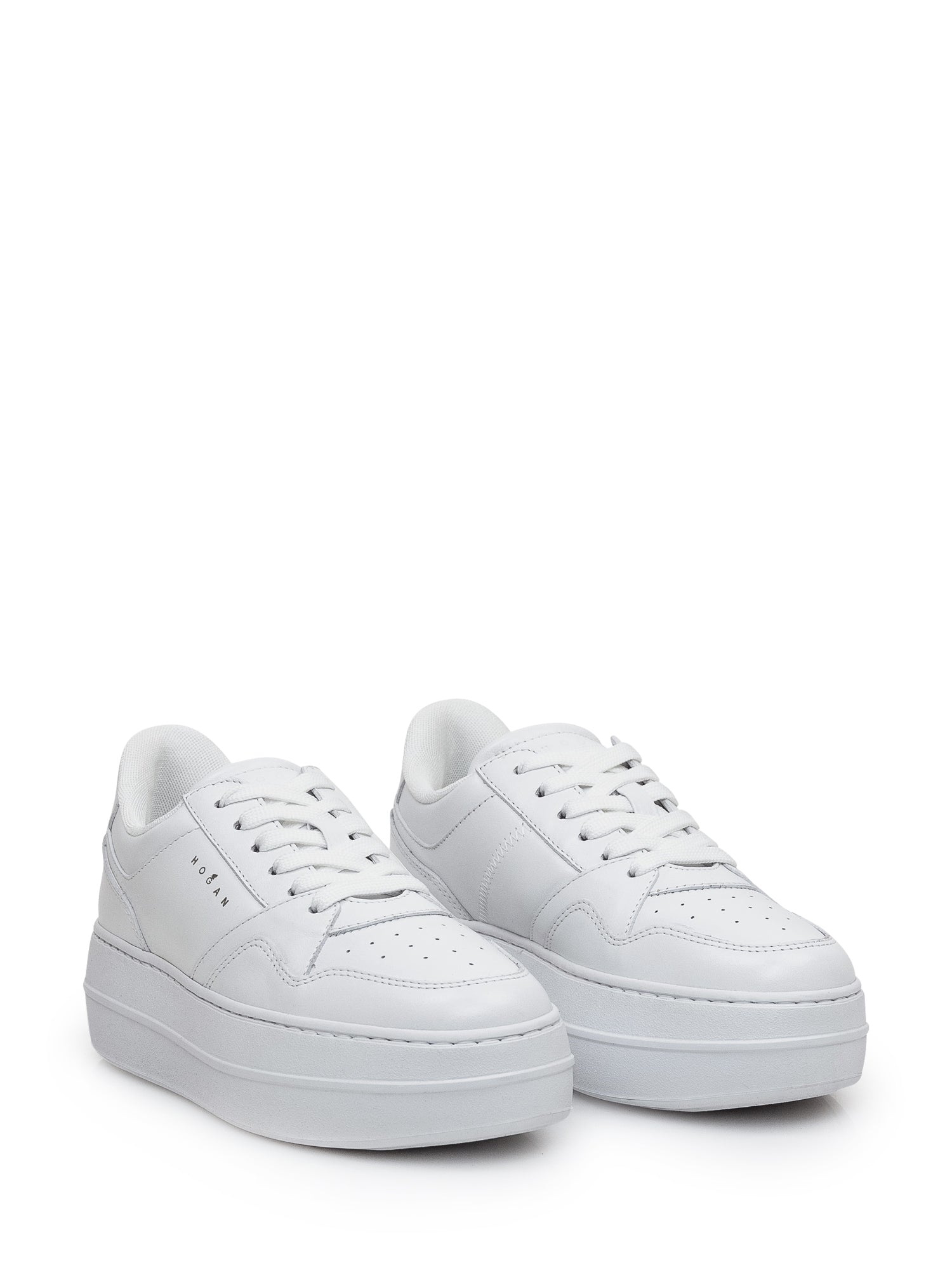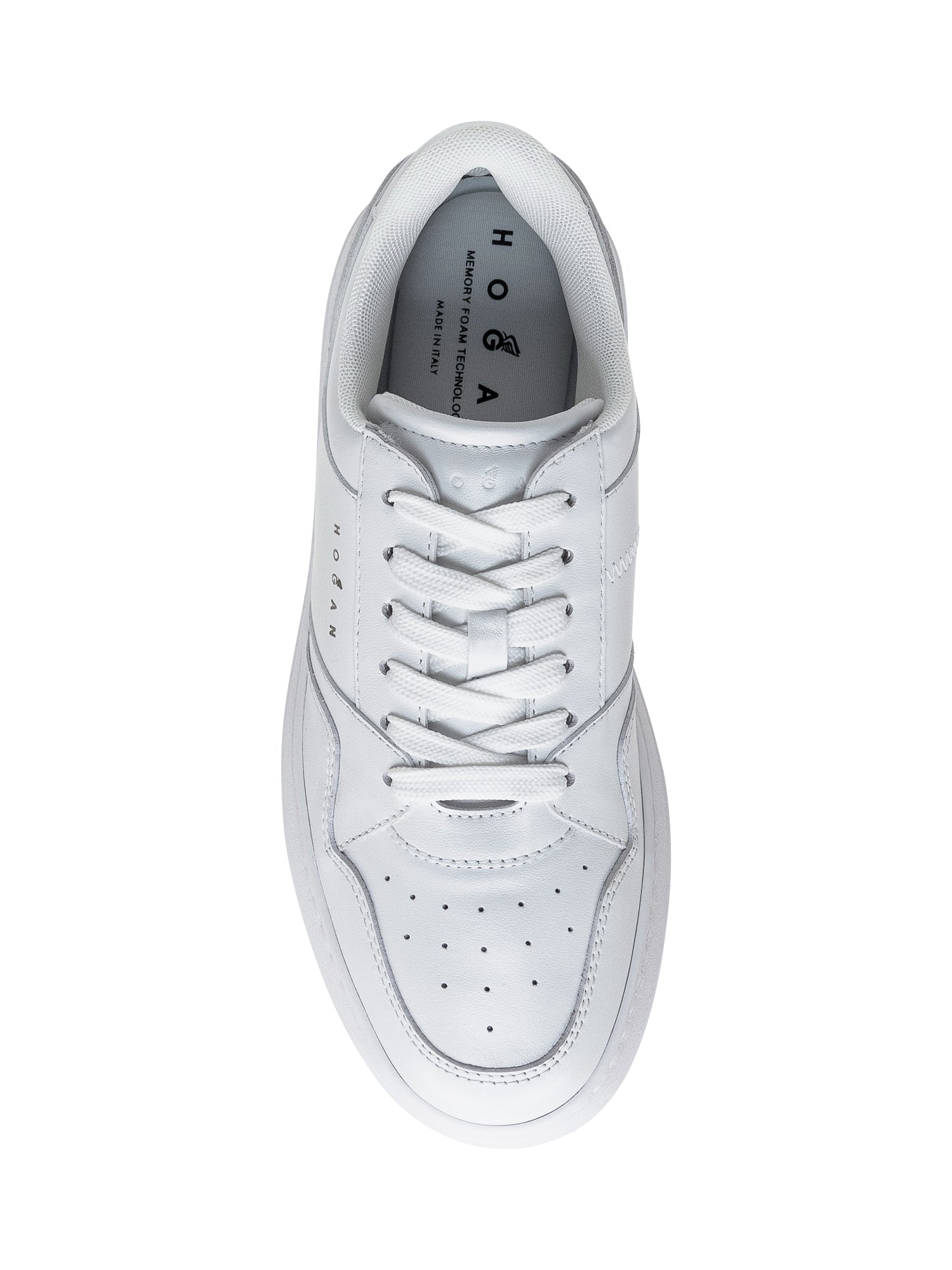 White leather sneaker. Closure with laces. Embossed logo on the back.