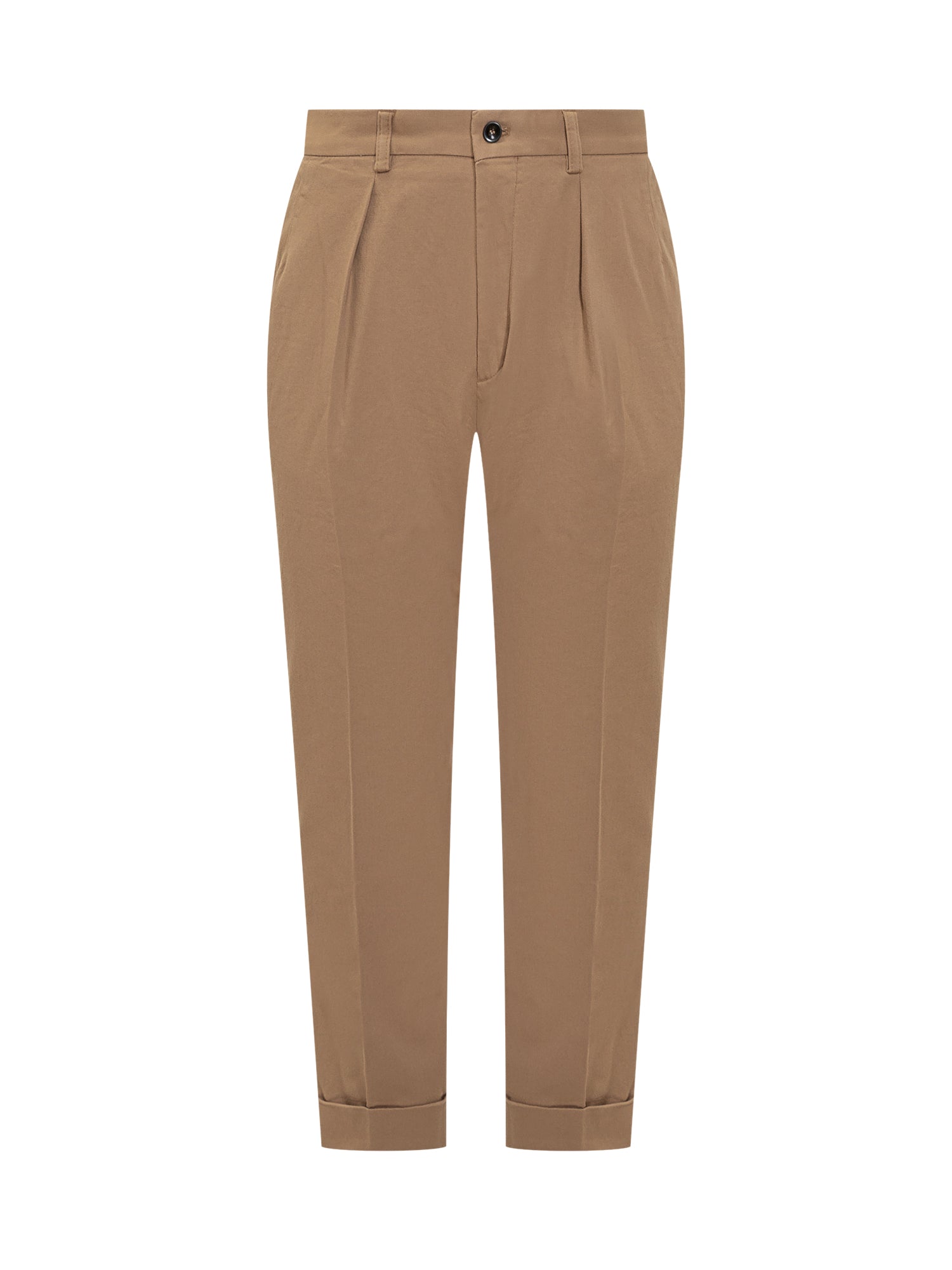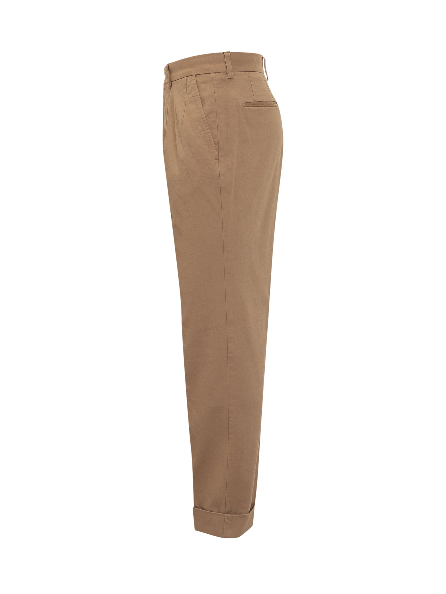 ncotex beige cotton pants with front pleats, button closure and cuffed hem.