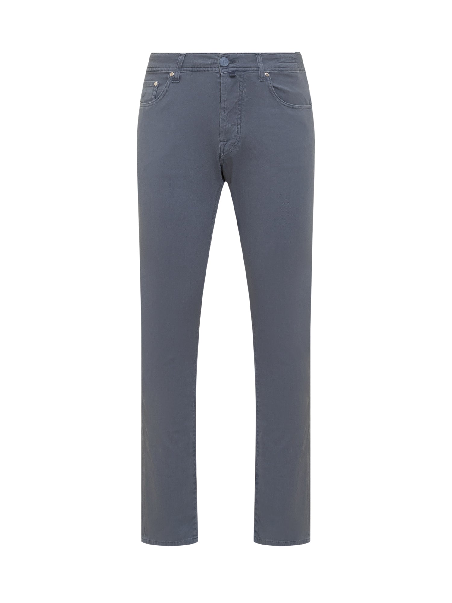 Long jeans. Button closure. Belt loops. Five pockets. Slim fit. Logo on the back.