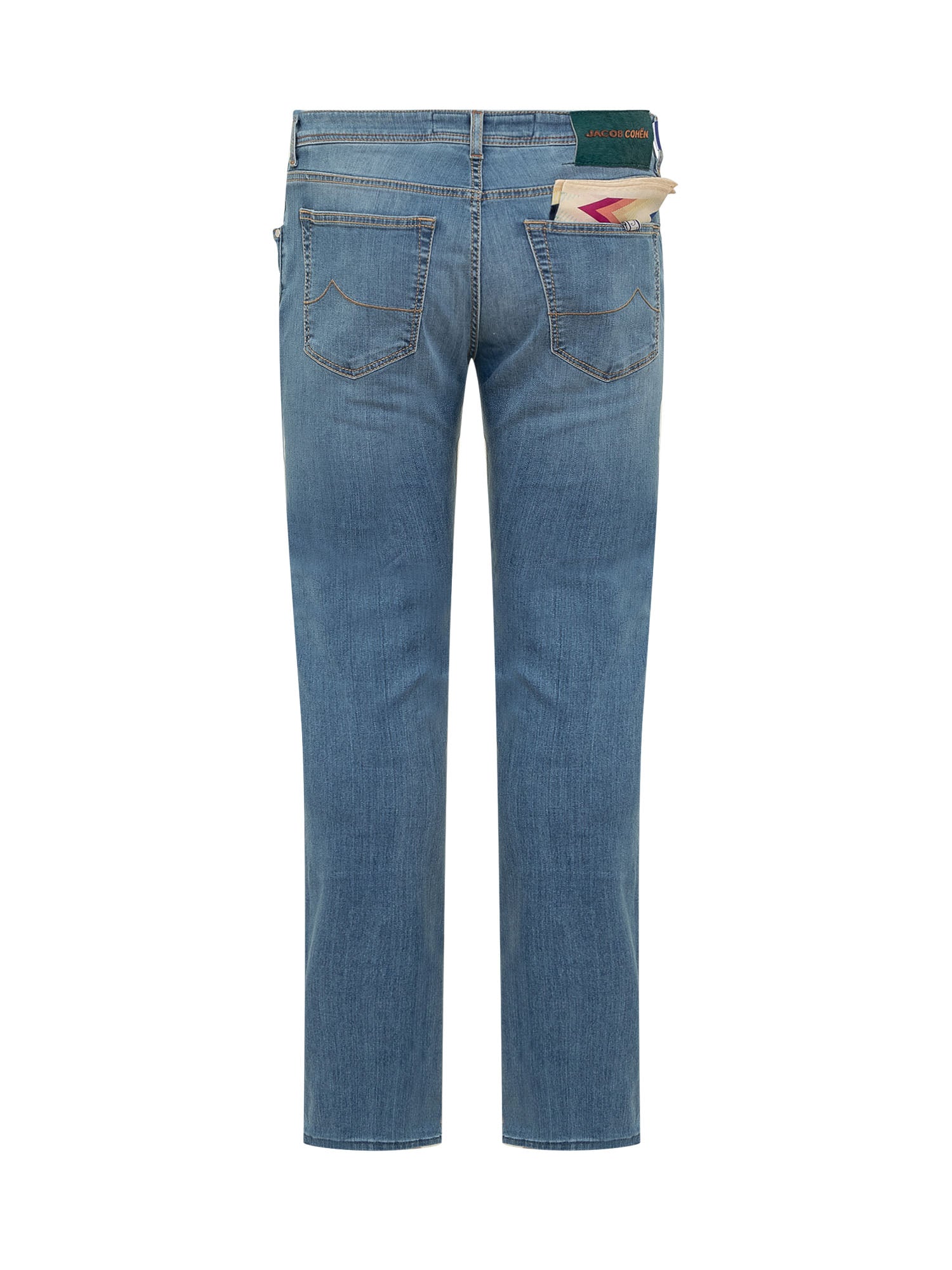 Long slim fit jeans. Button and zipper closure. Belt loops. Five pockets.
