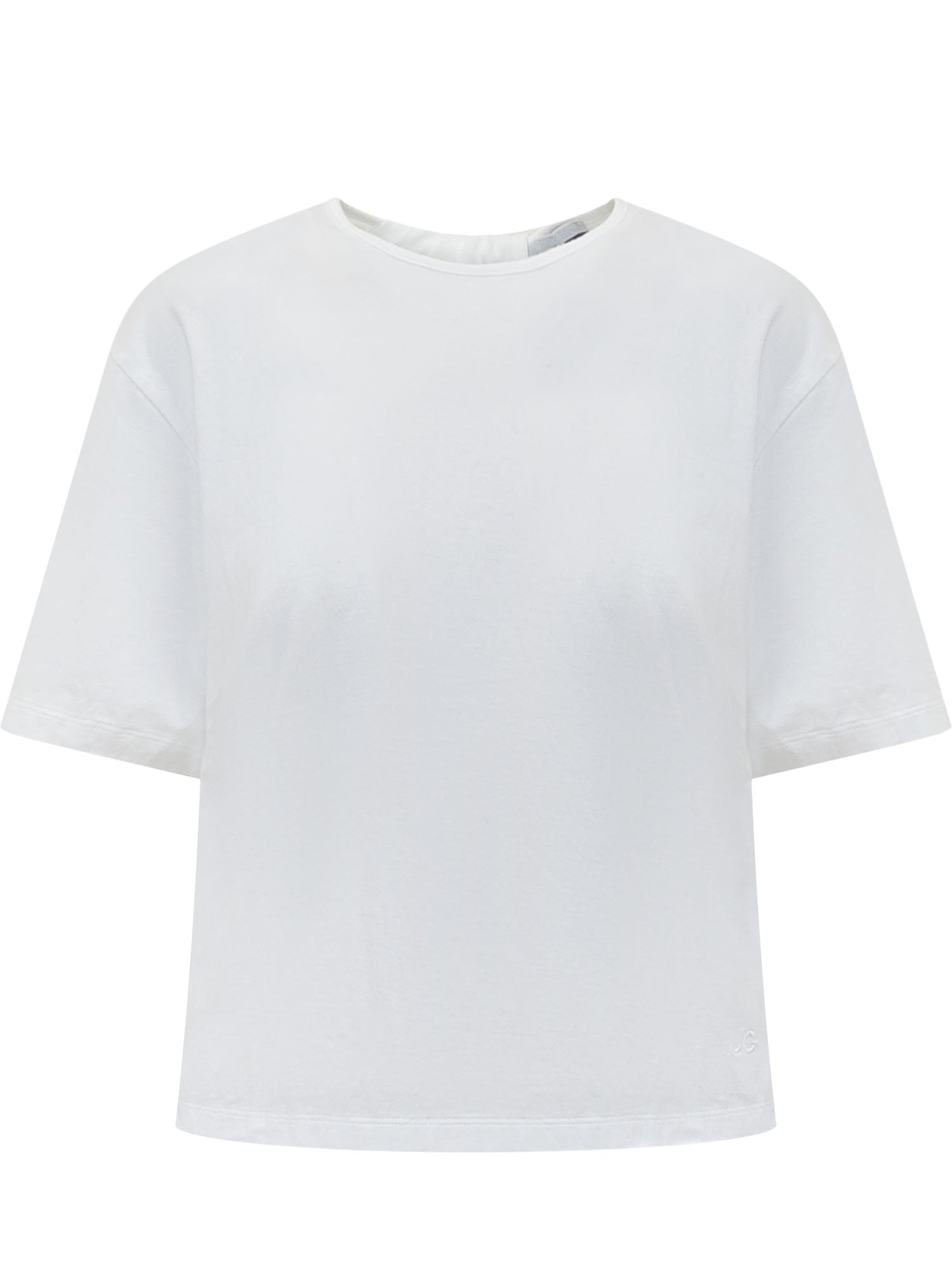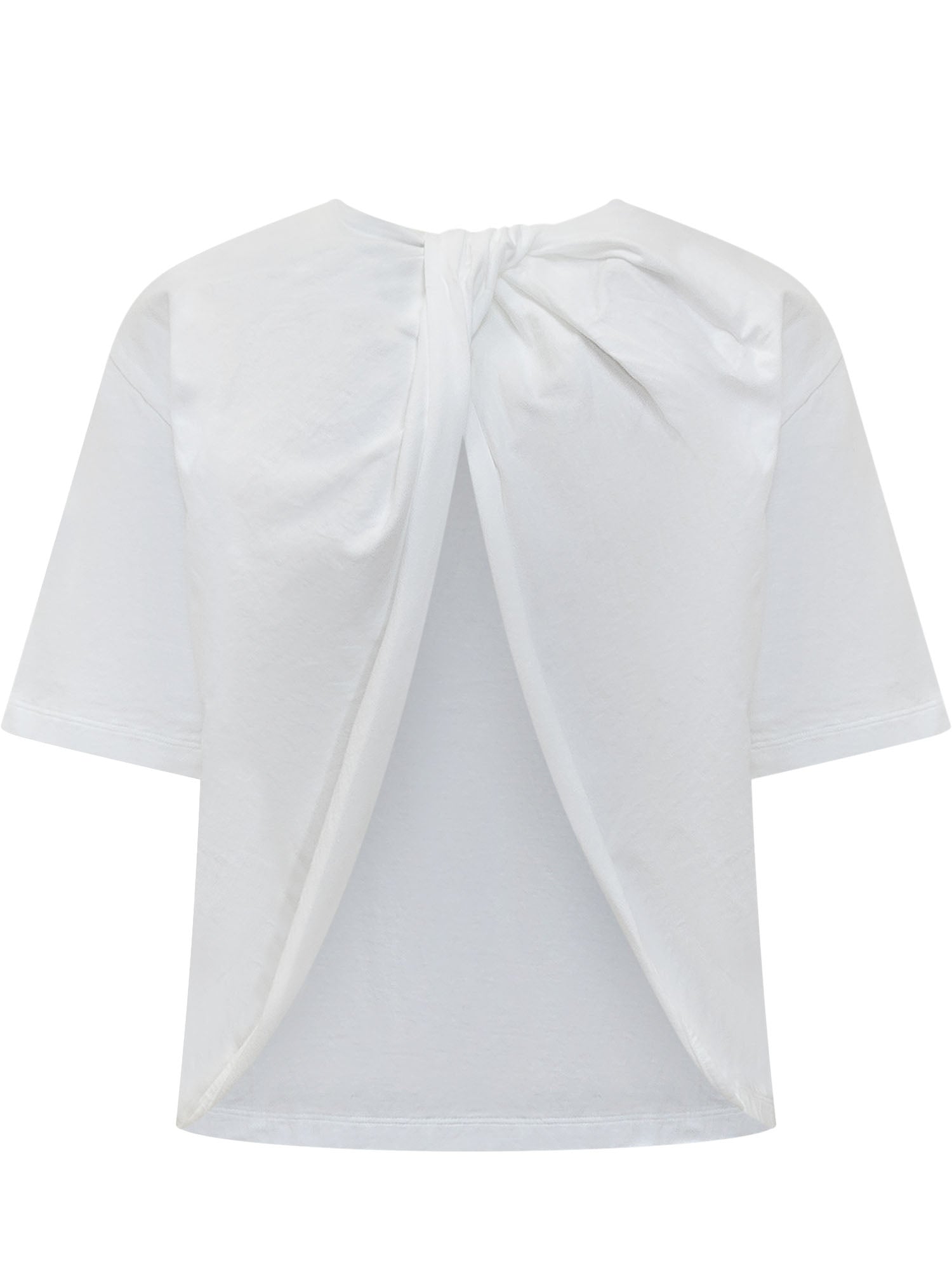 Short sleeve cotton t-shirt. Crew neck. Ribbed hems. Back knot. Back opening.