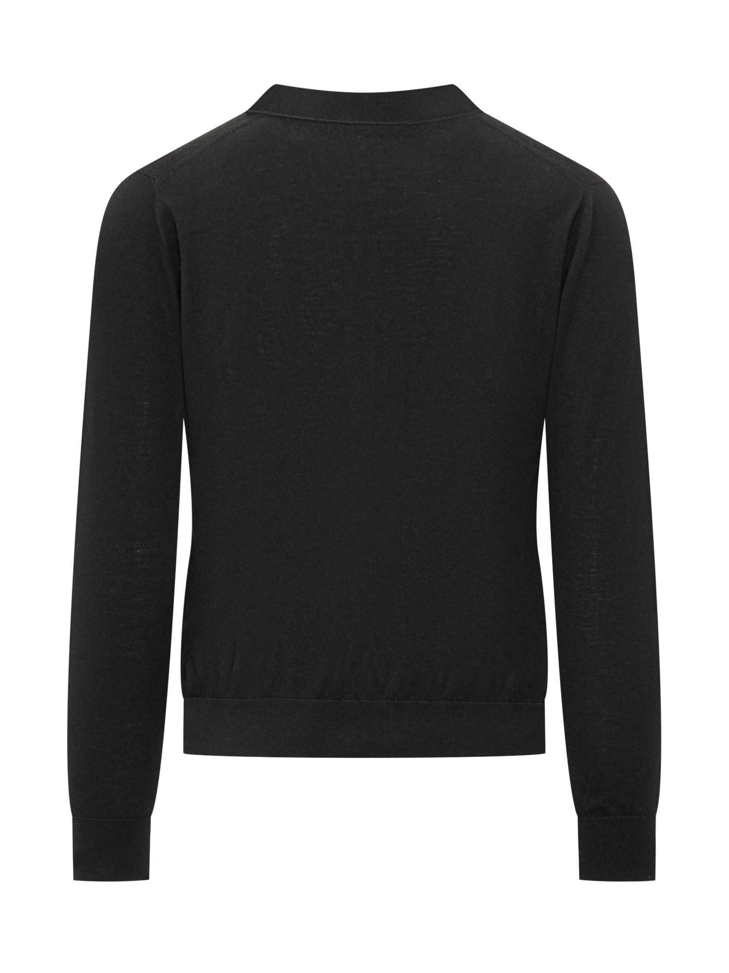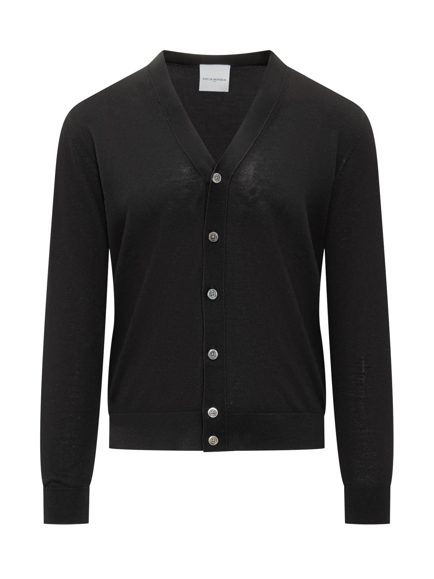Knit De Monsieur black wool cardigan with a minimalist button-up design.
