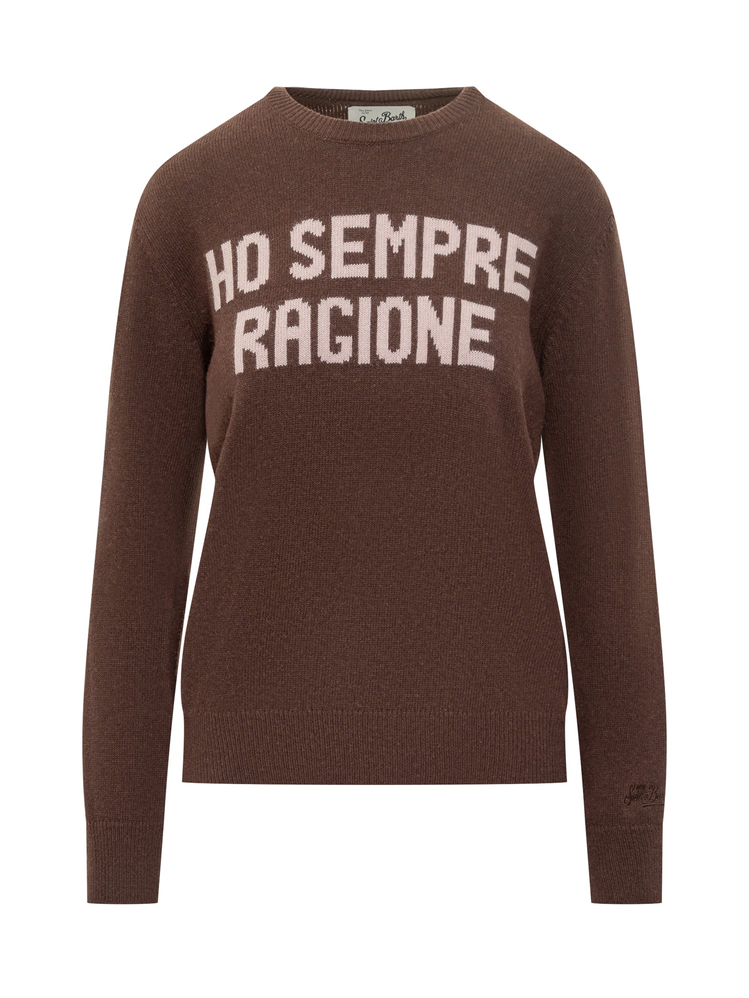 MC2 Saint Barth brown wool sweater with Ho Sempre Ragione contrast lettering.