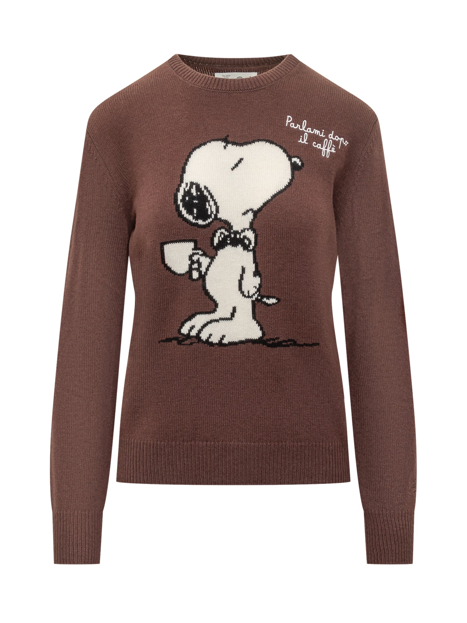 MC2 Saint Barth brown wool sweater featuring Snoopy design and parlami dopo il caffè embroidery.