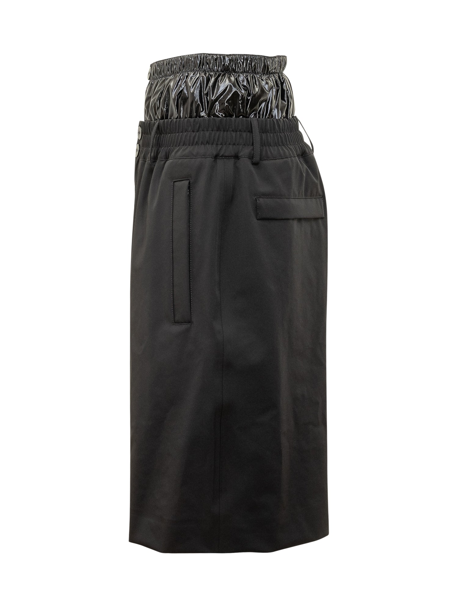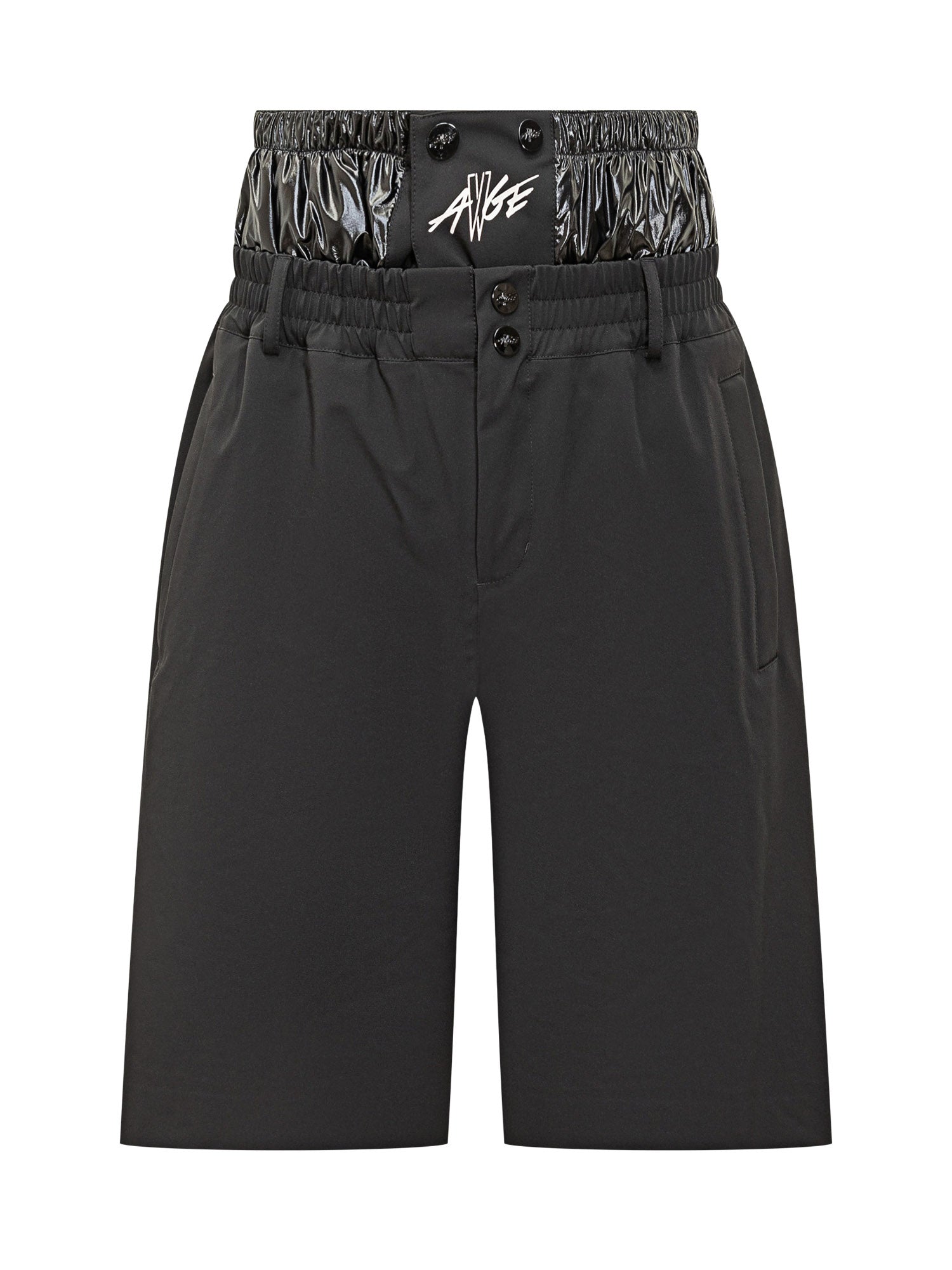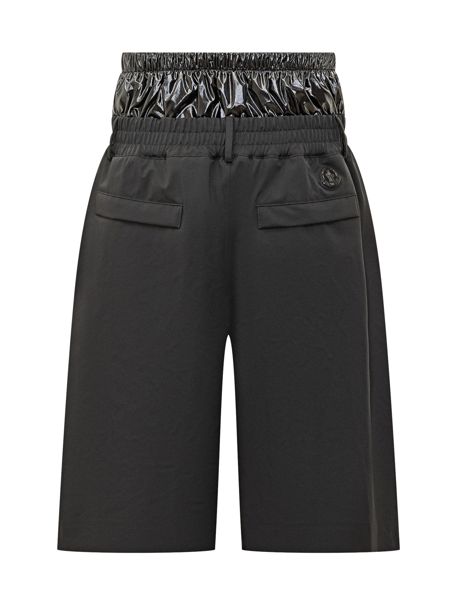 1 Moncler Genius Asap Rocky technical shorts in black with glossy contrast details, adjustable elastic waist and logo on waistband. A must-have for a modern streetwear style.