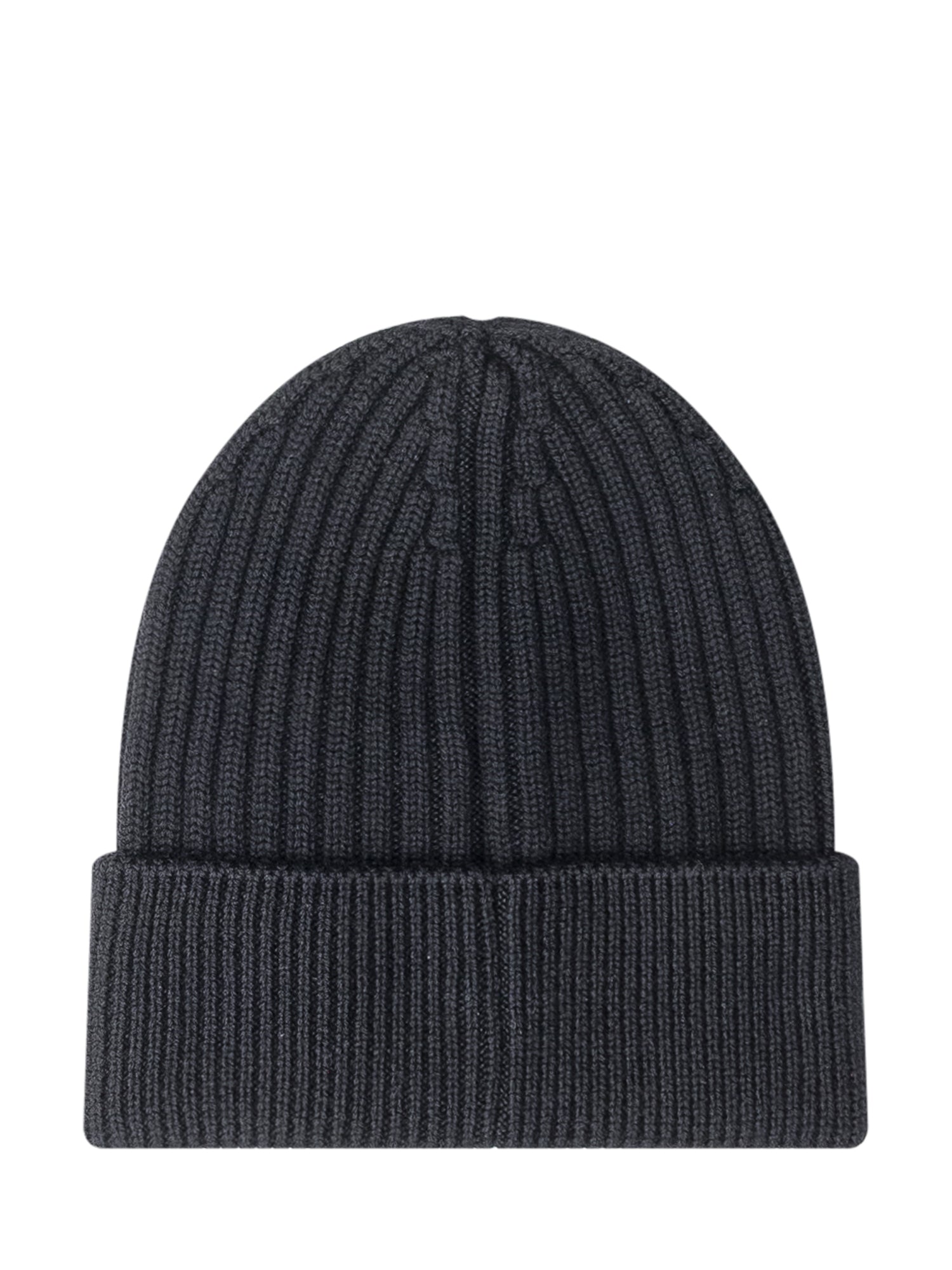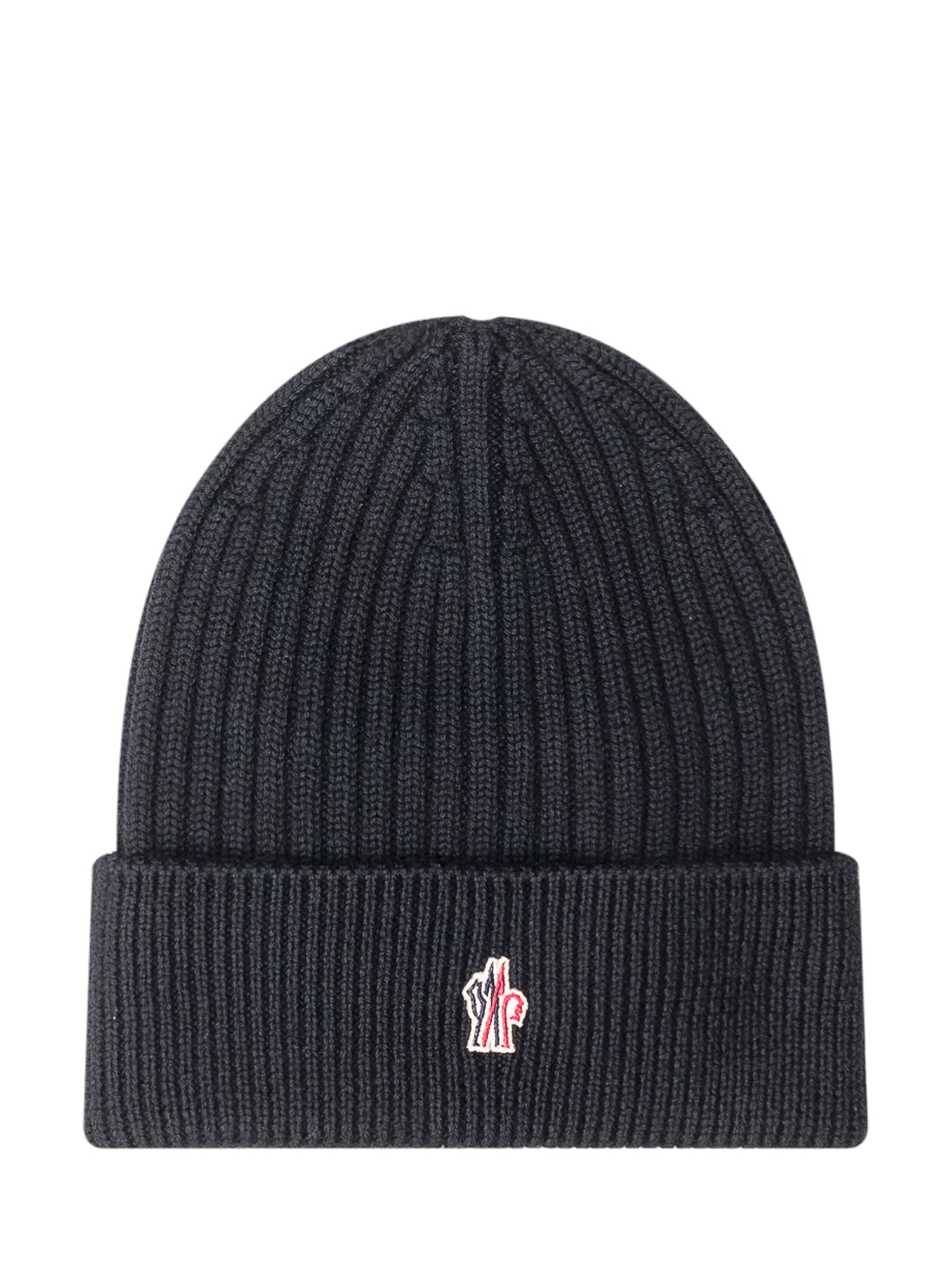 Moncler Grenoble blue ribbed wool beanie with embroidered logo on the cuff.