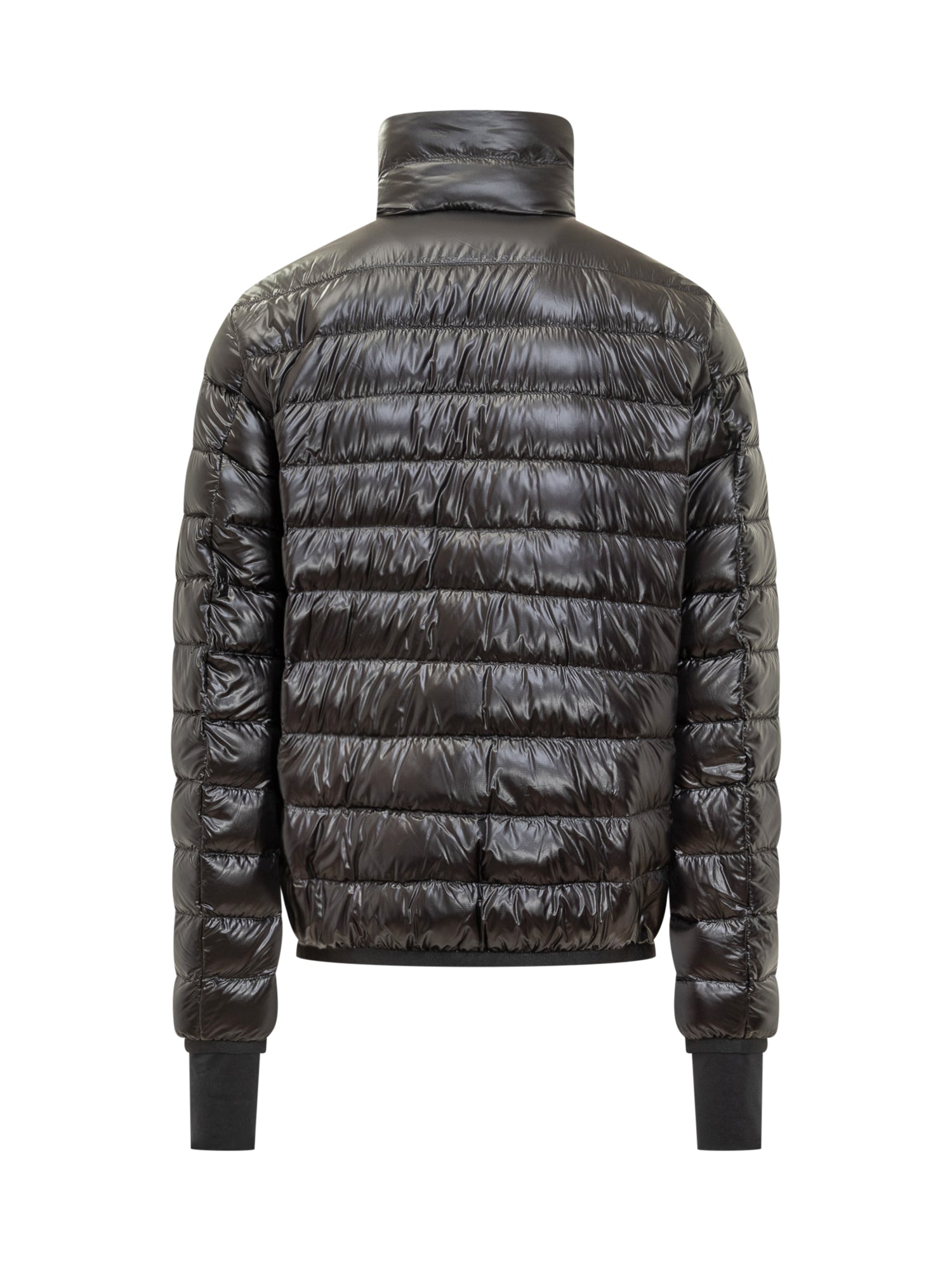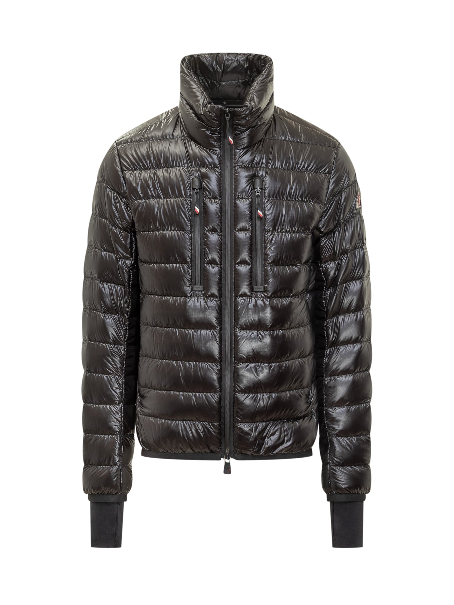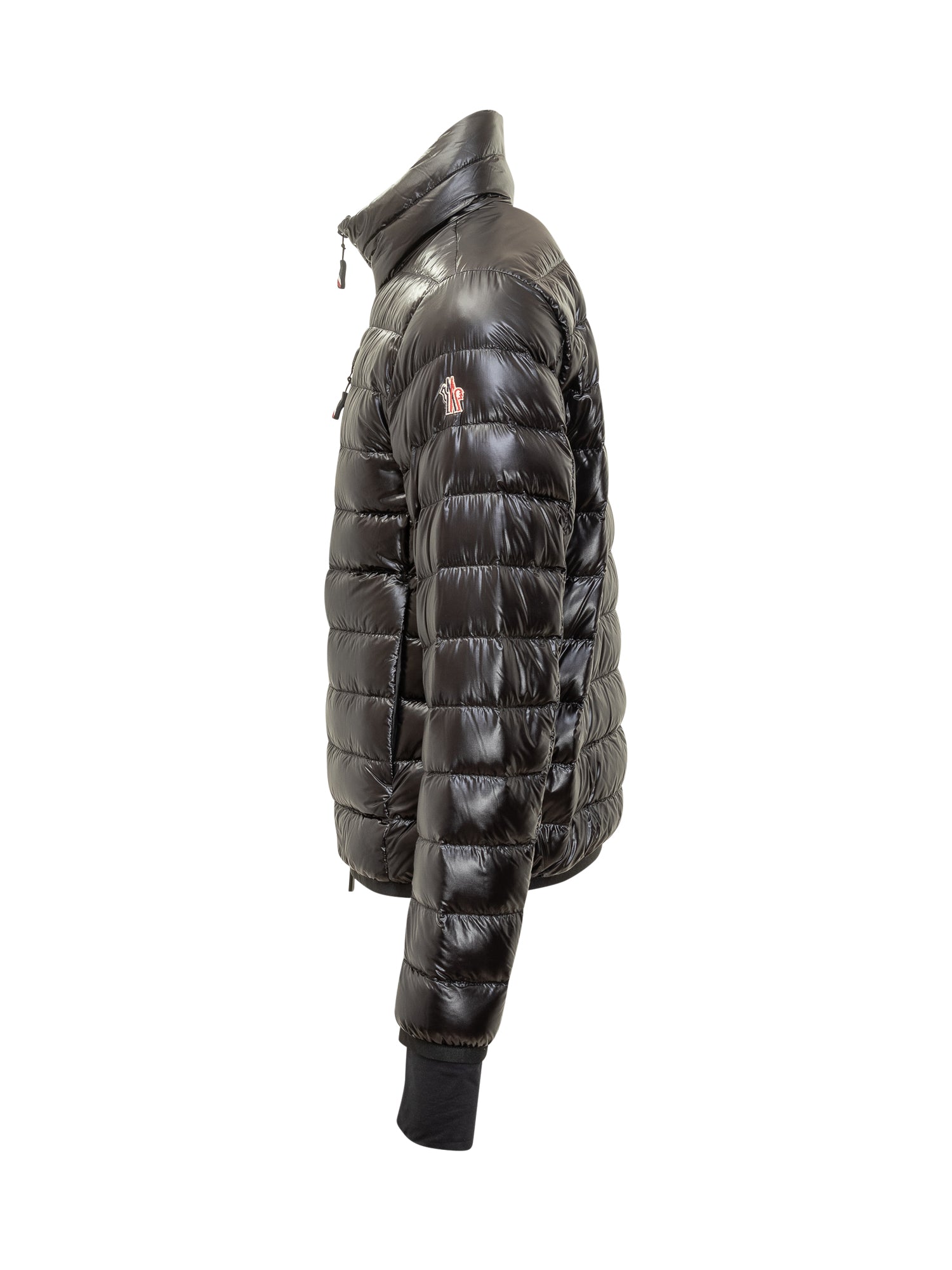 Moncler Grenoble men s down jacket in shiny black nylon with horizontal quilting and warm padding. Features zip closure, vertical zip pockets and technical cuffs for extra comfort.
