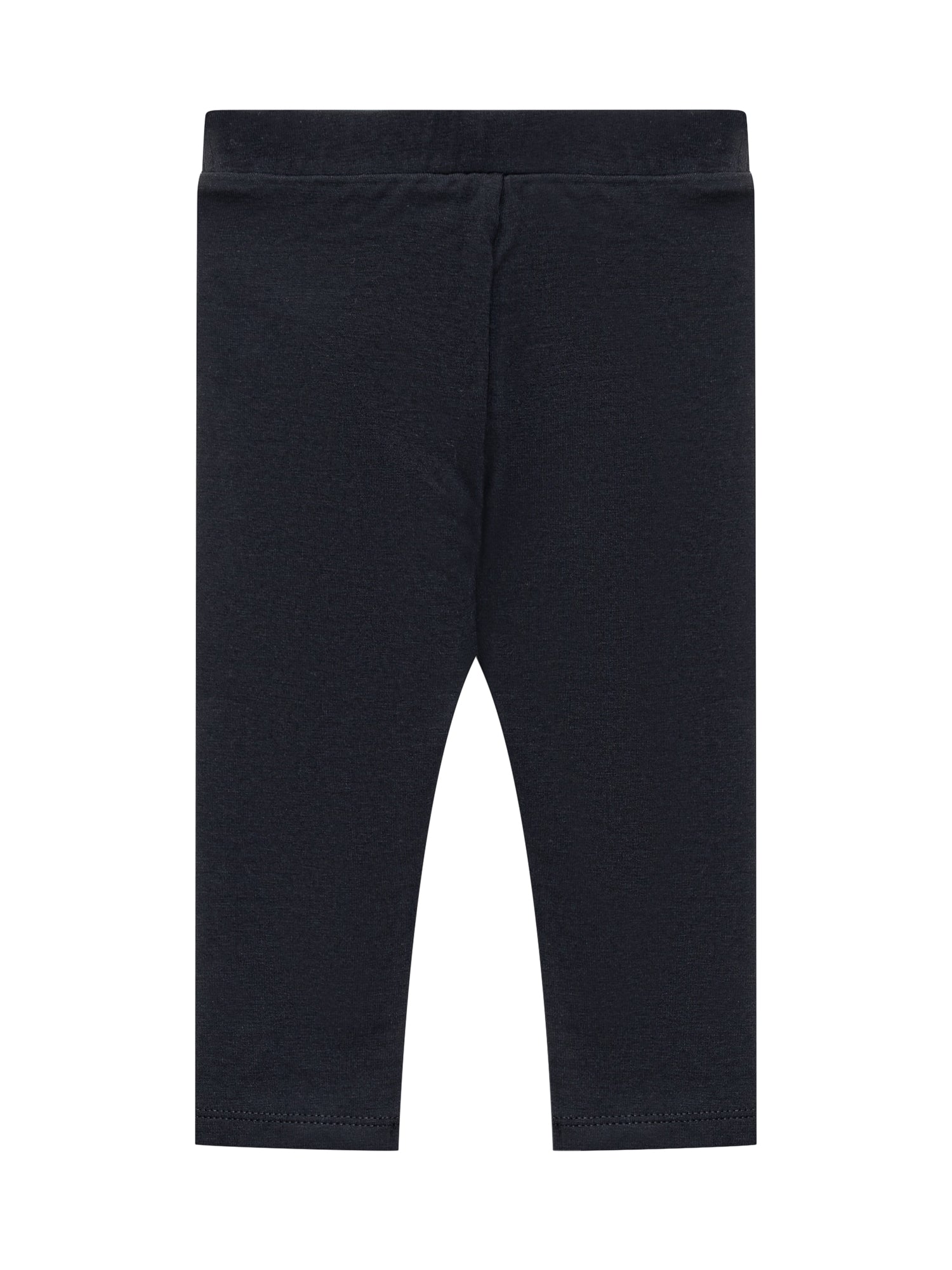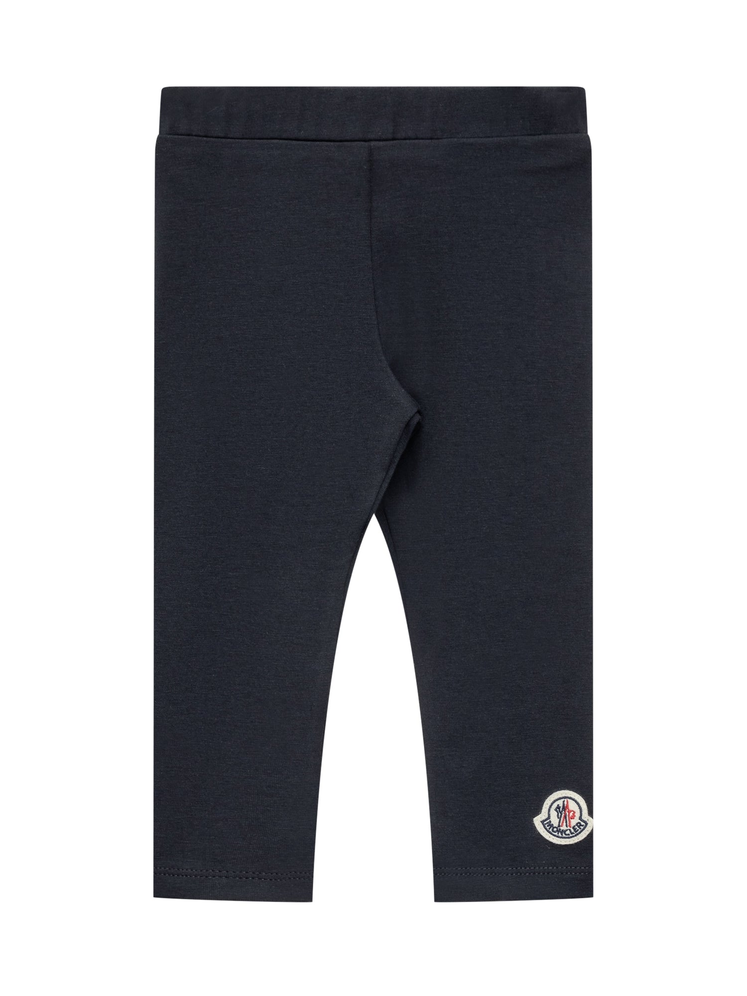 Long leggings pants. Ribbed hems. Logo patch on front.