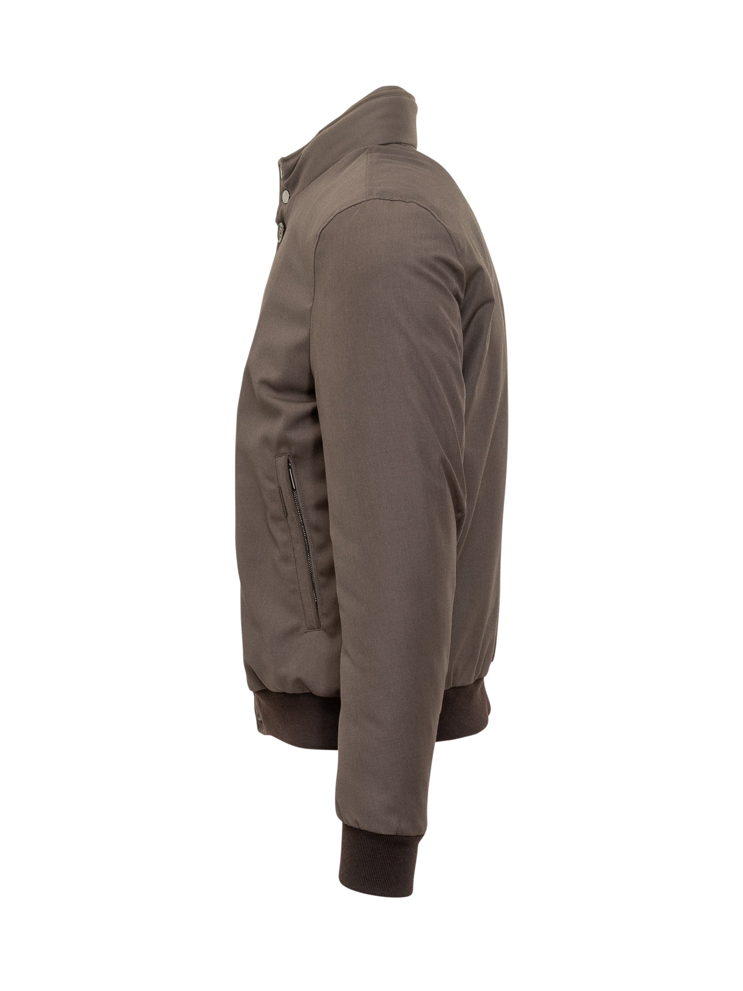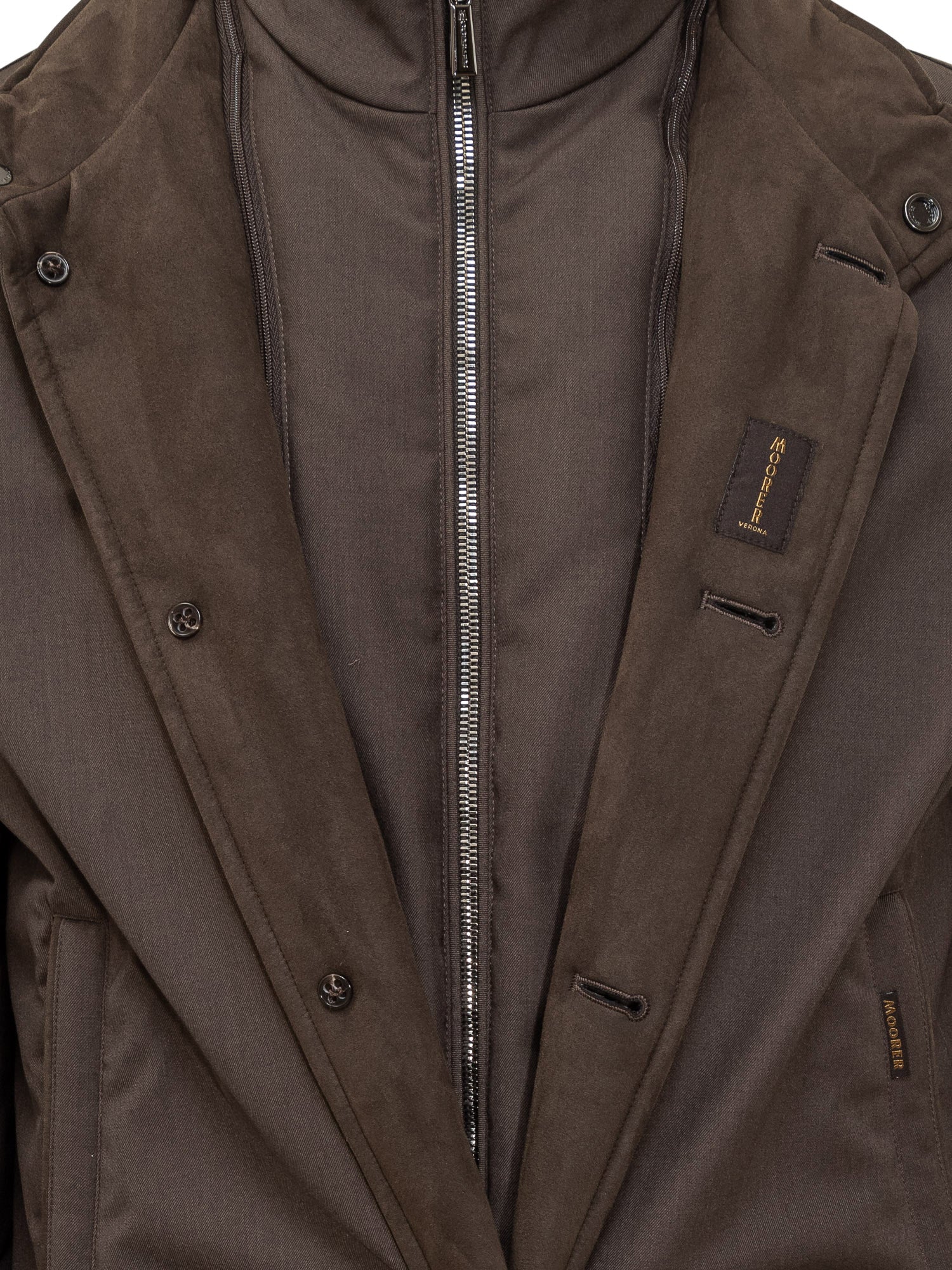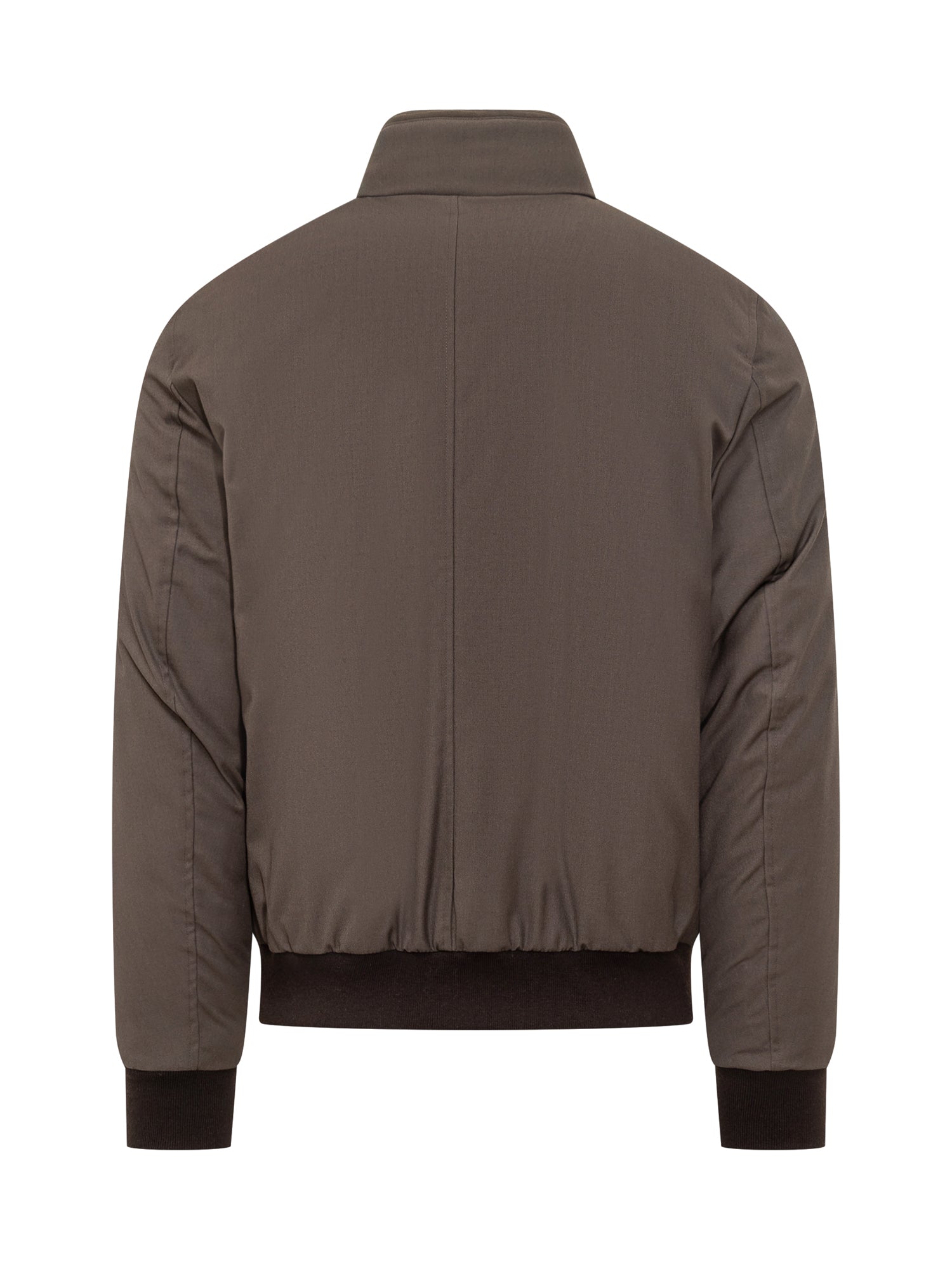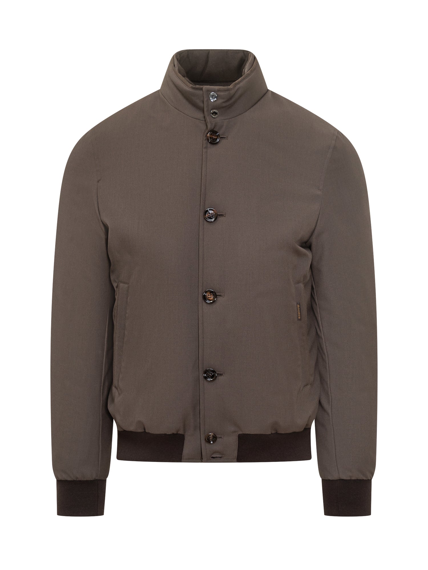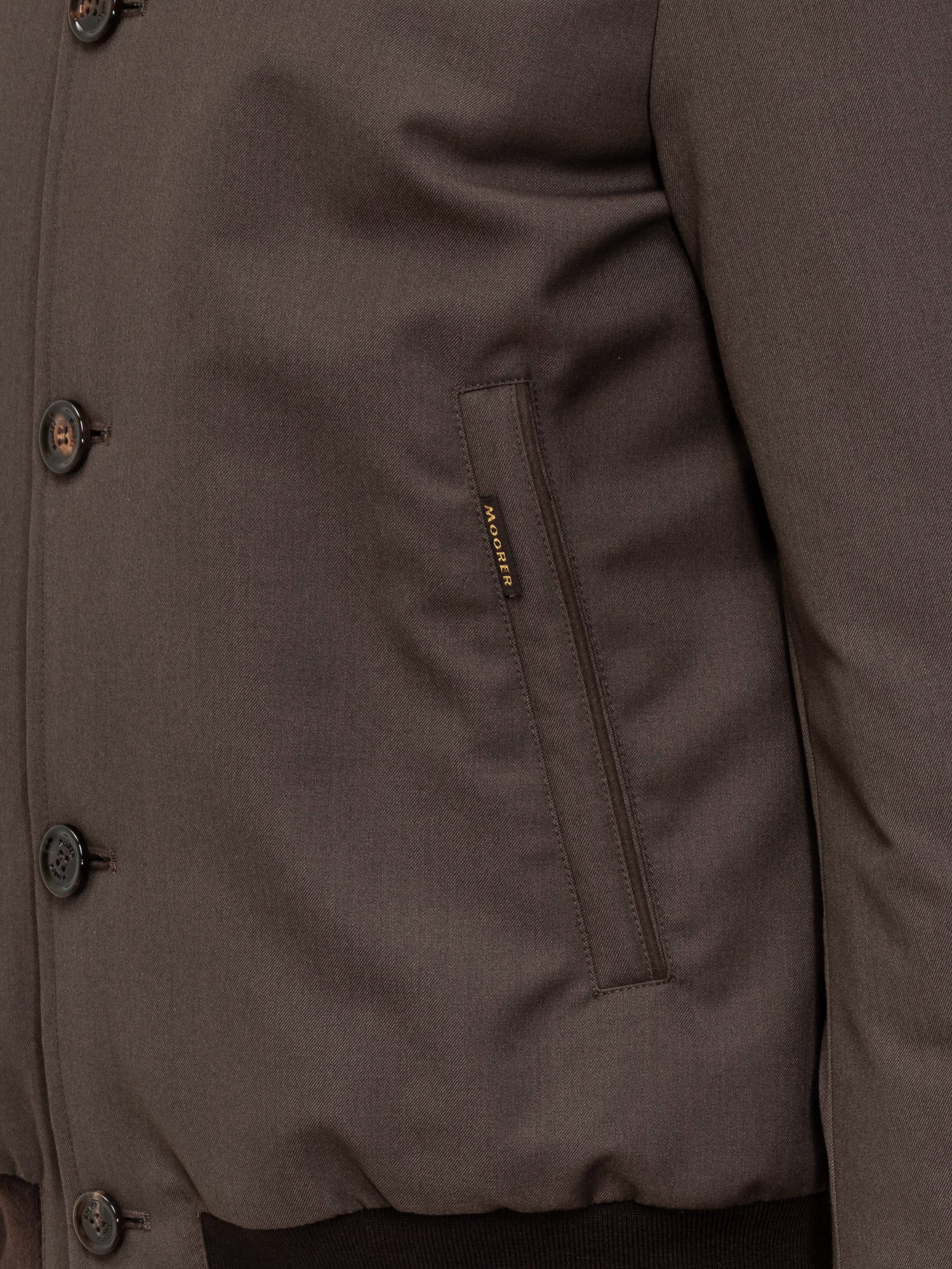 Moorer Janos jacket in brown technical fabric, padded and lightweight, featuring button closure and ribbed details.