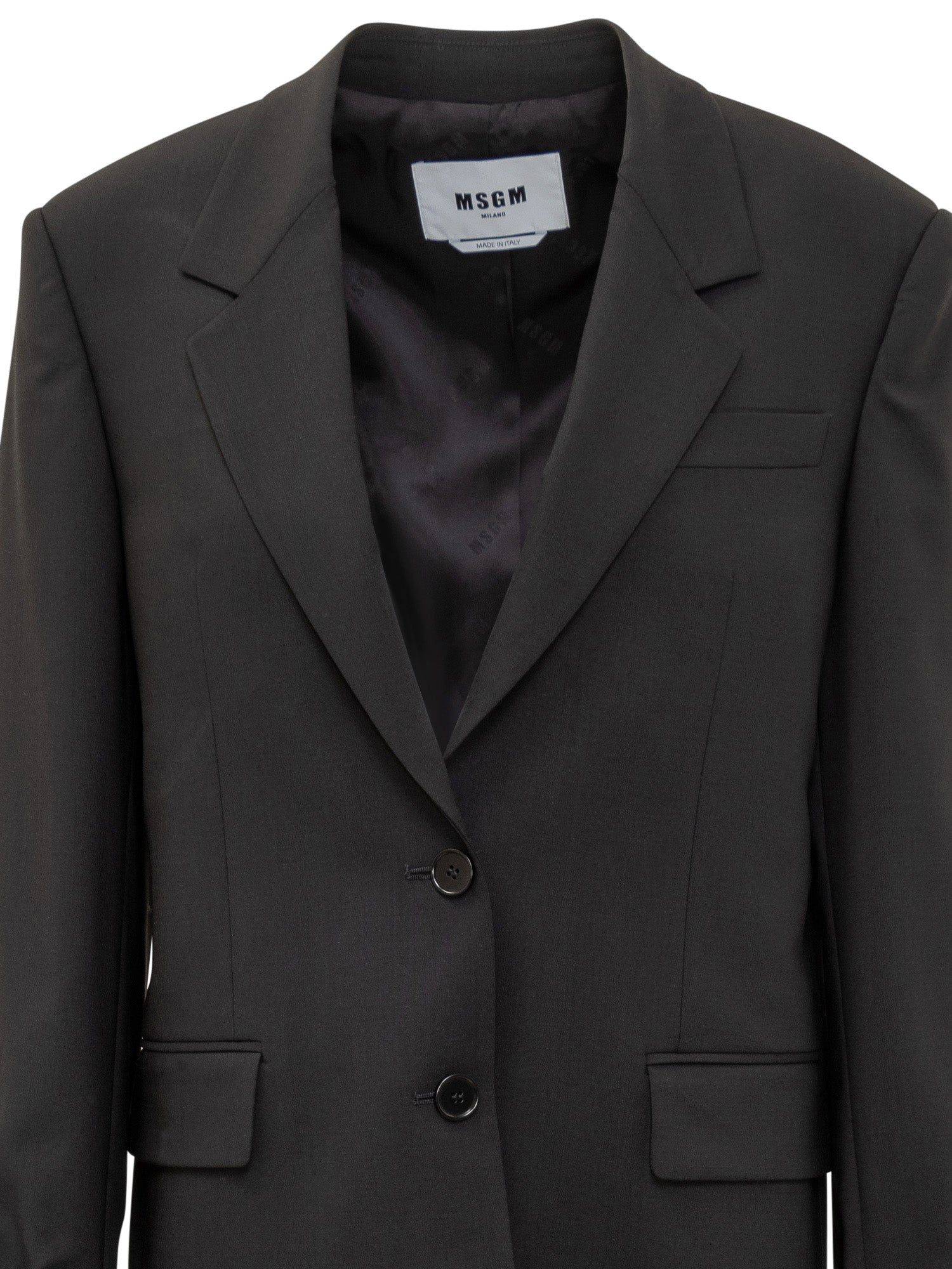 MSGM fluid fabric blazer featuring classic lapels, two-button closure and flap pockets. Turn-up cuffs with contrast detail and embroidered logo.
