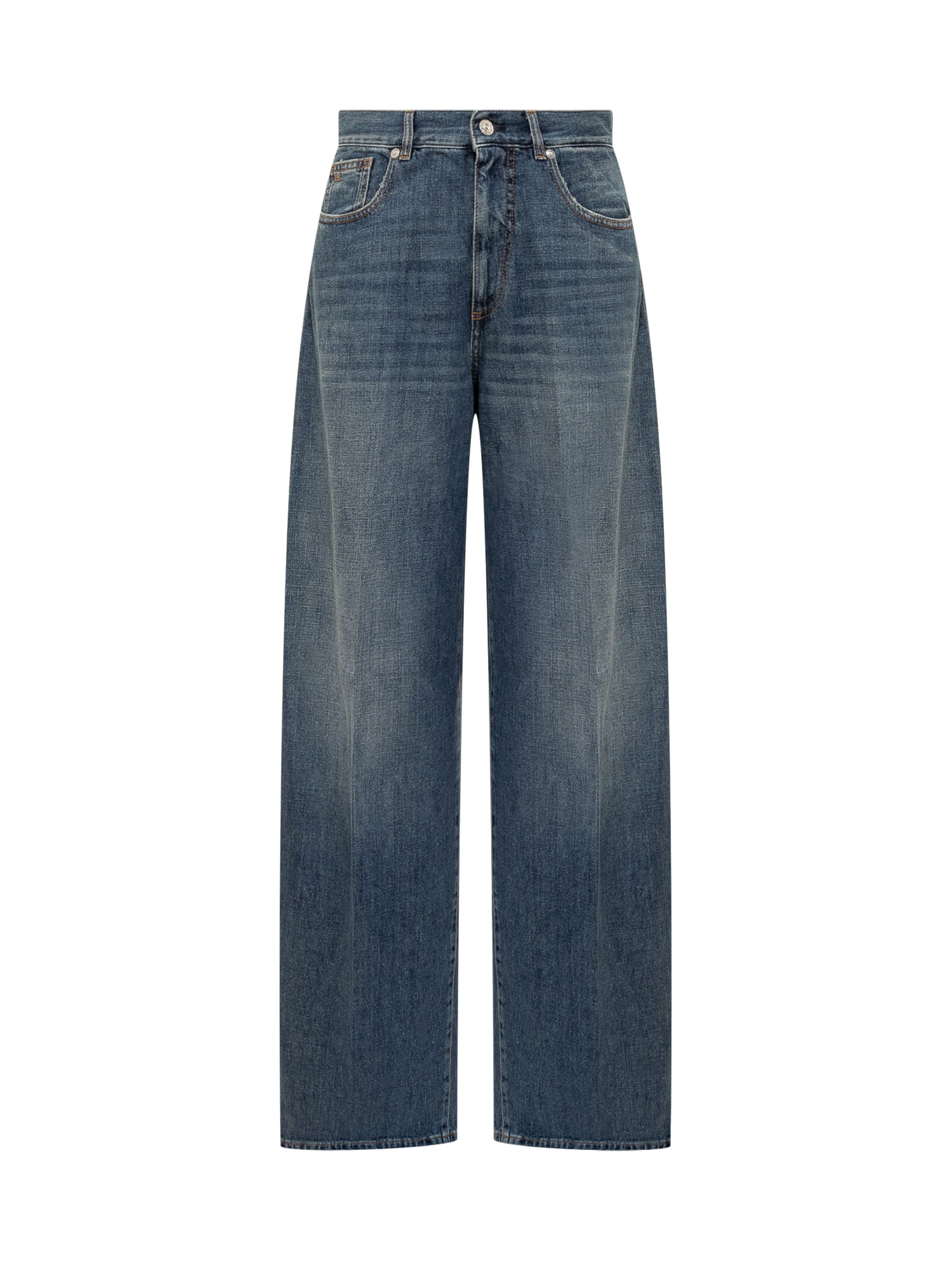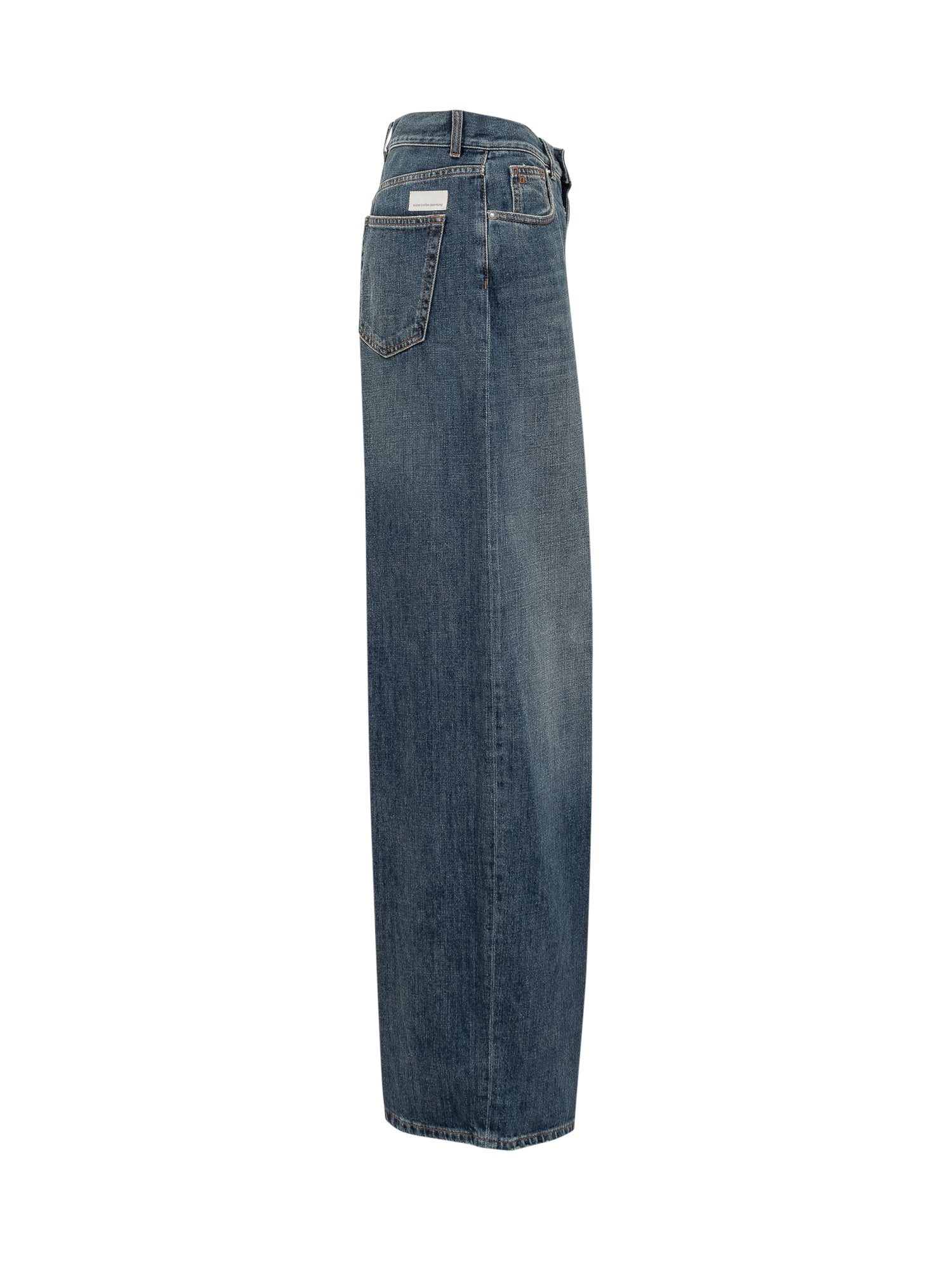 Nine The Morning jeans in blue denim with vintage wash and wide leg.