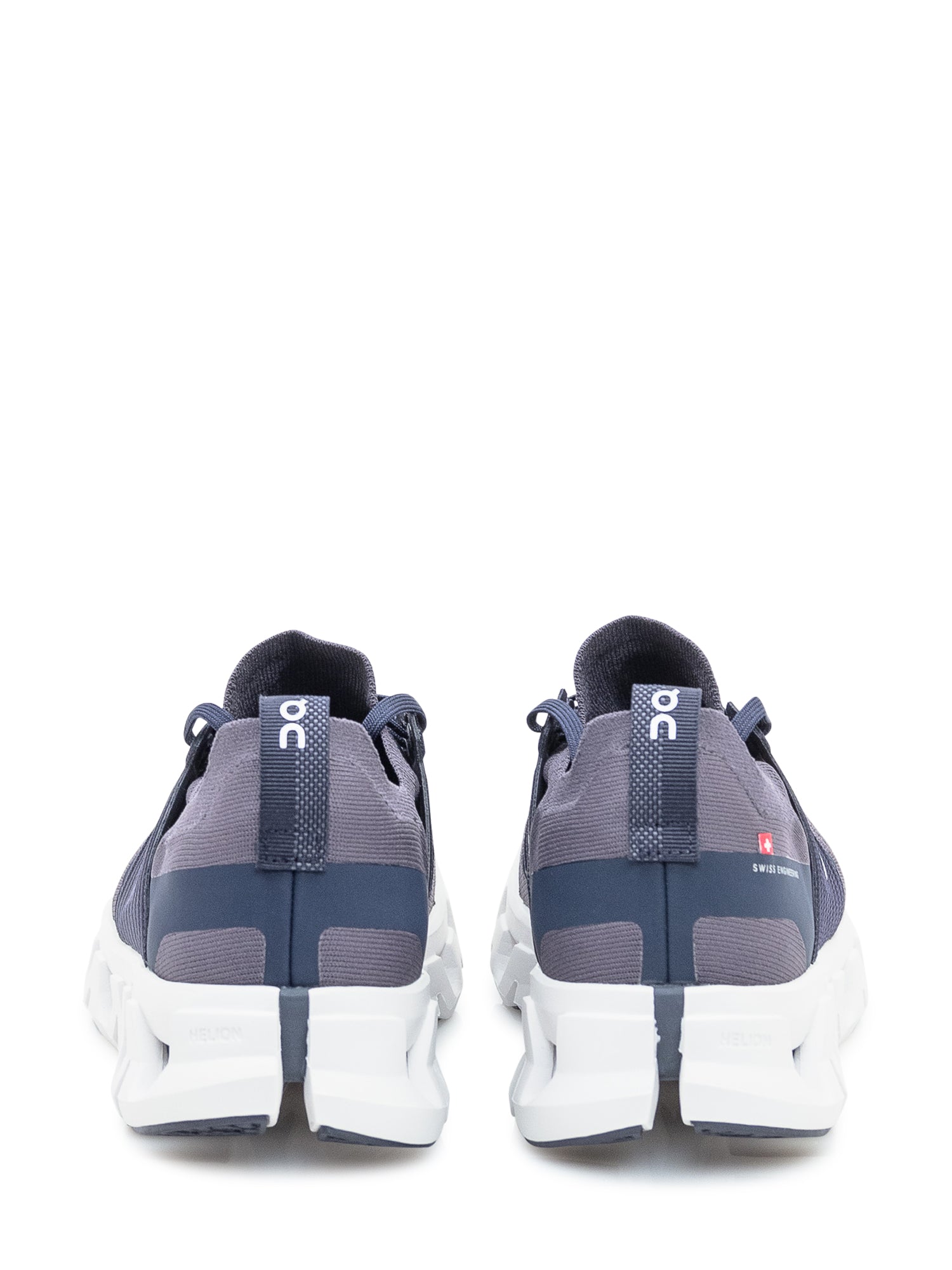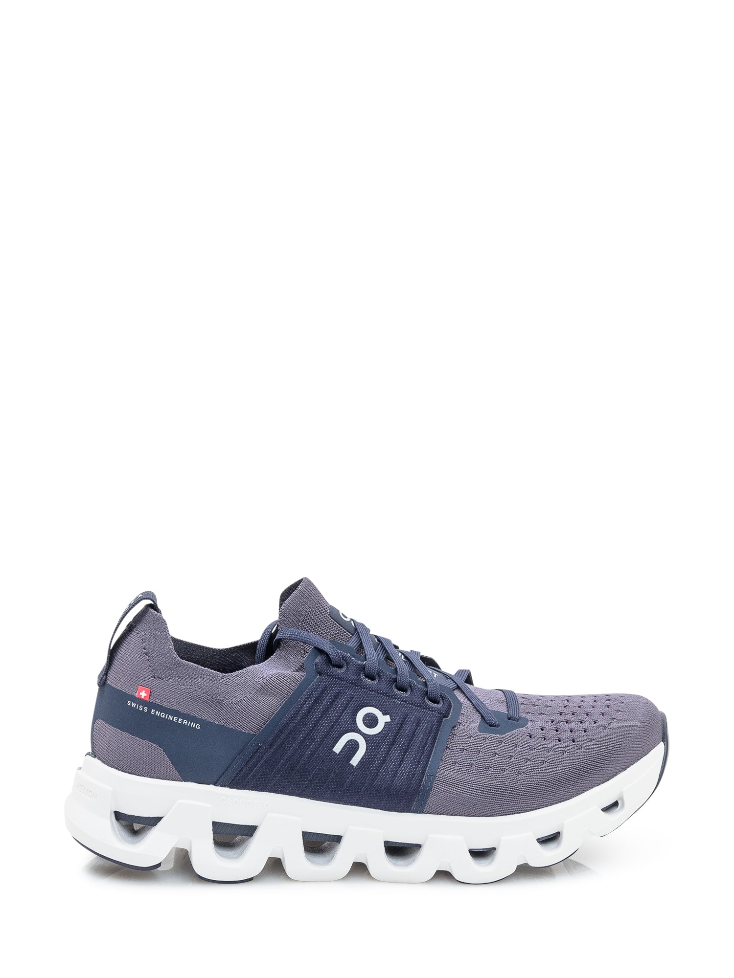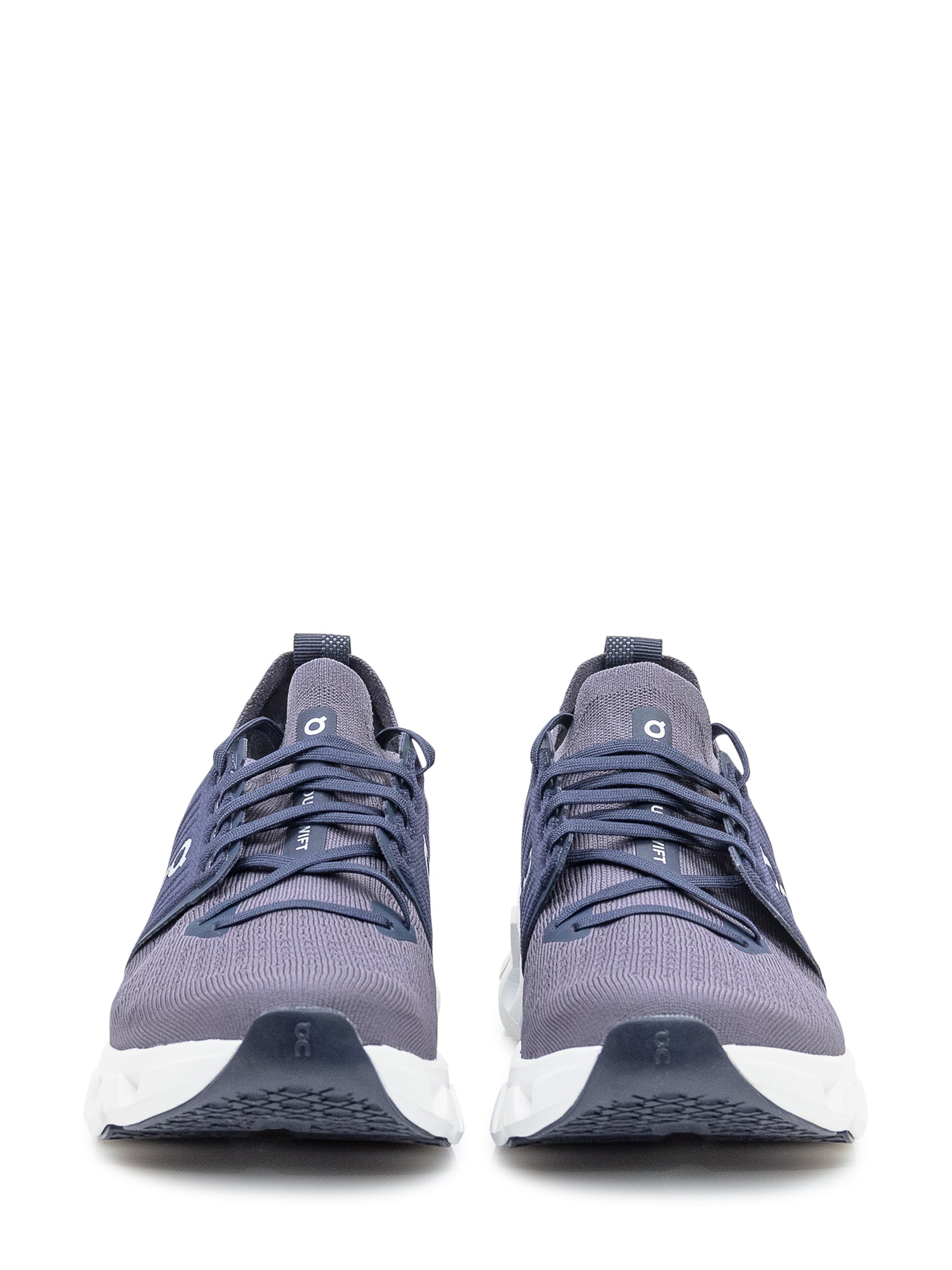On Cloudswift 4 sneakers in grey and blue technical mesh. Lightweight and flexible, featuring CloudTec and Speedboard for responsive cushioning and all-day comfort in running and casual wear.