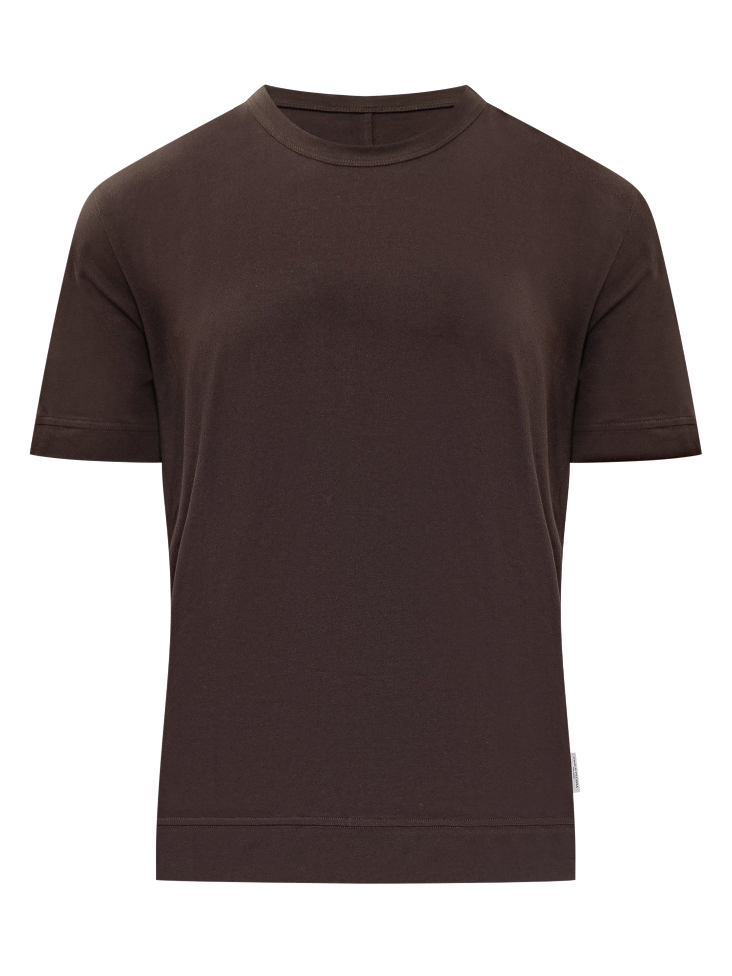 Paolo Pecora brown stretch cotton jersey T-shirt featuring a clean, contemporary silhouette.