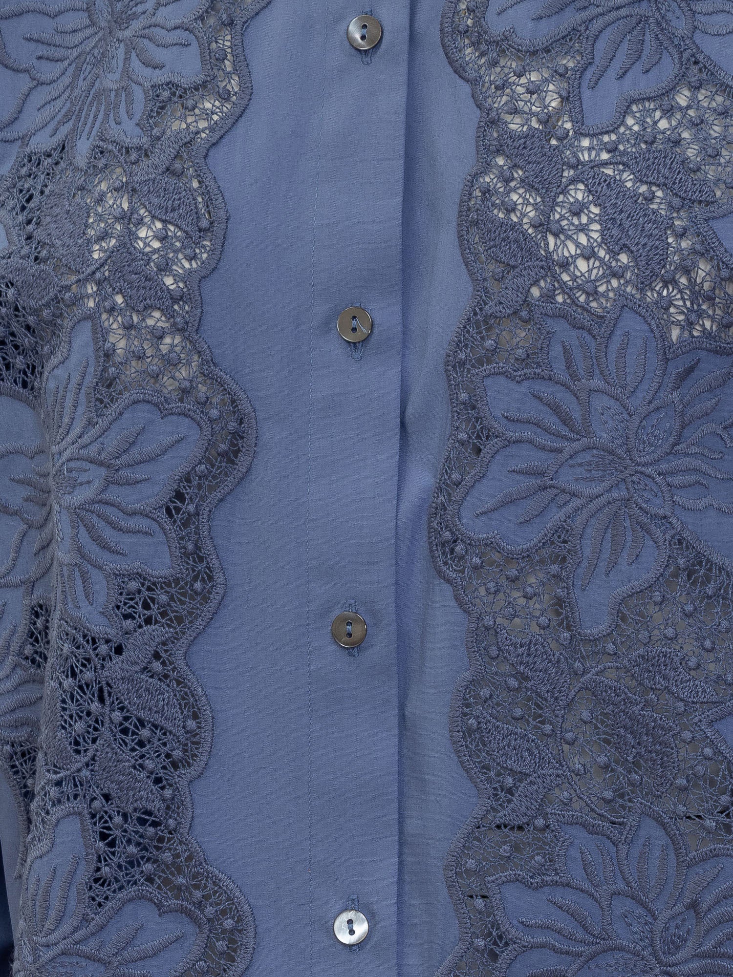 Blue shirt in cotton. Classic collar. Embroidery on the chest. Closure with buttons.