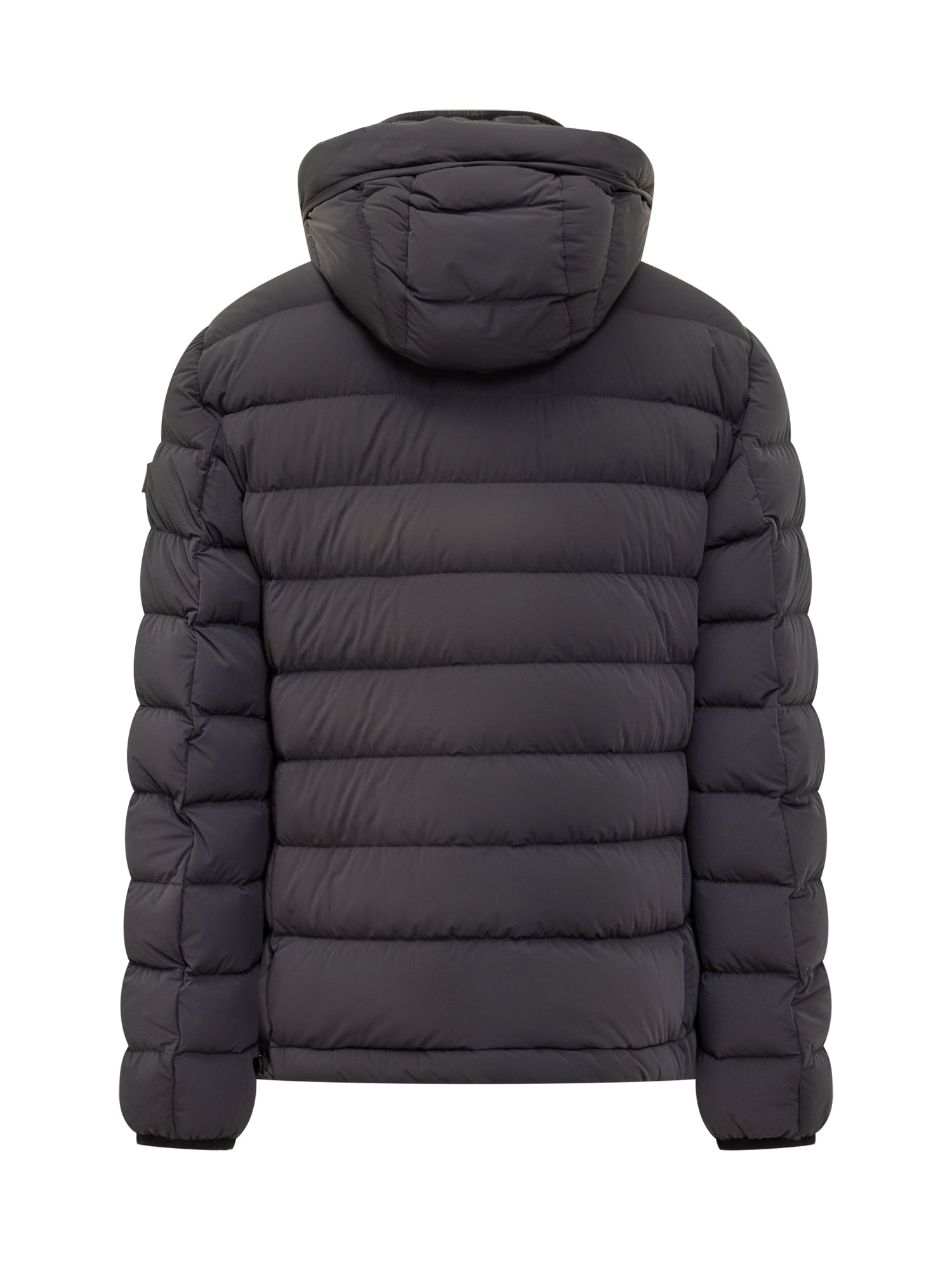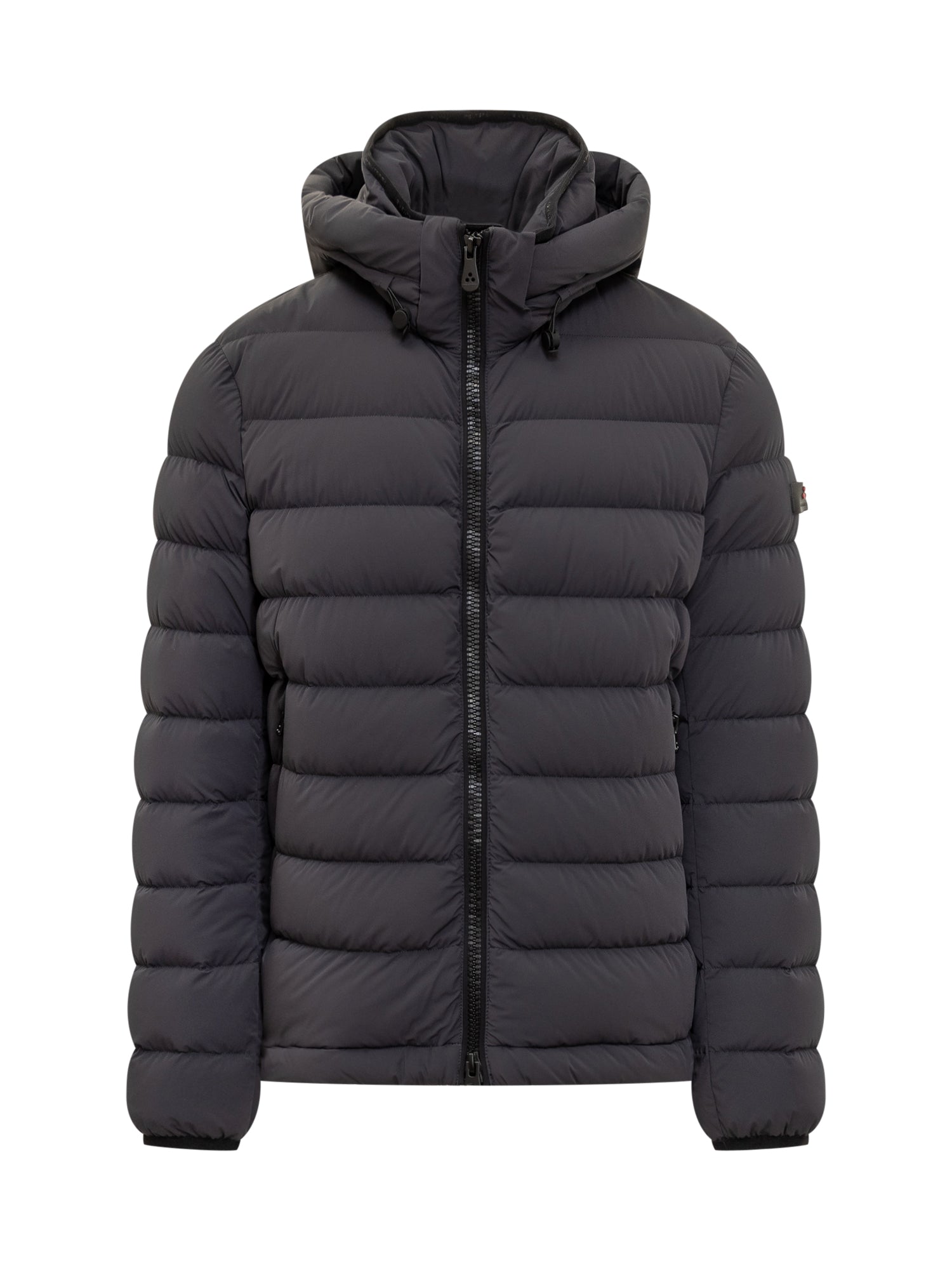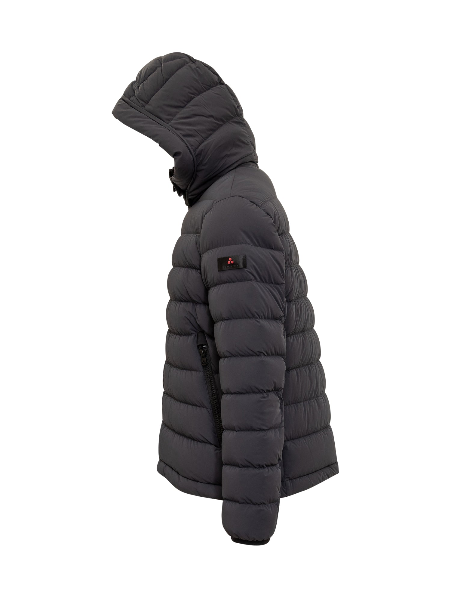 Peuterey black puffer jacket with horizontal quilting, zip closure and padded hood.