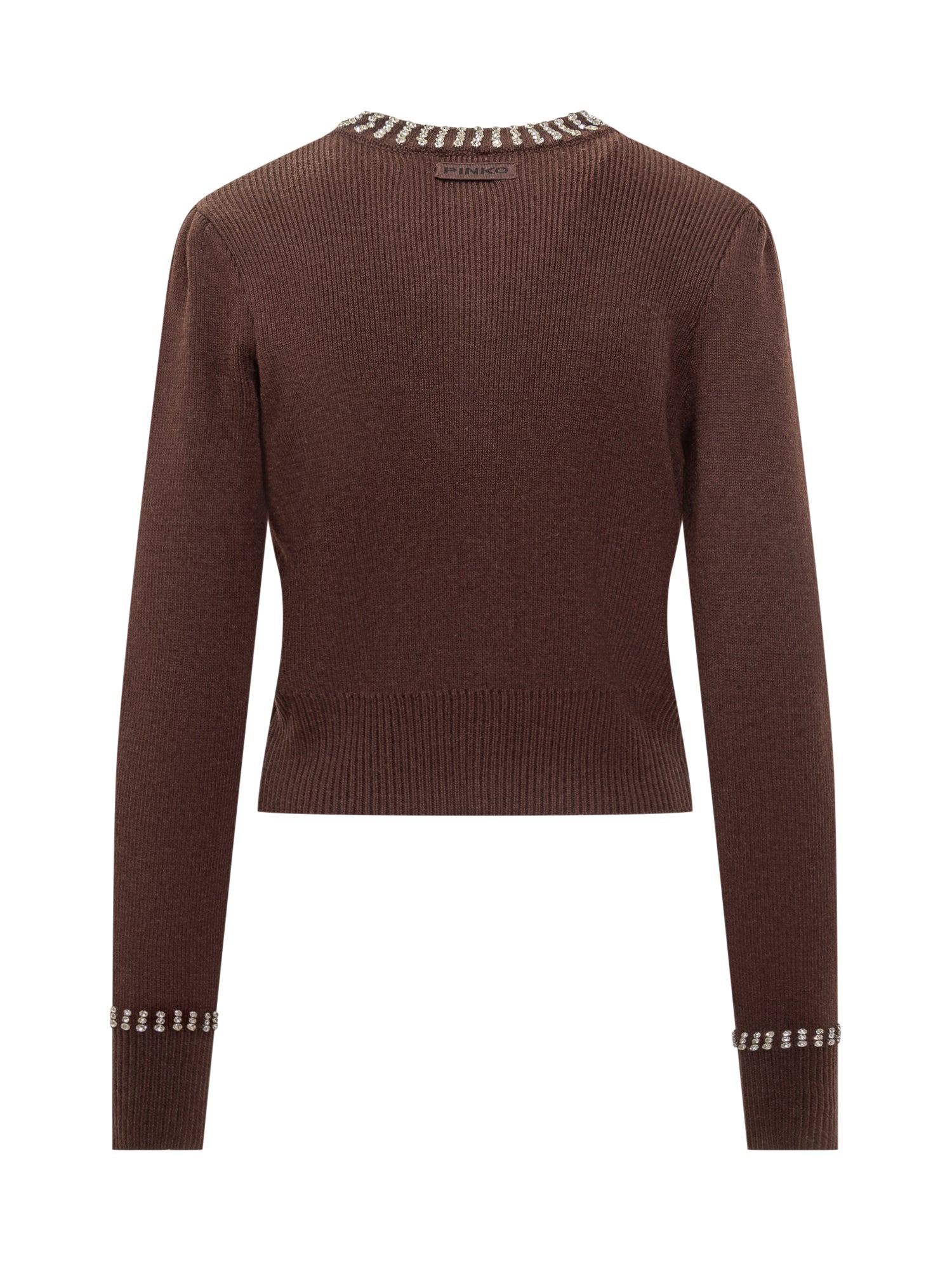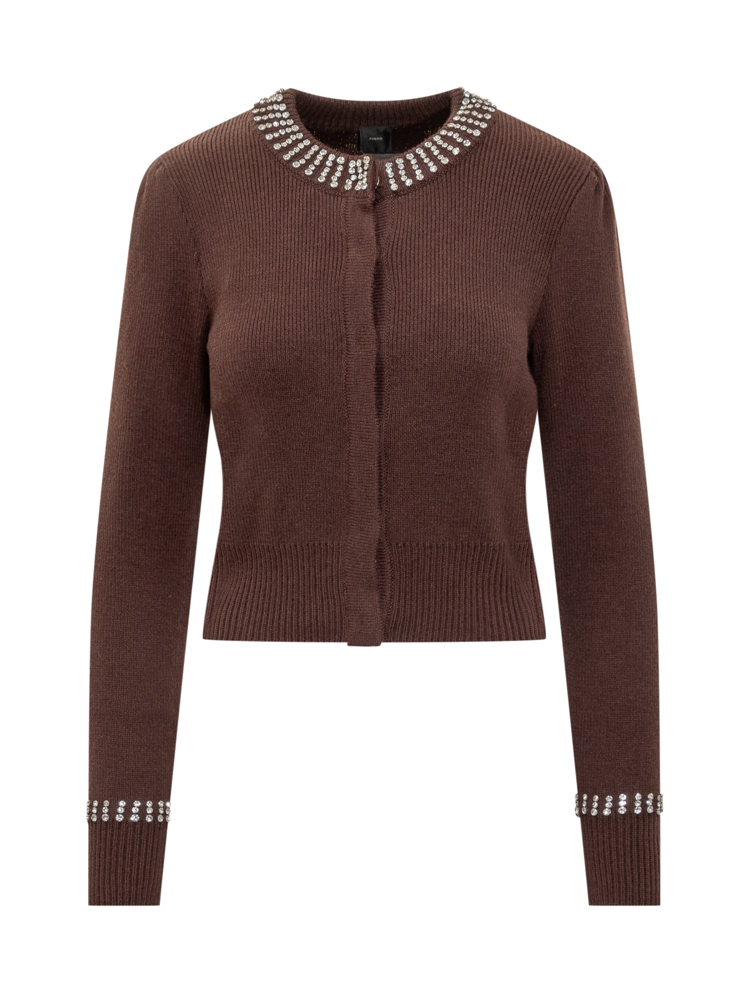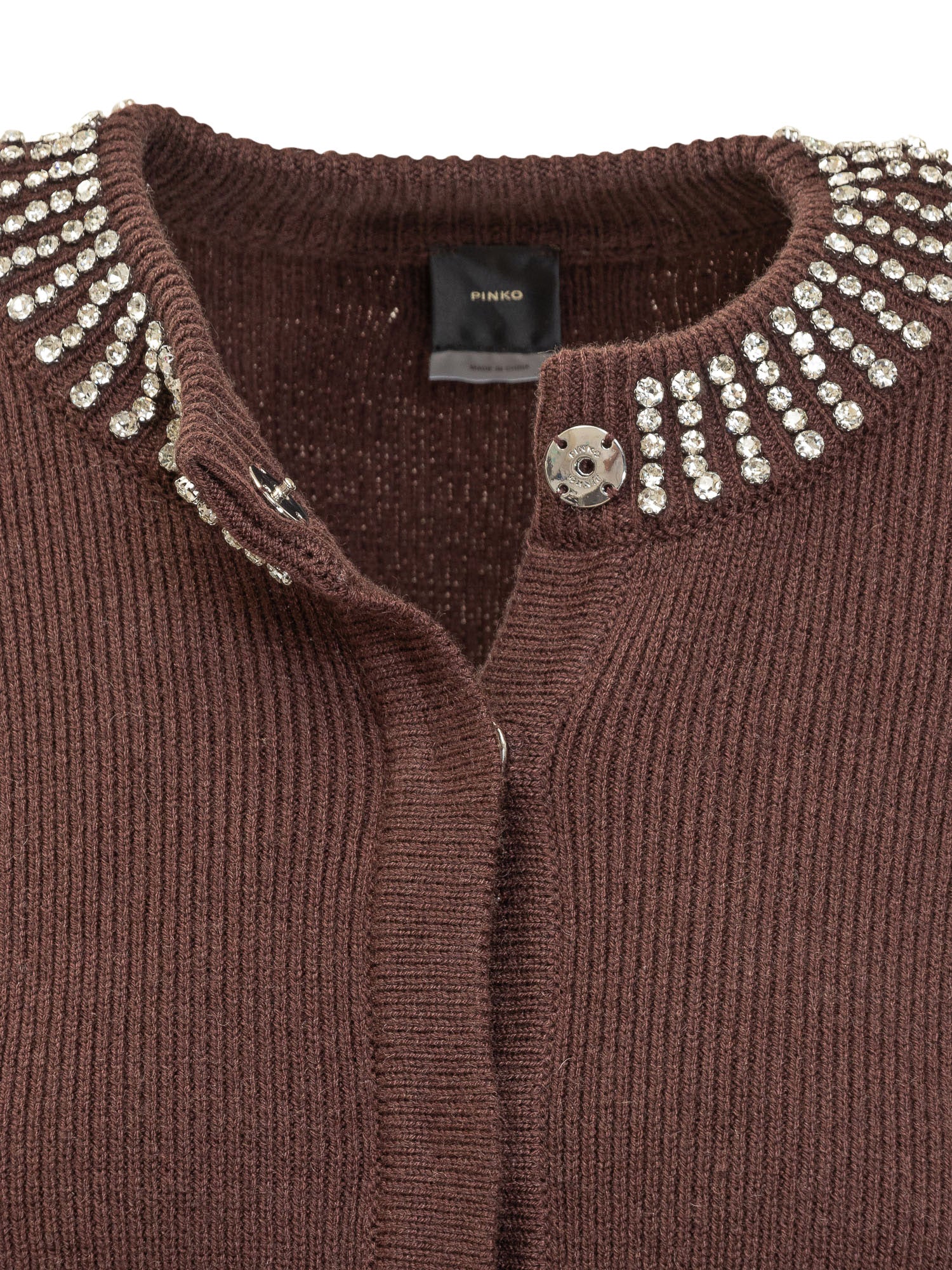 Pinko Sulcis cardigan in black knit with white contrast trims. Cropped fit, button closure and front pockets.