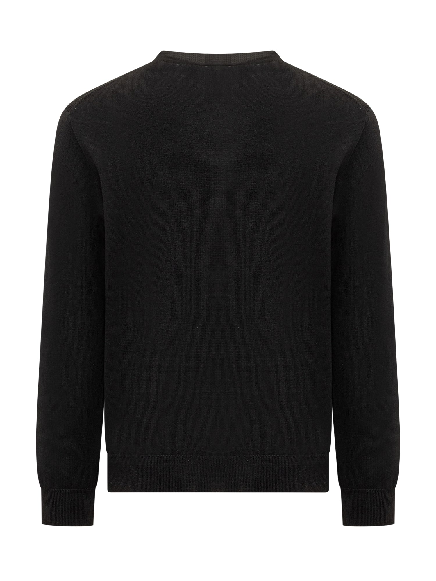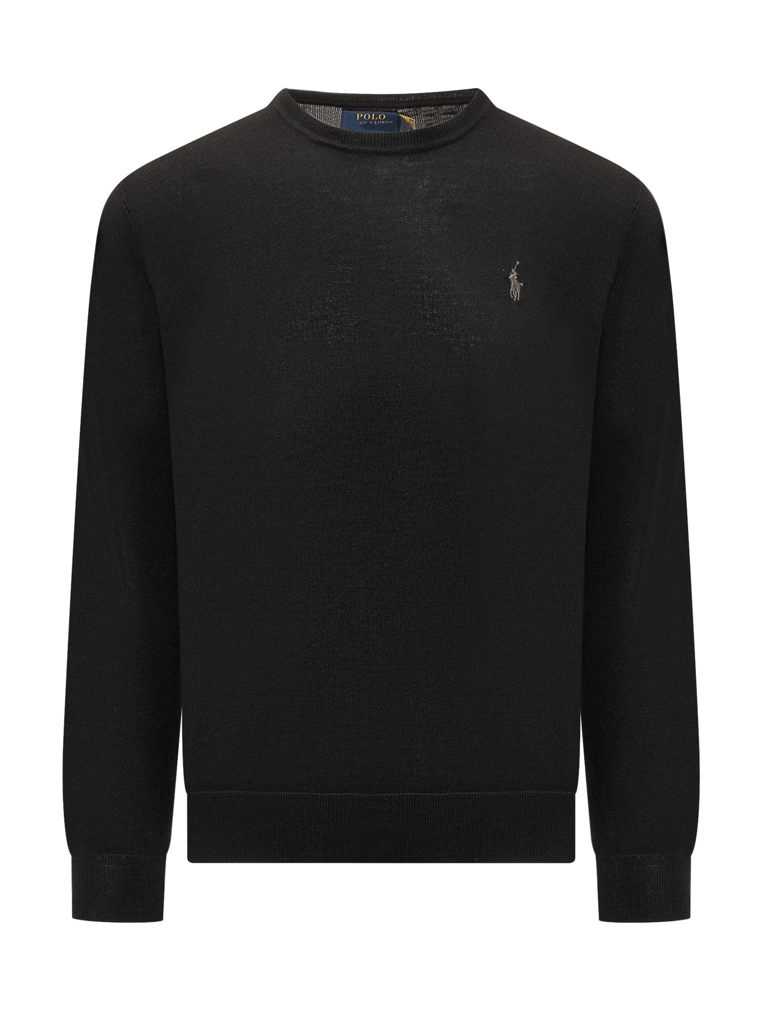 Long sleeve crew neck pullover. Ribbed hems. Embroidered logo on front.