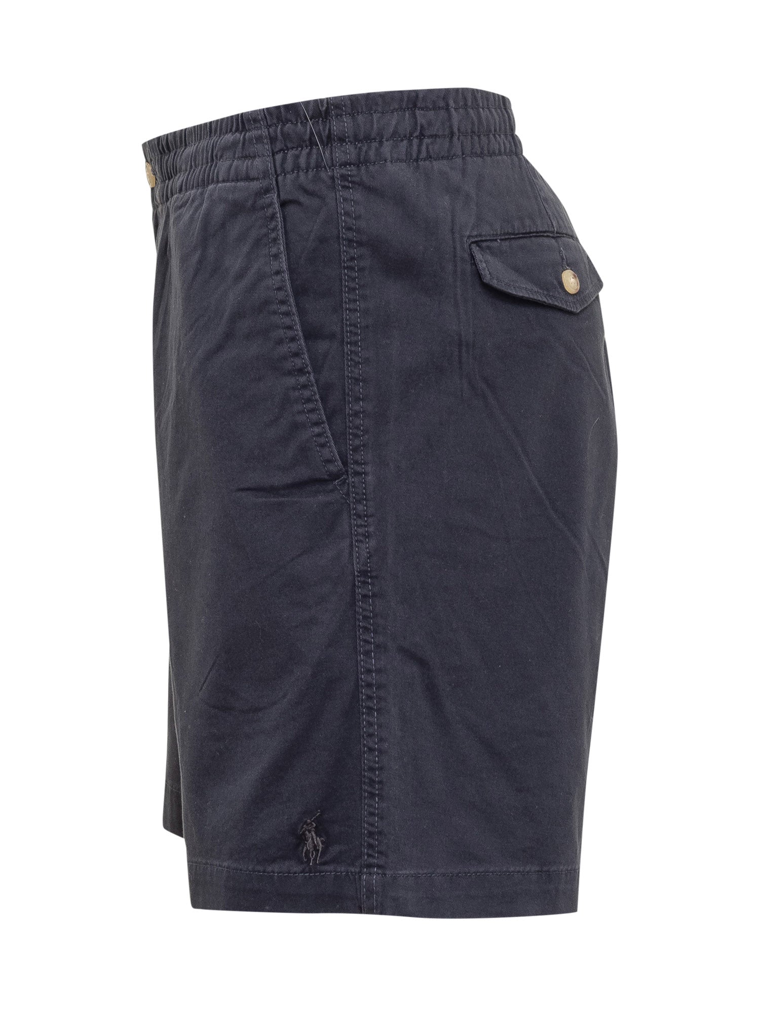 Bermuda with elastic and drawstring waist. 4 pockets. Embroidered logo on the bottom. Closure with zip and button.