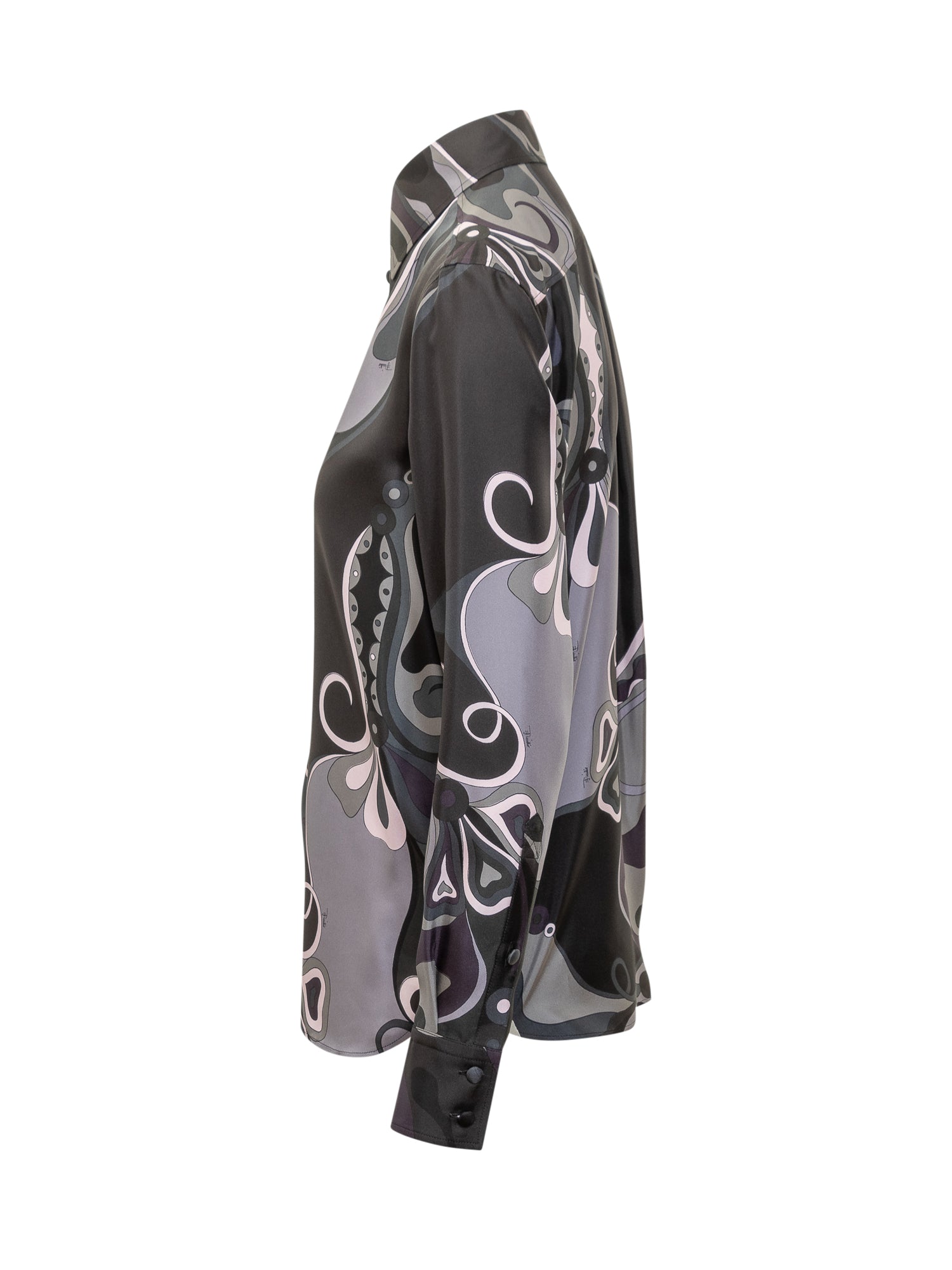 Pucci silk shirt with abstract geometric print in black, grey and lilac.
