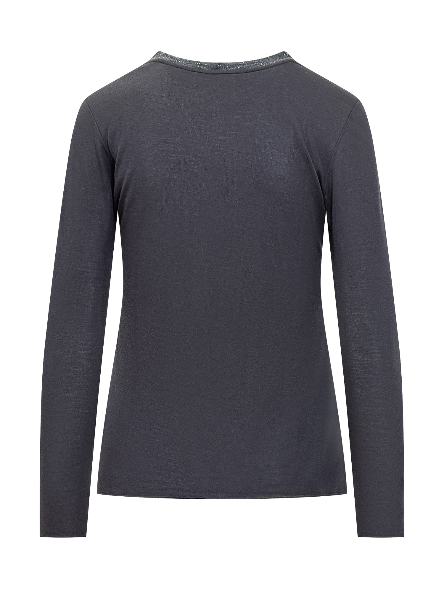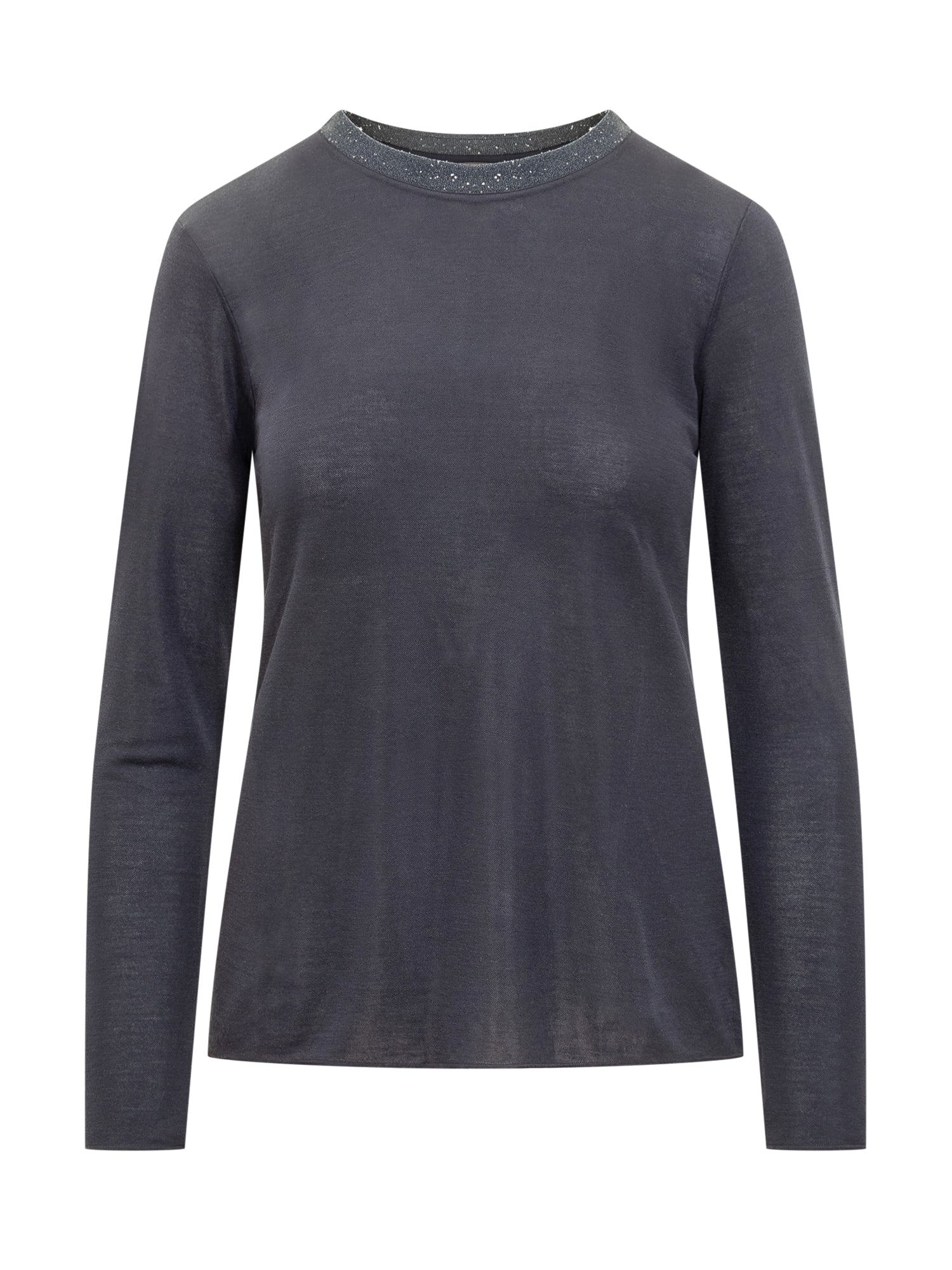 Puro Tatto lightweight dark blue top with glitter detail at the crew neck.