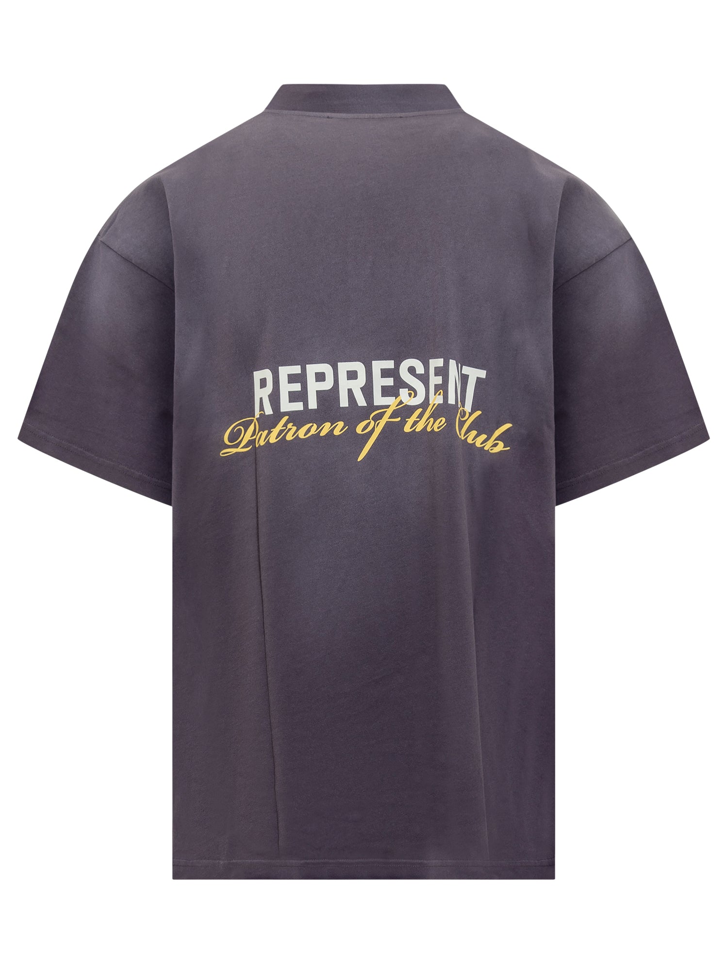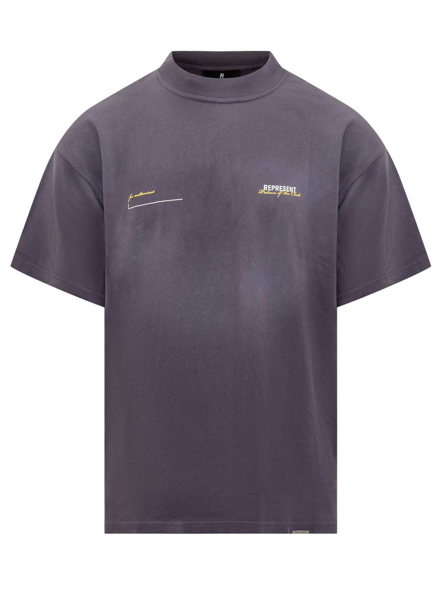 Grey cotton T-shirt with embroidered chest logo. Relaxed fit and minimal design.