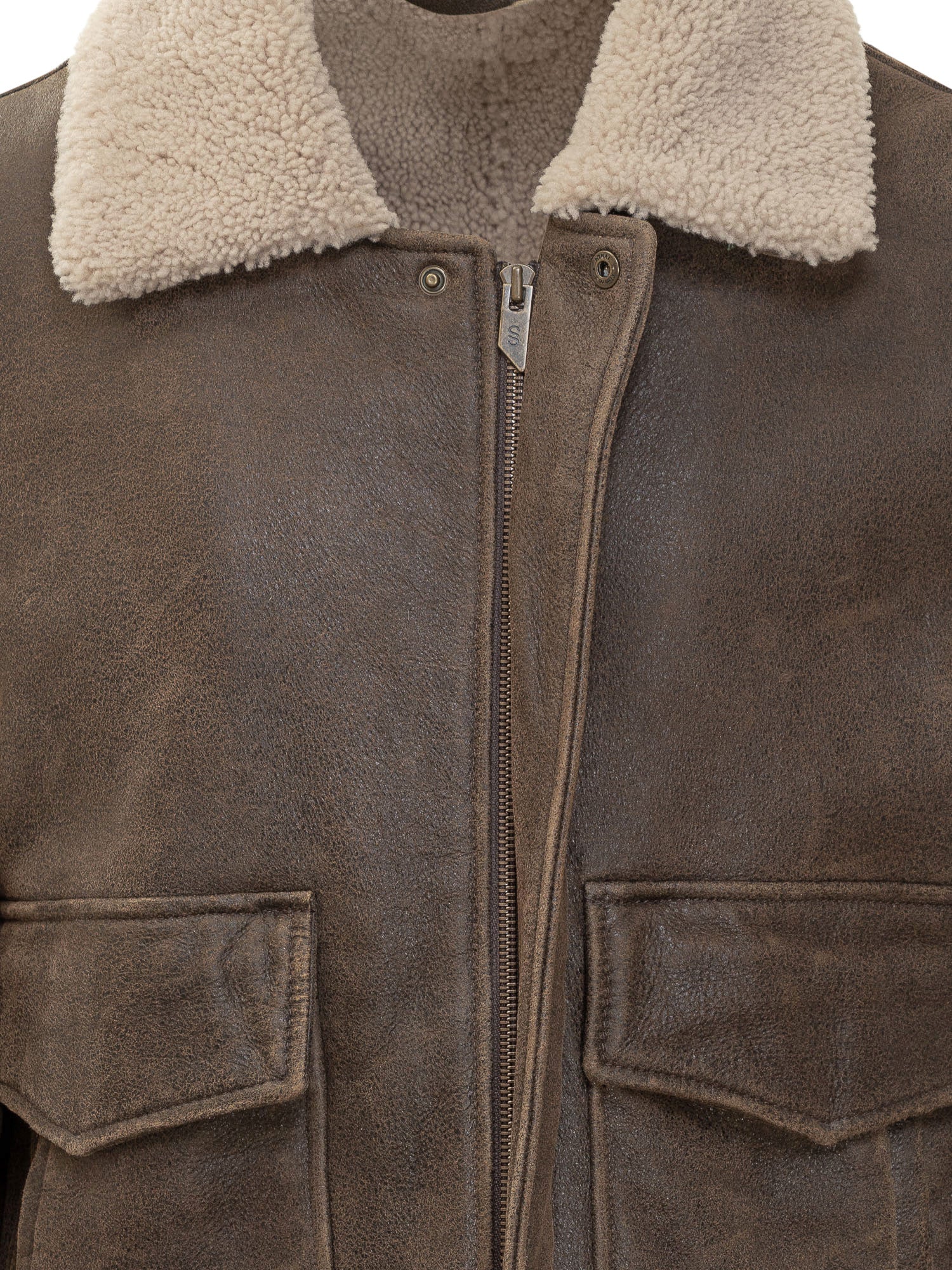 Salvatore Santoro brown shearling jacket with light fur collar and front patch pockets.