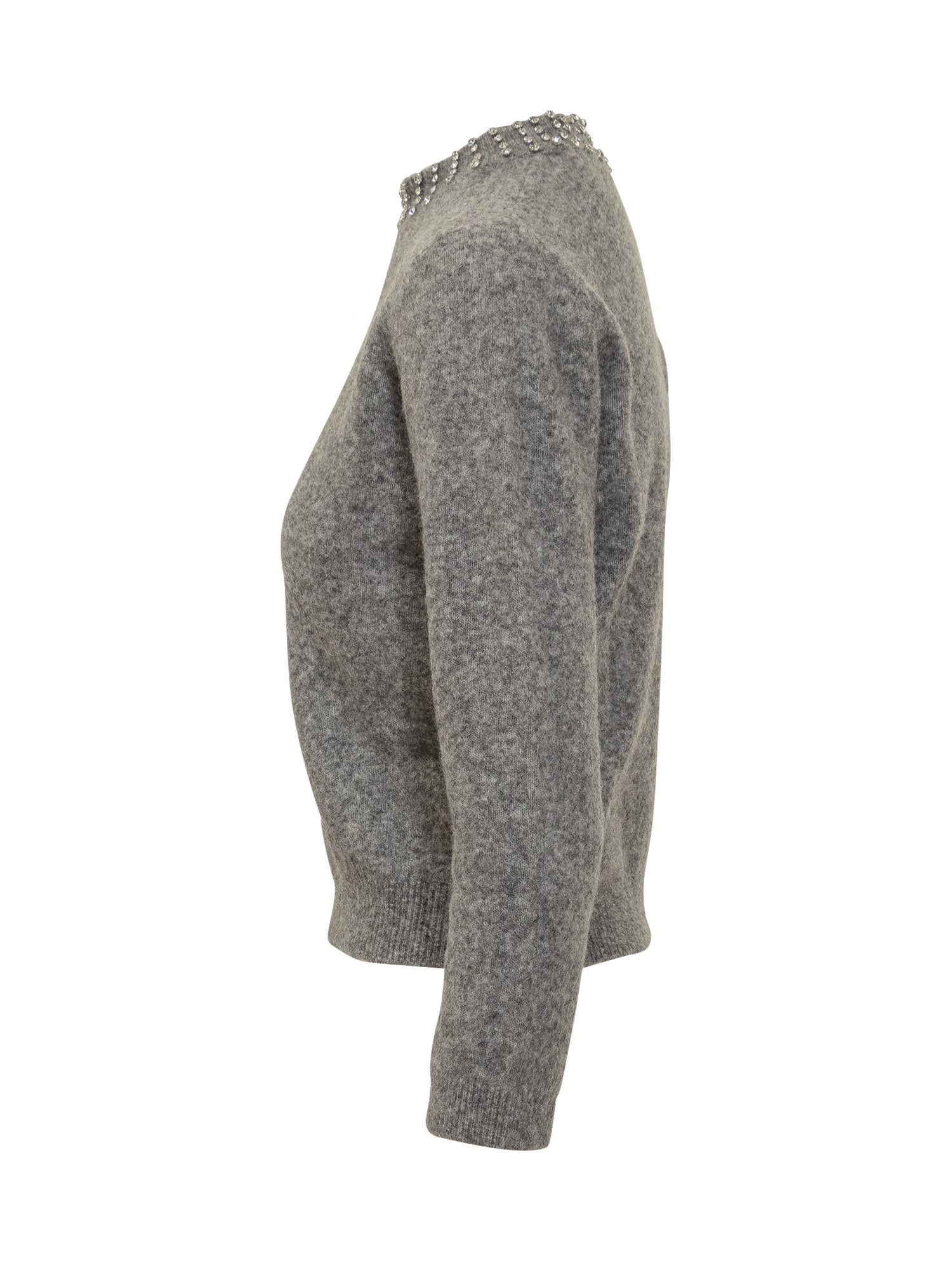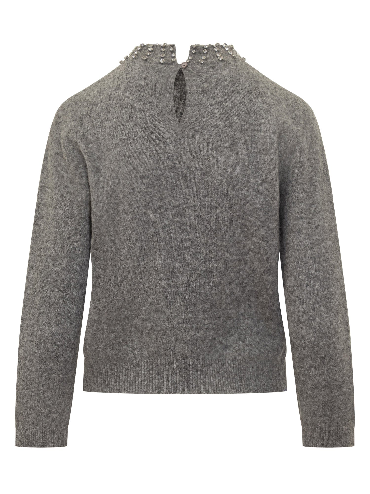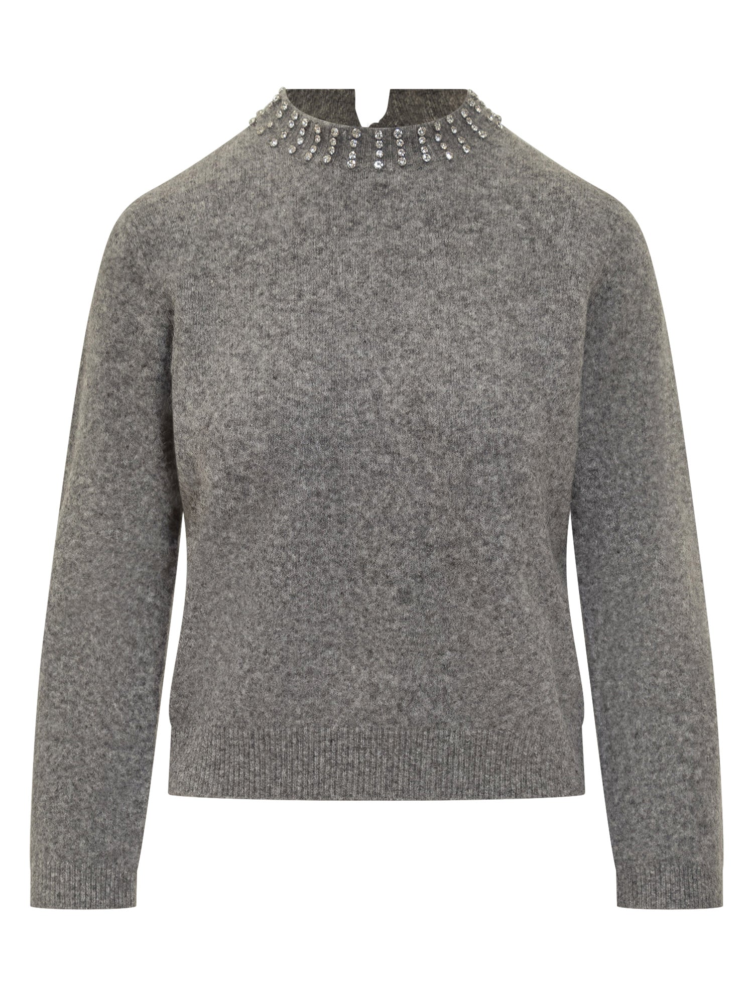 Seventy 19.70 grey wool sweater featuring jeweled neckline and back opening.