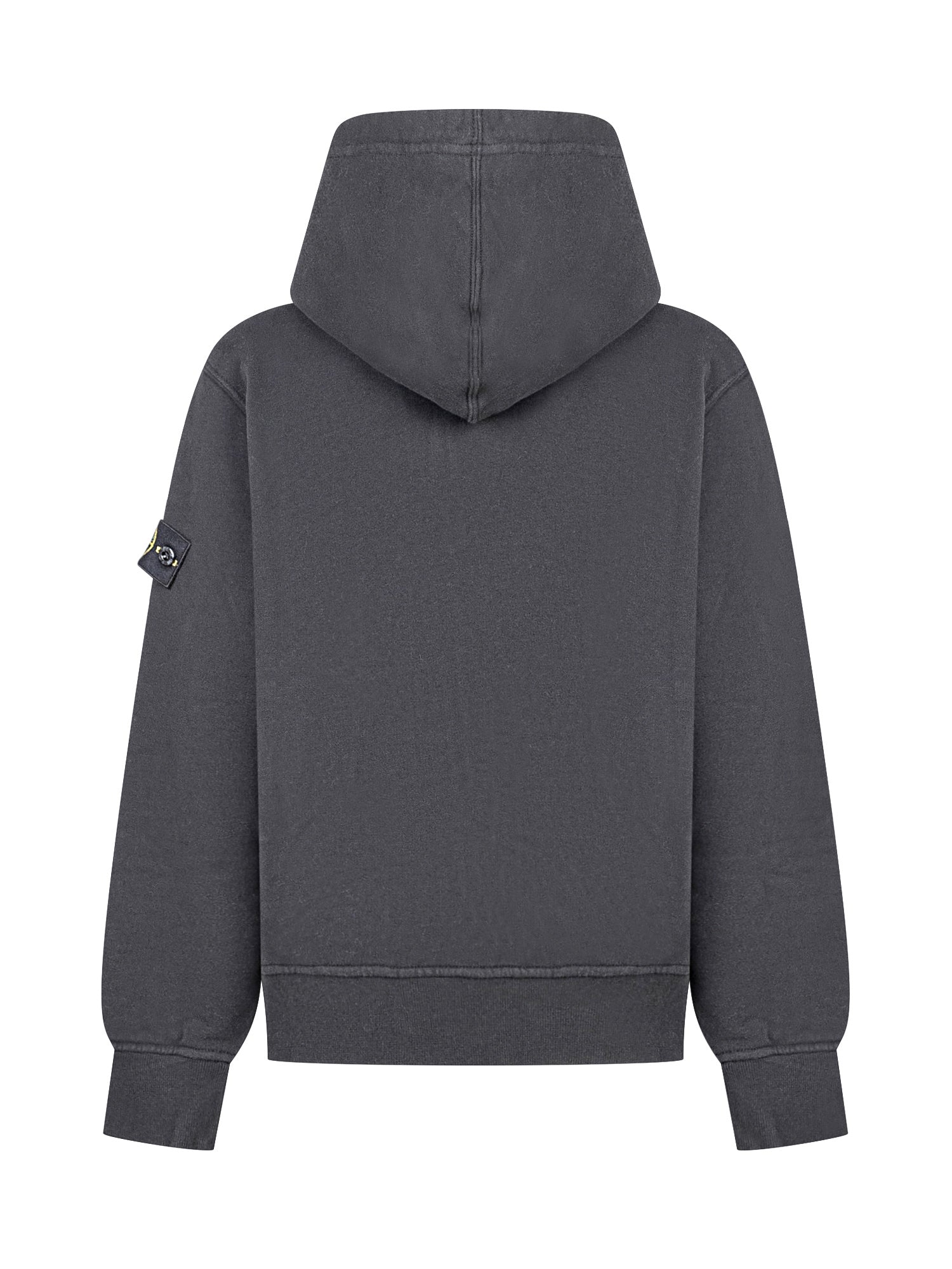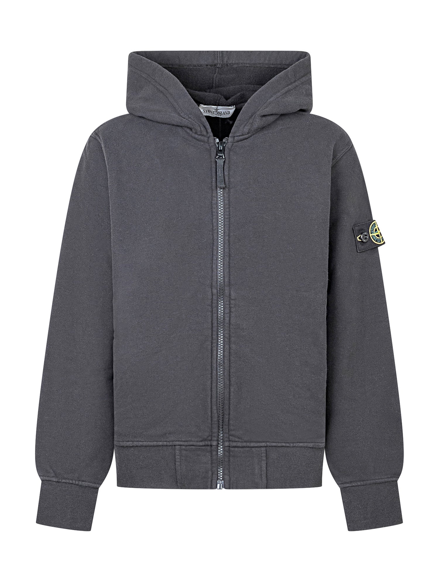 Stone Island Kids grey cotton hoodie with zip closure, hood and iconic sleeve logo patch.