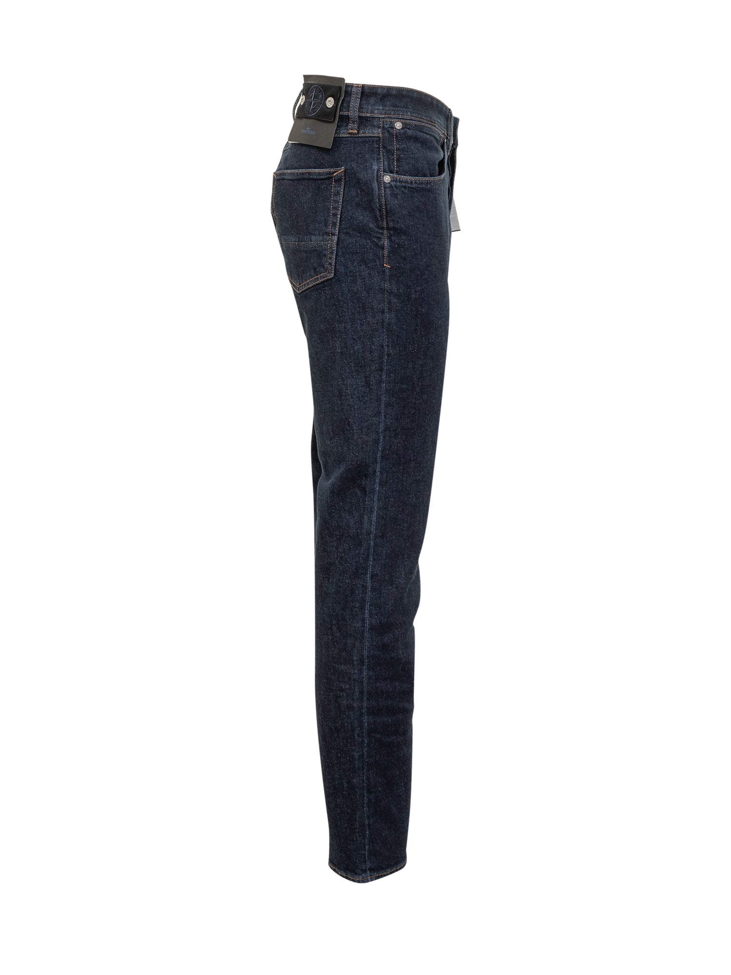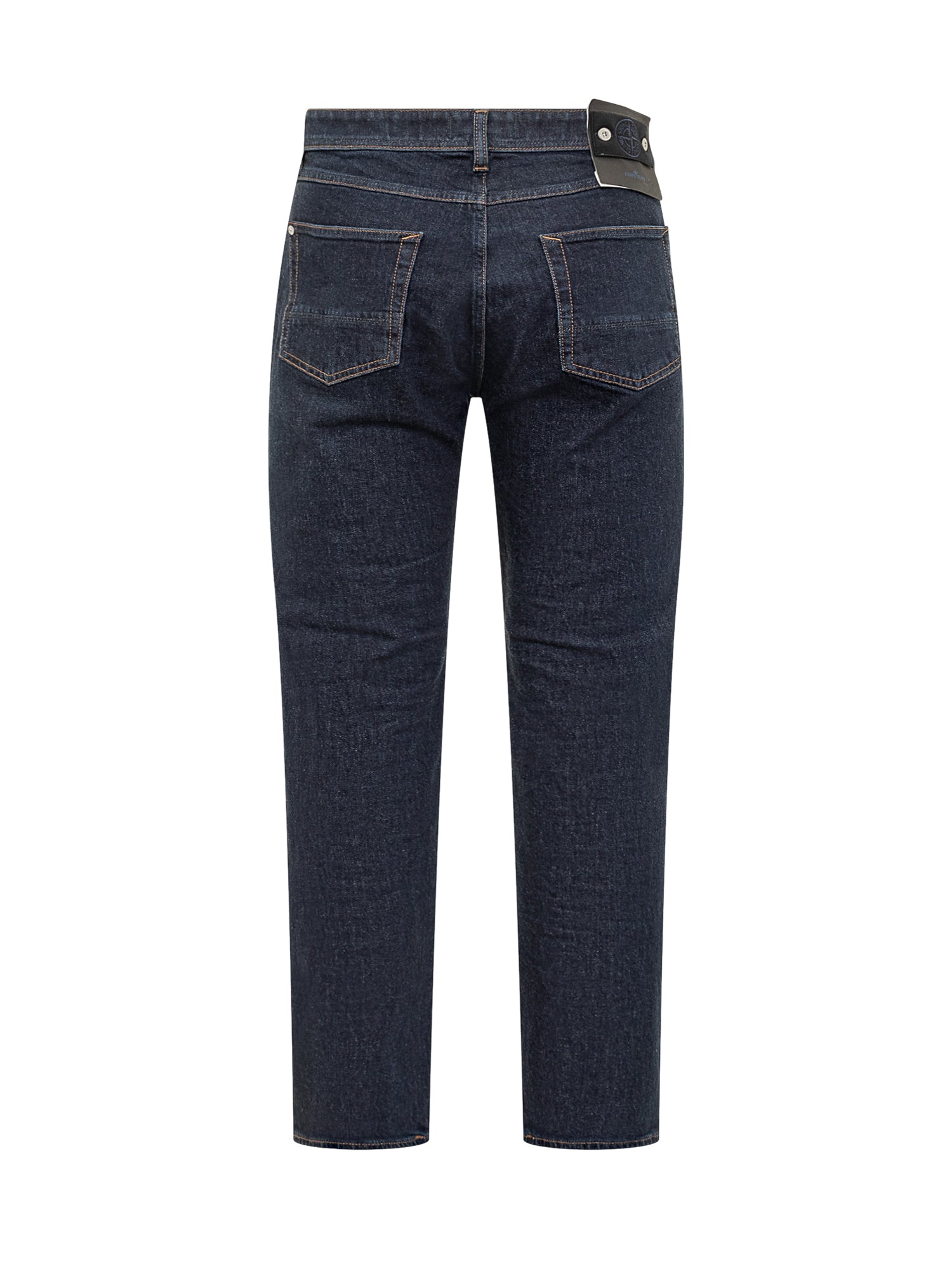 Stone Island jeans in blue denim, slim fit with contrast stitching and logo detail on the back.