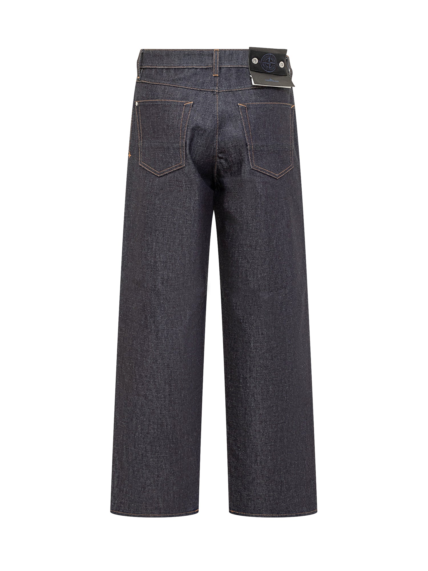 Stone Island wide leg jeans in dark blue denim. Regular waist, logo patch on the back.