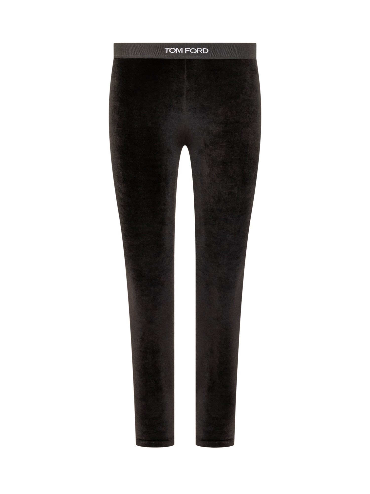 Tom Ford stretch velvet leggings in black with branded elastic waistband.