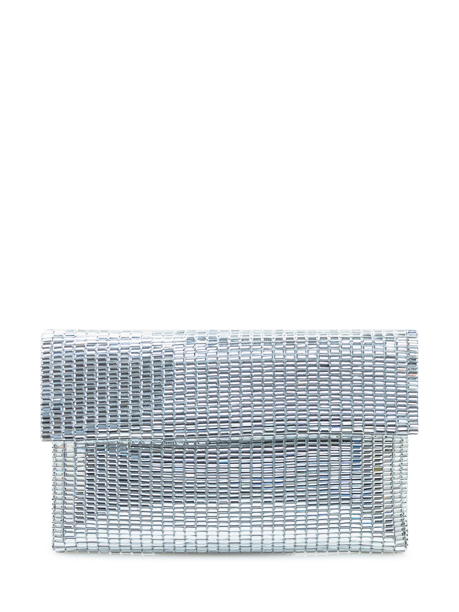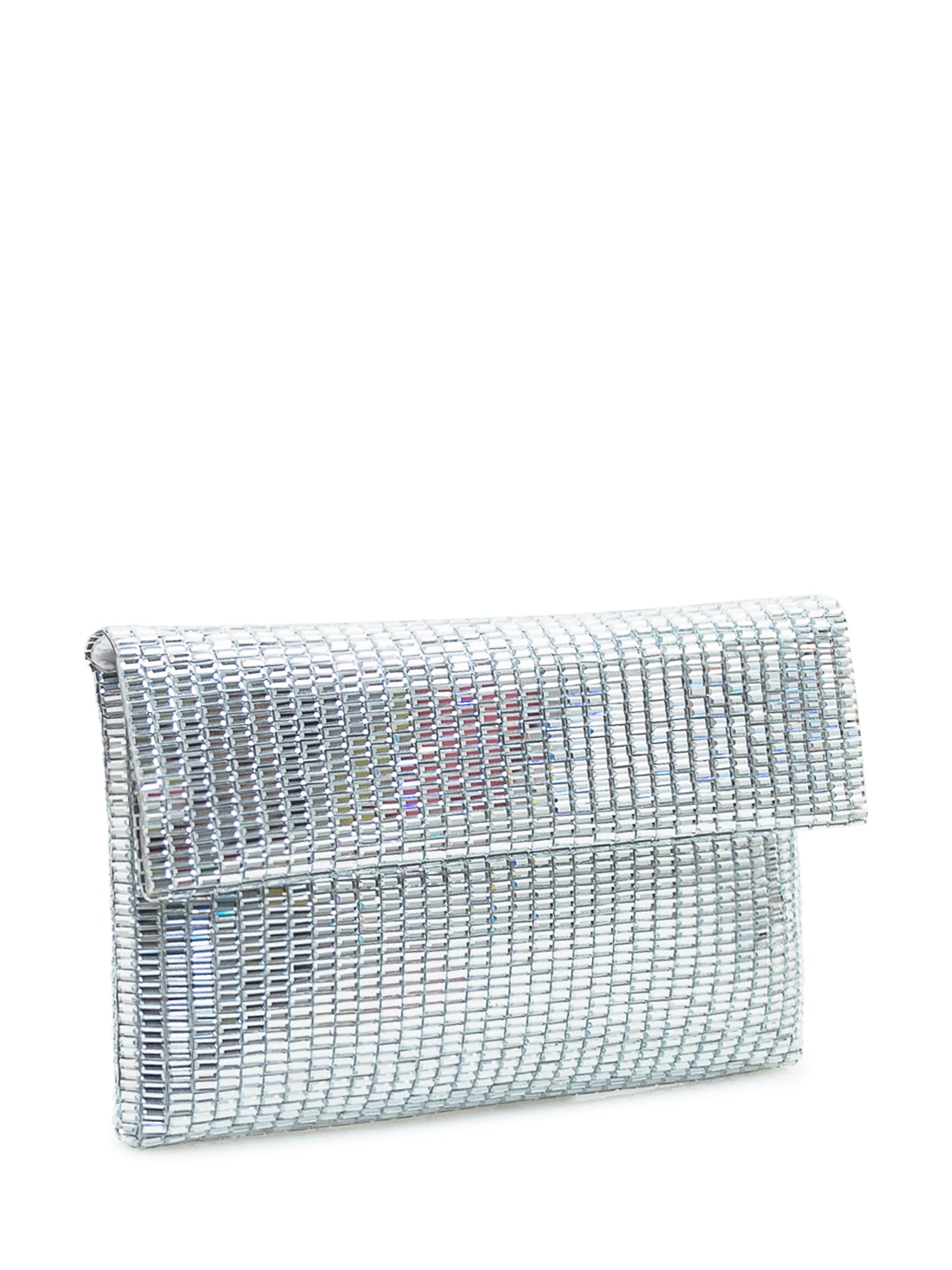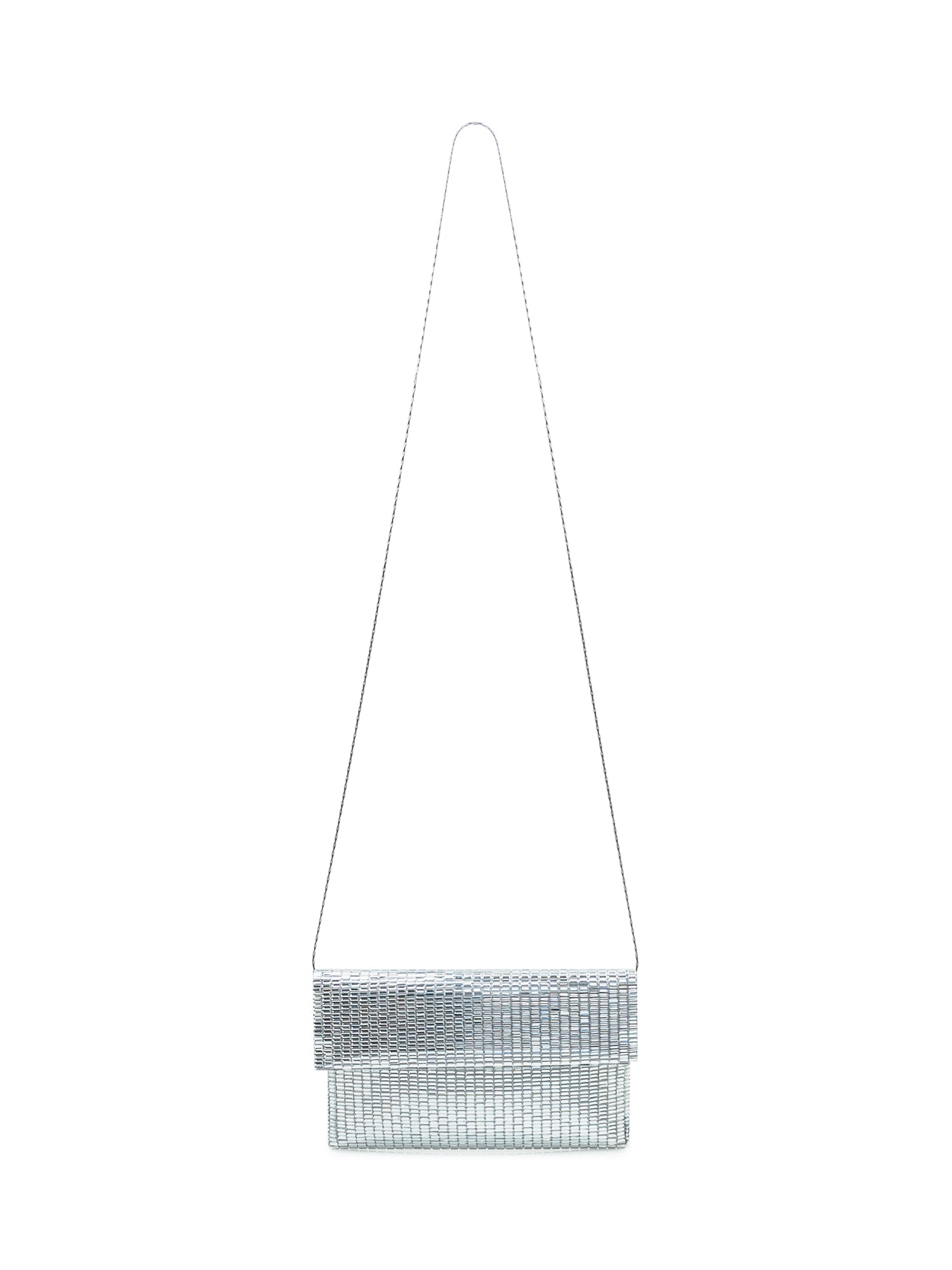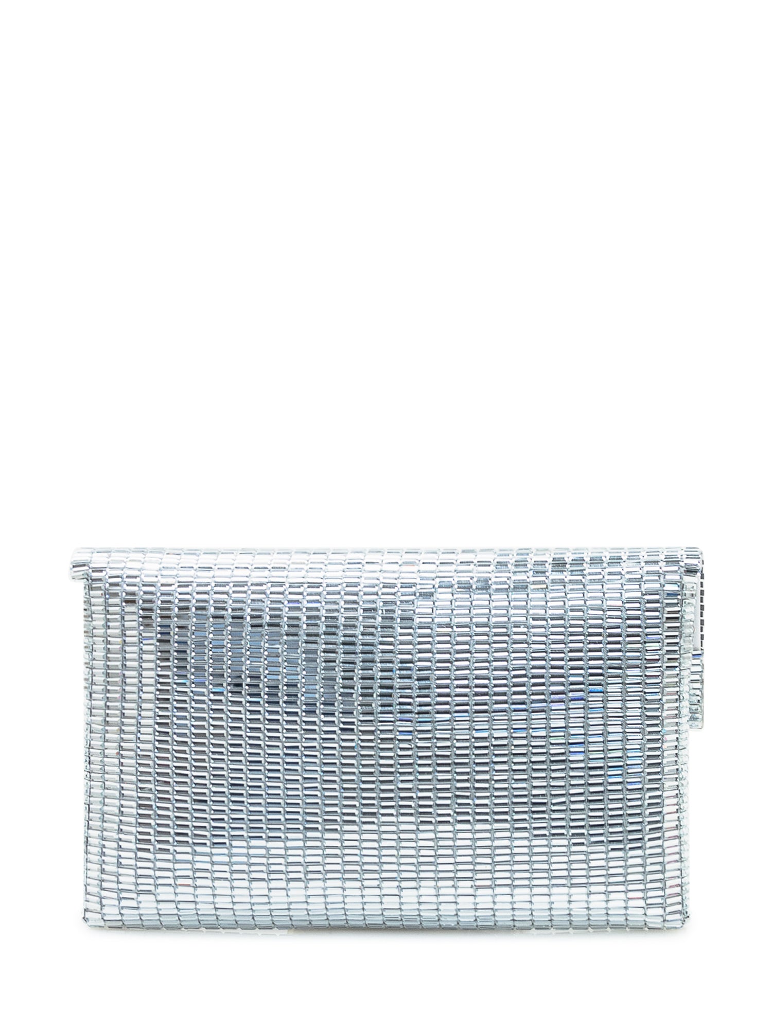 Twenty Four Haitch clutch in silver metal mesh with a bright and modern design. An elegant and trendy accessory.