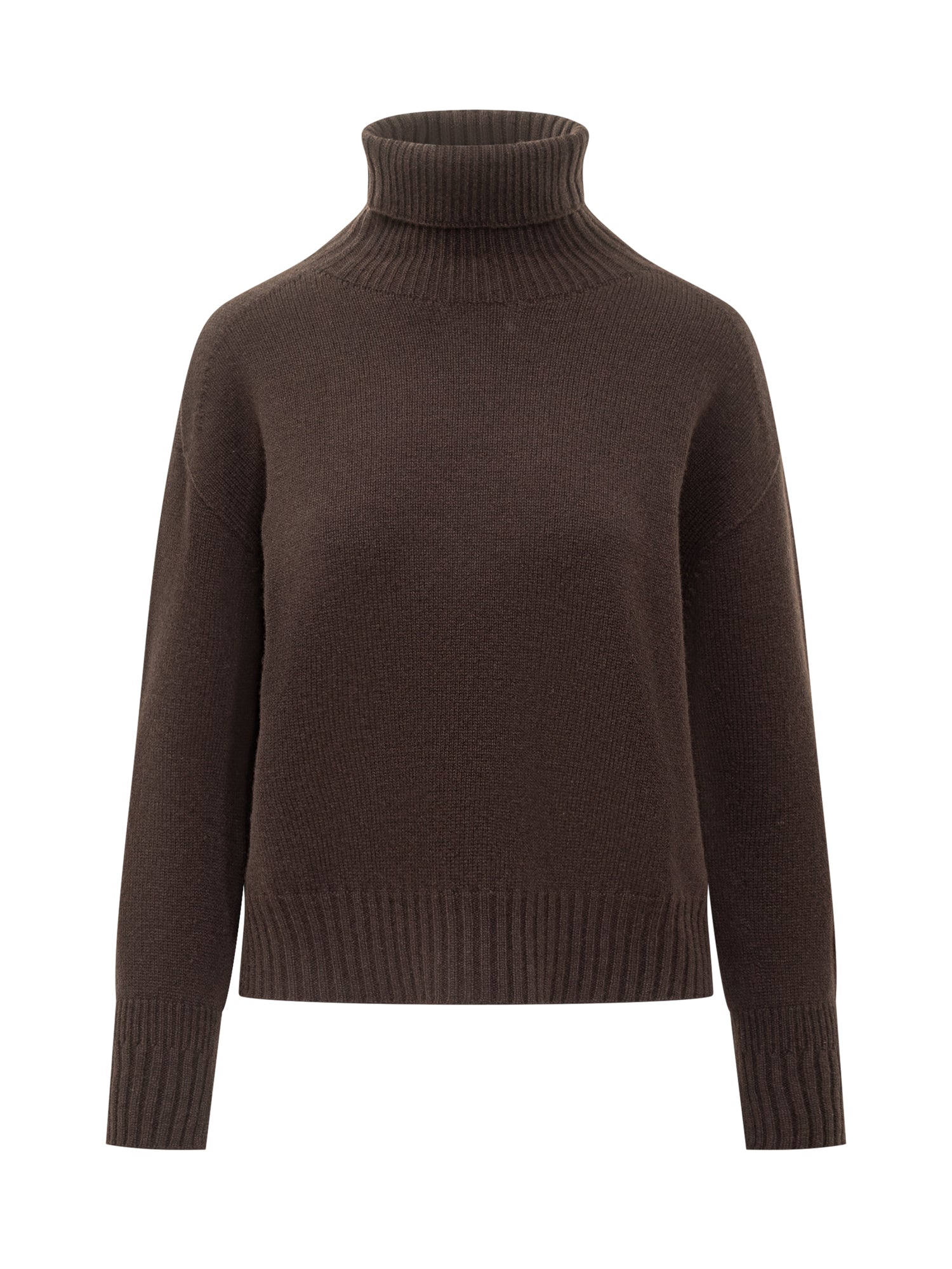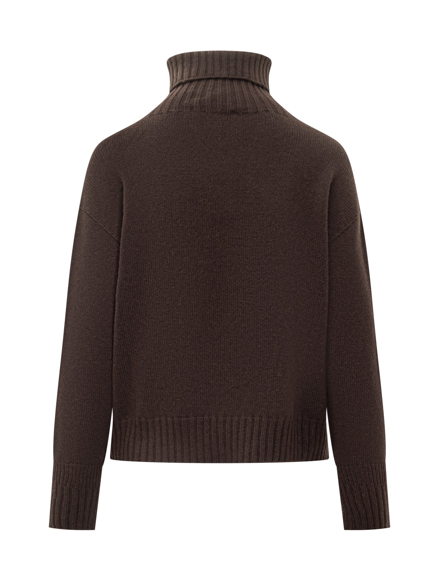 Vanisè brown knit sweater with ribbed turtleneck and relaxed fit.