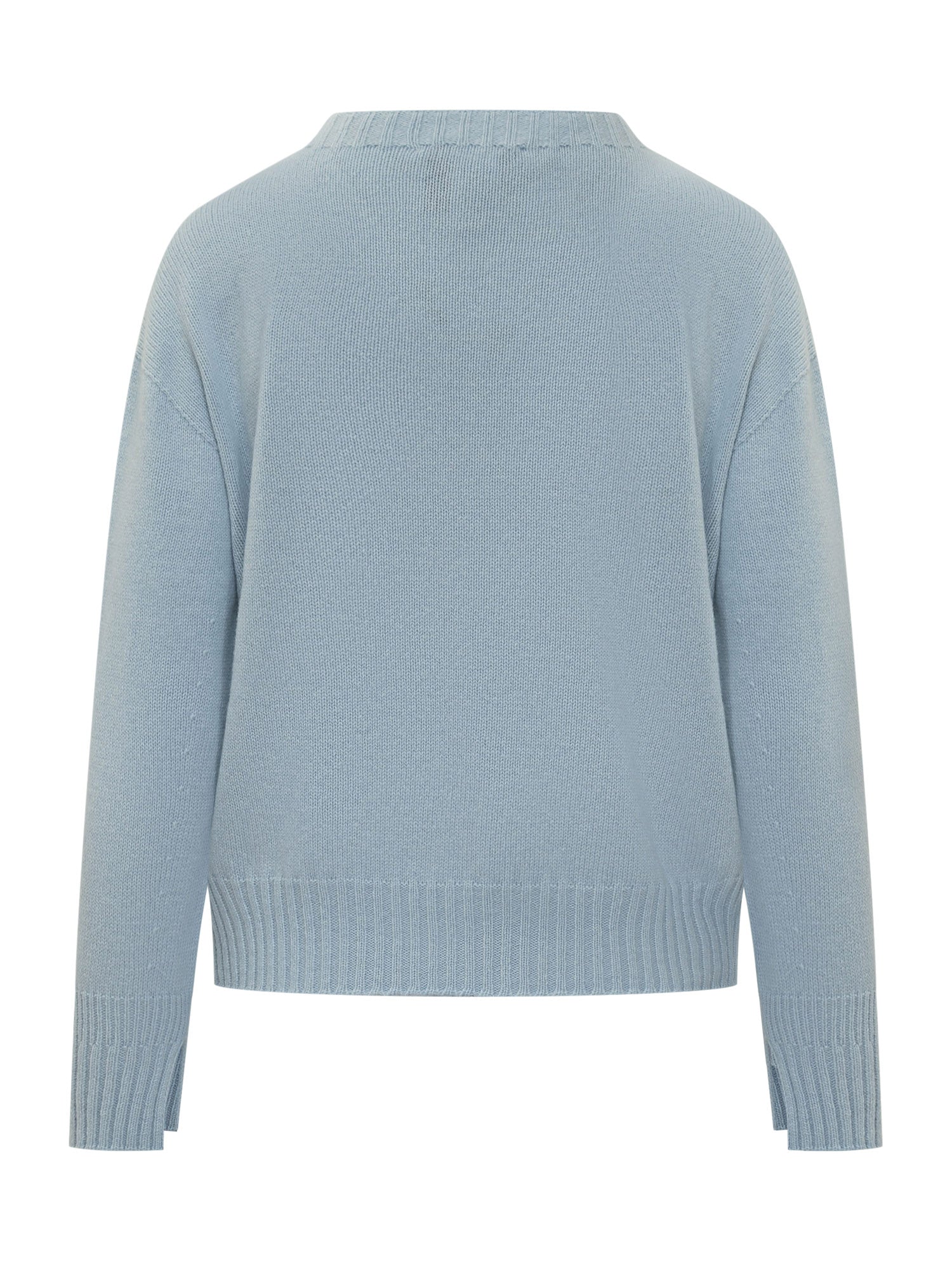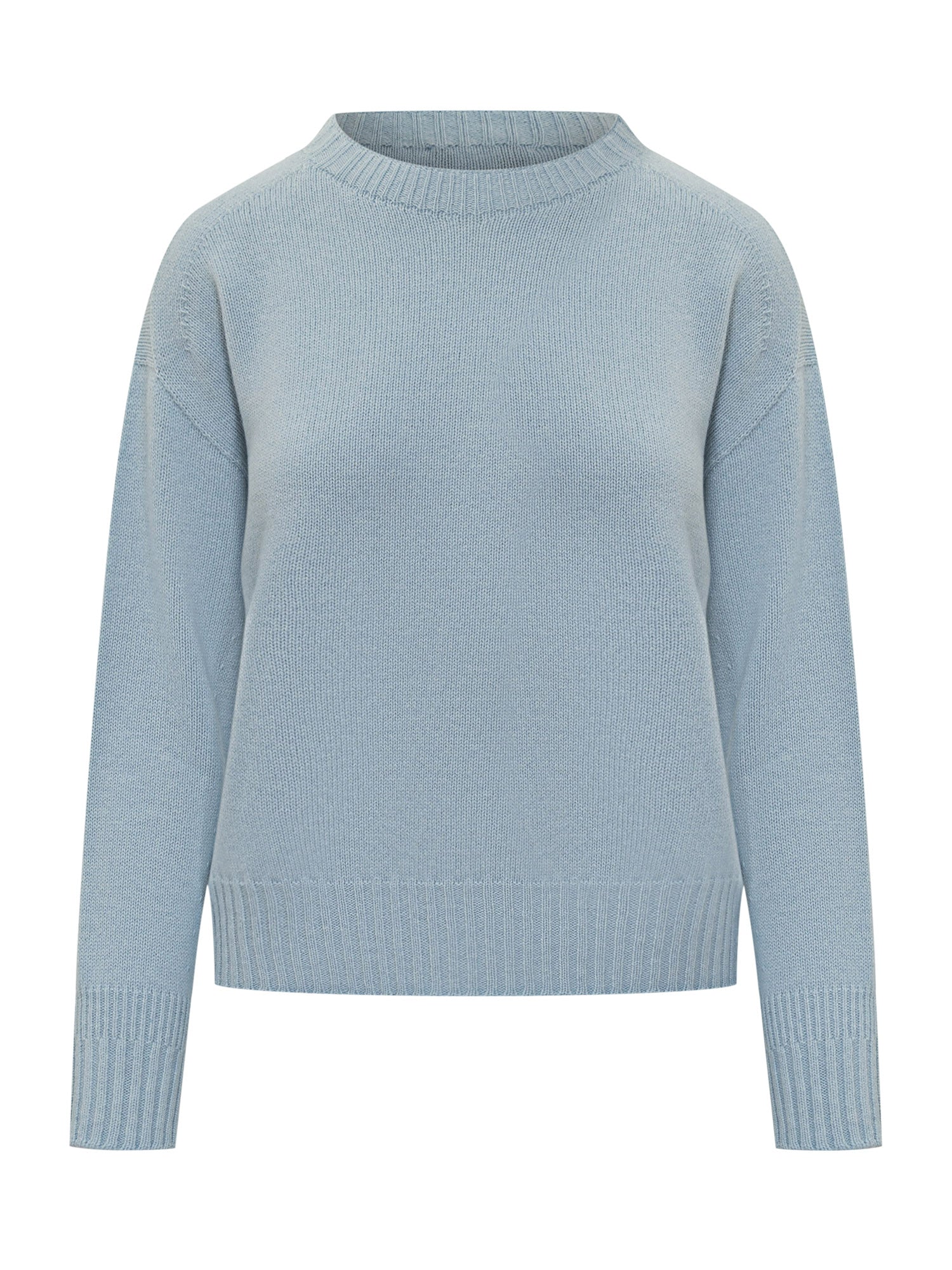 Vanisè light blue wool sweater with a clean crew neck and ribbed trims.